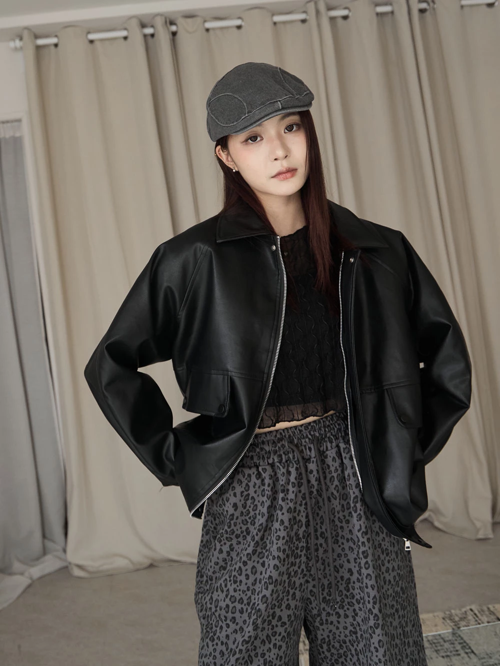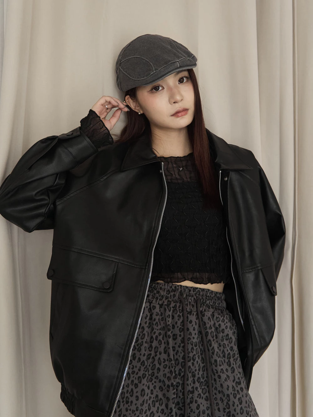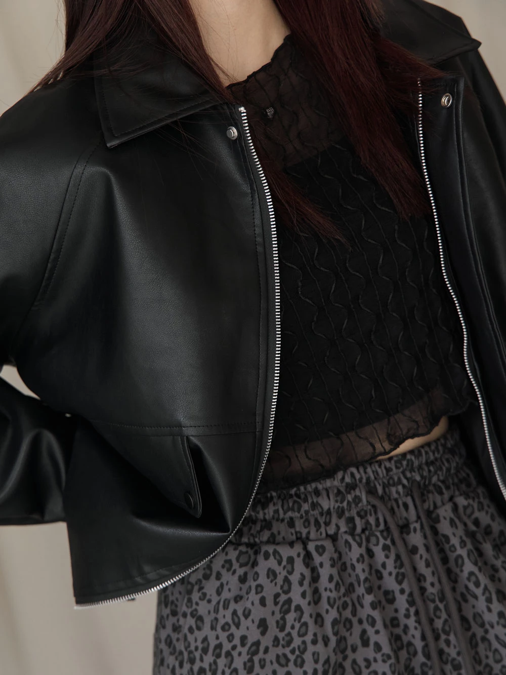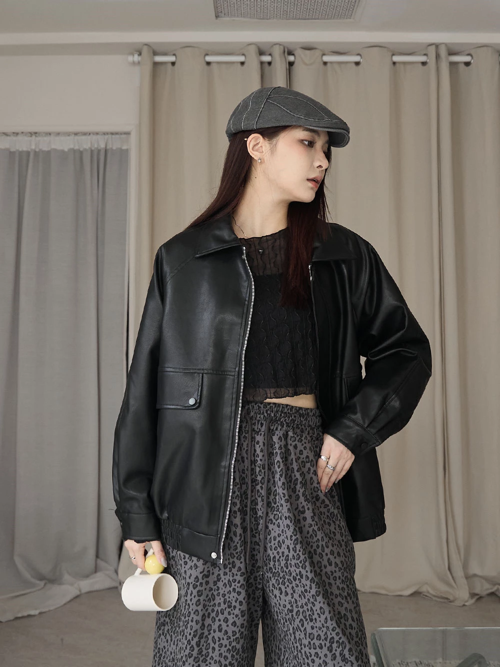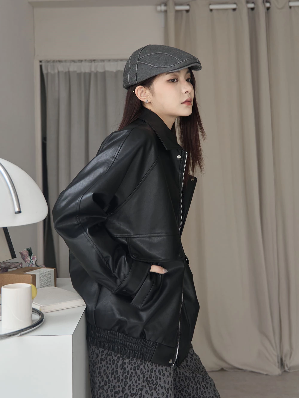 霧感翻領皮外套