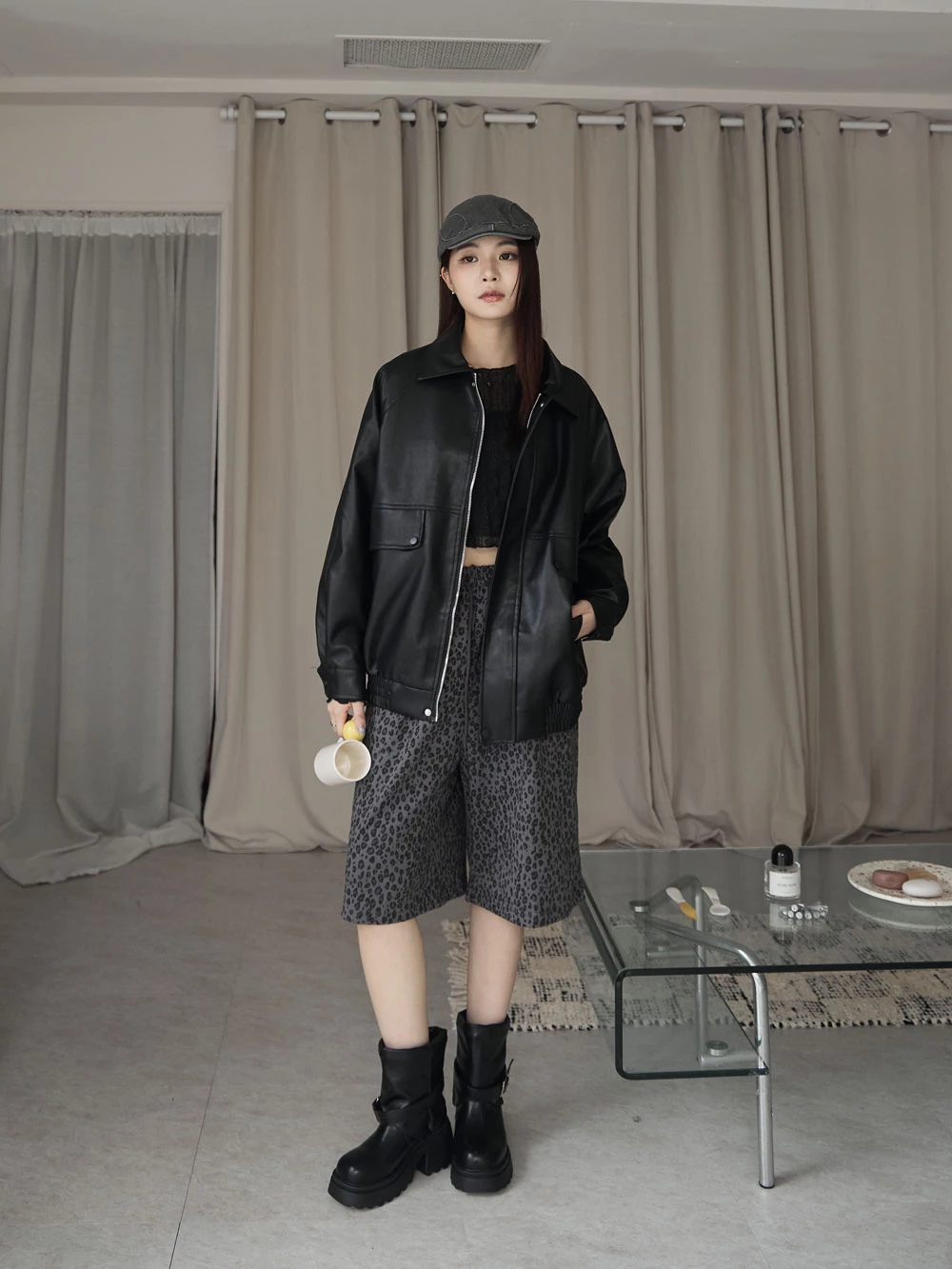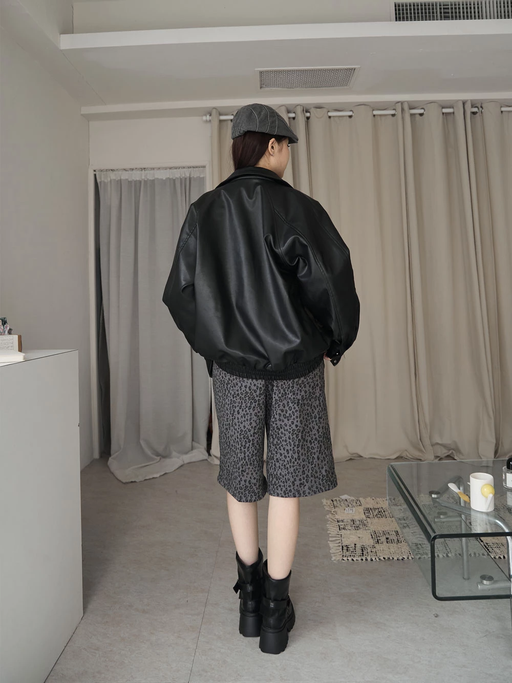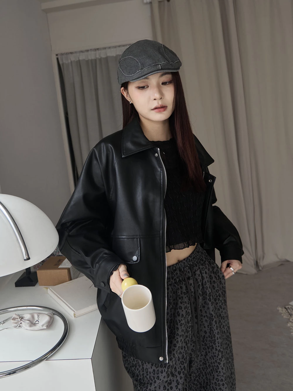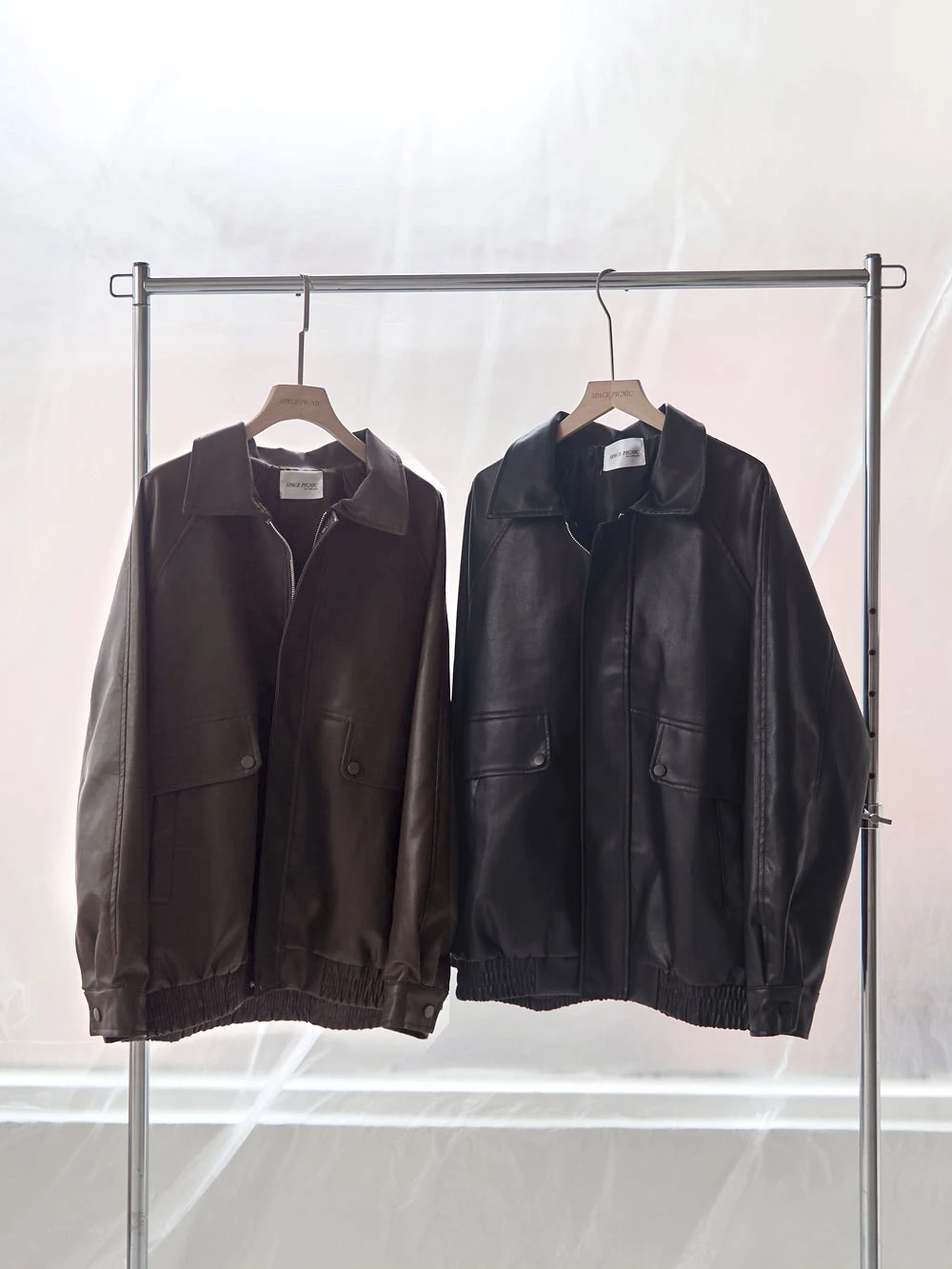 霧感翻領皮外套