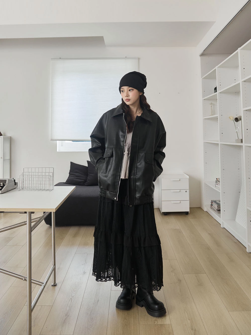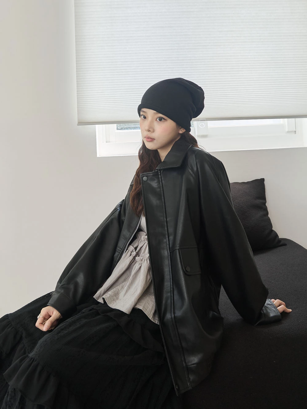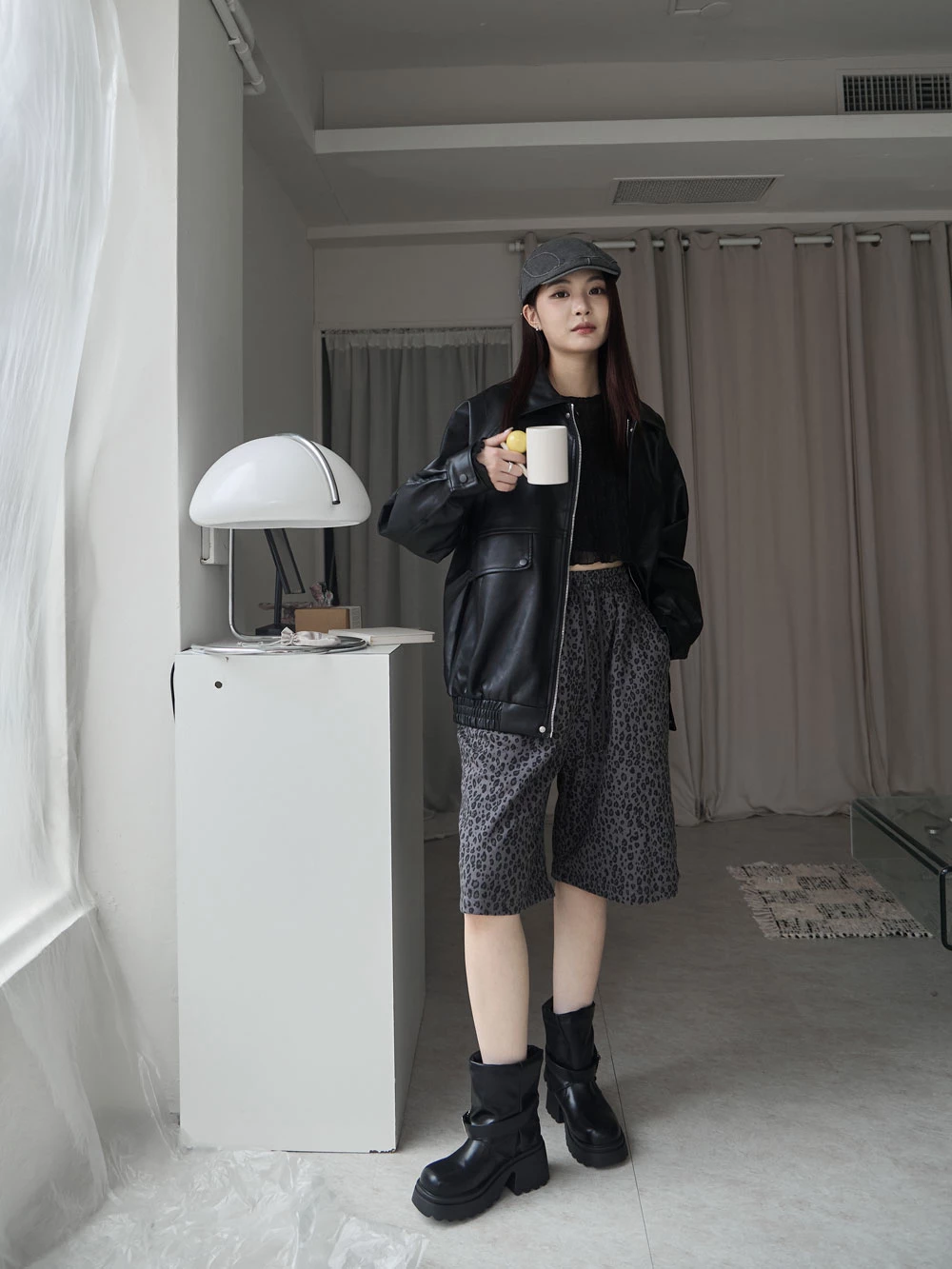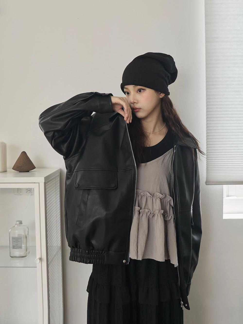 霧感翻領皮外套