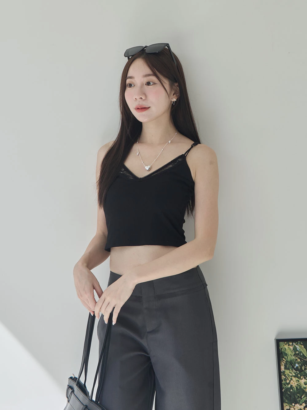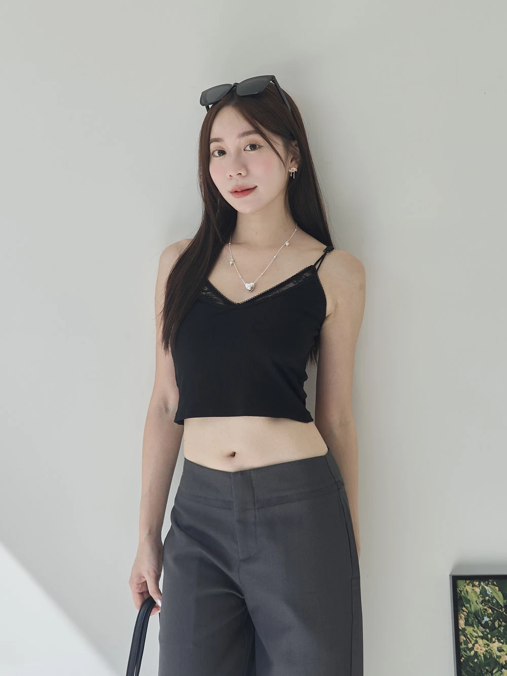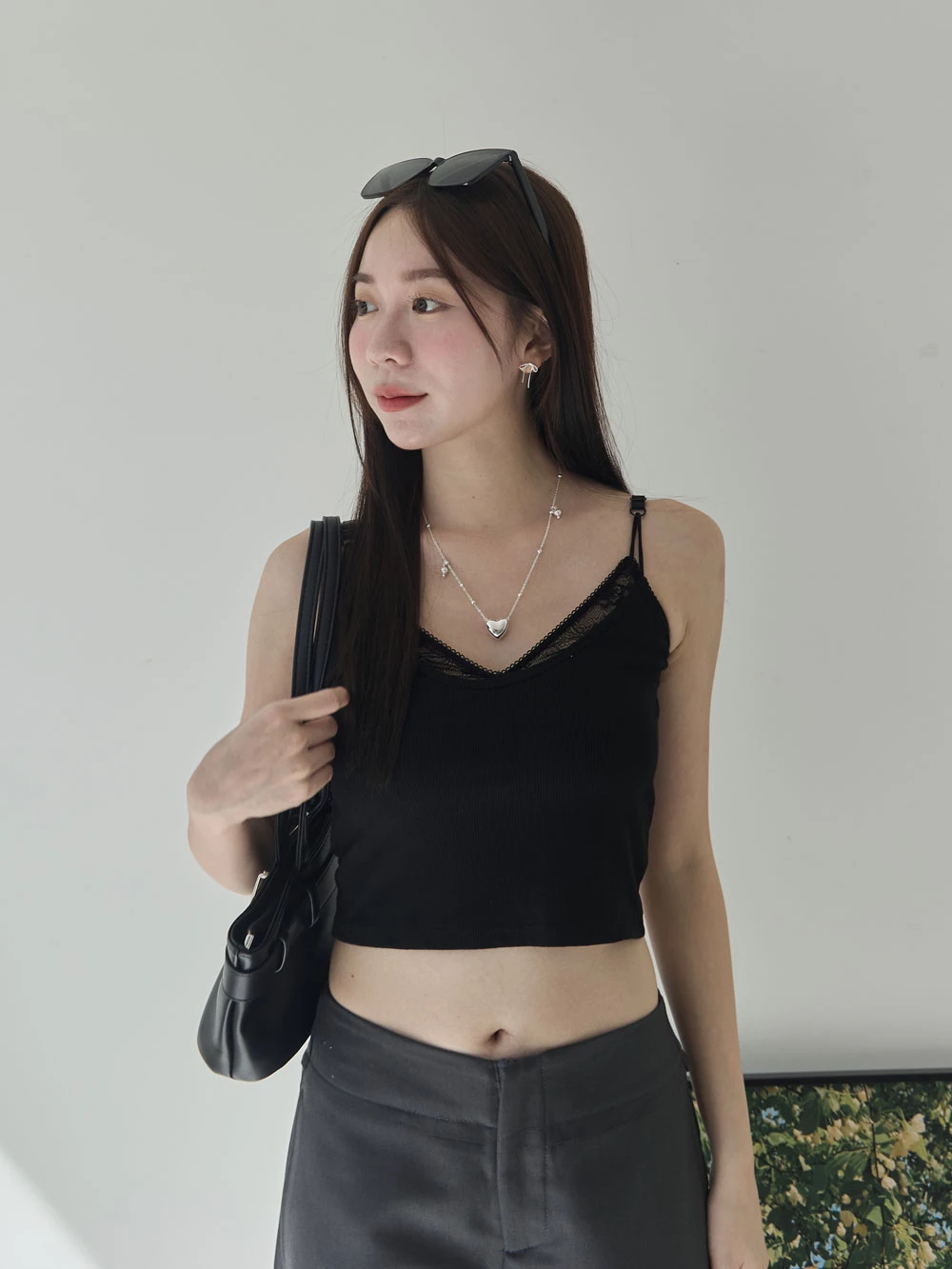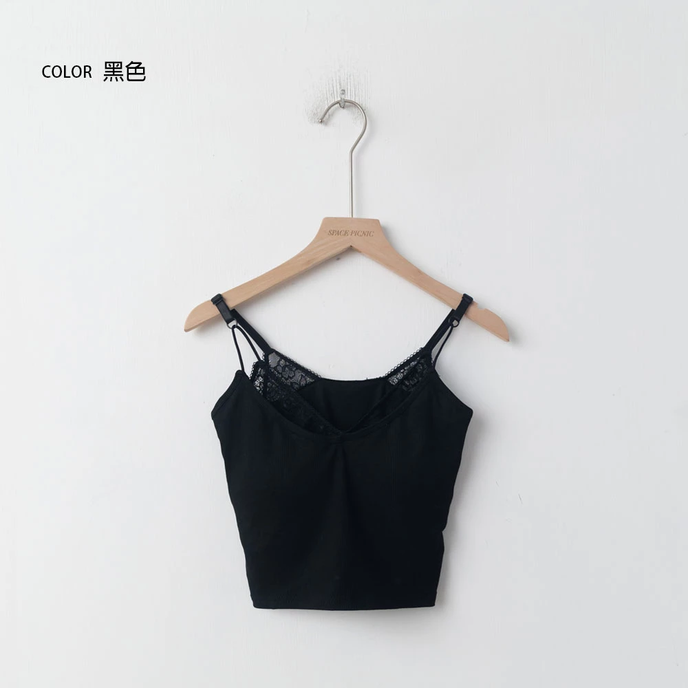 假兩件蕾絲胸墊細肩背心 | Space Picnic