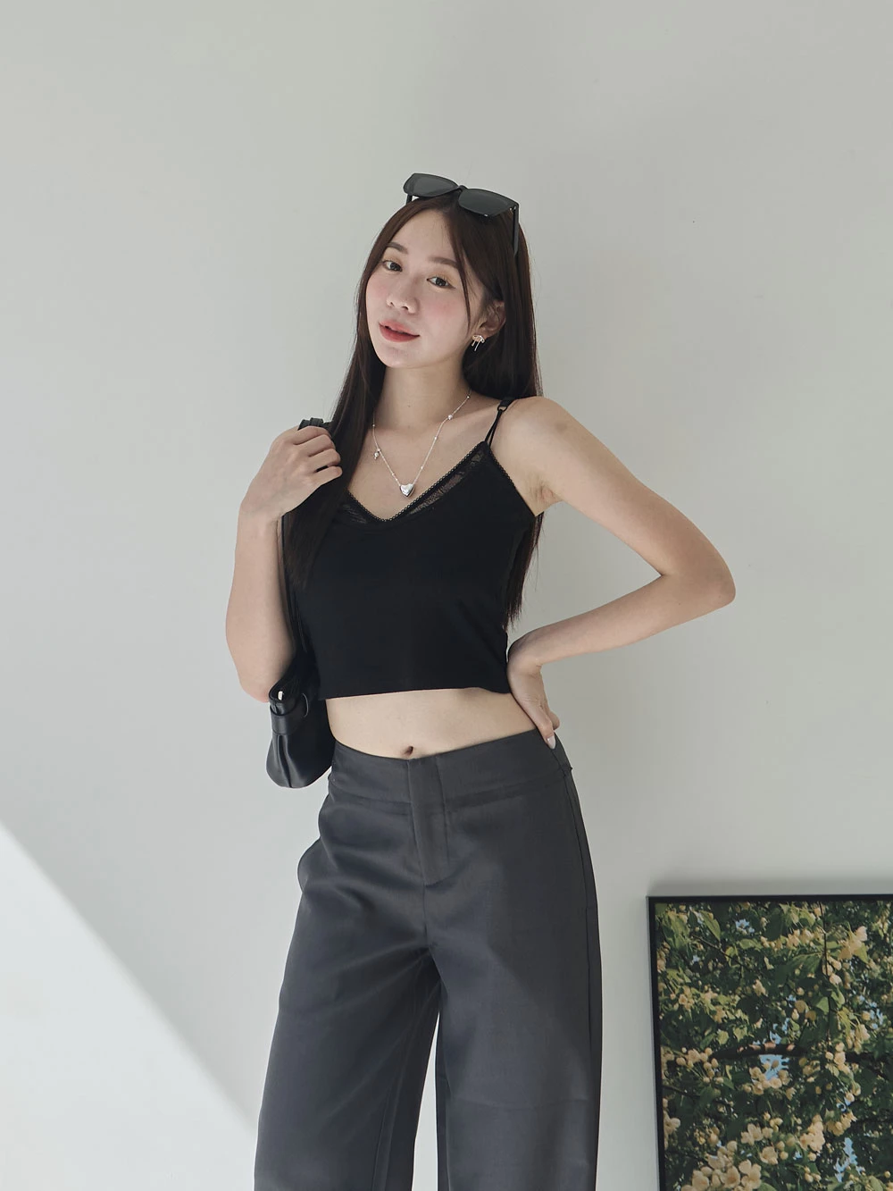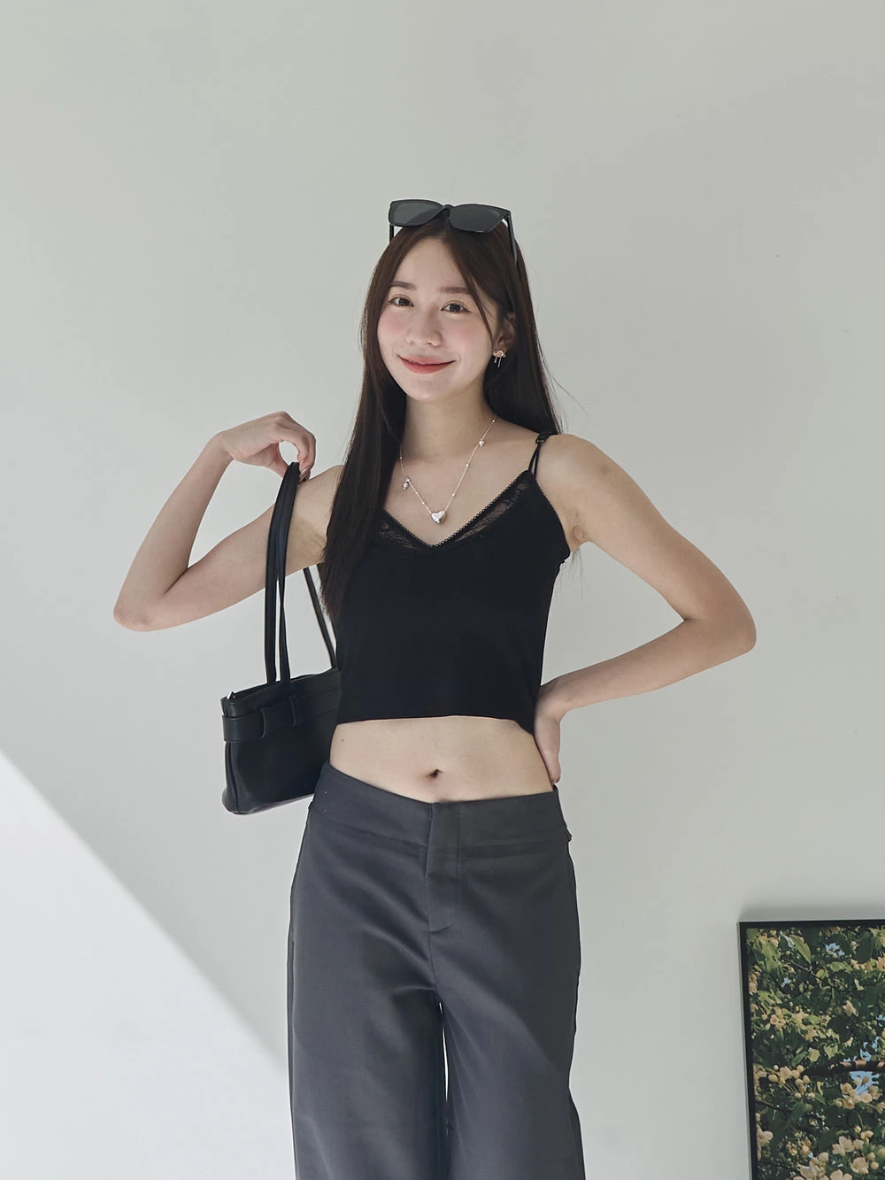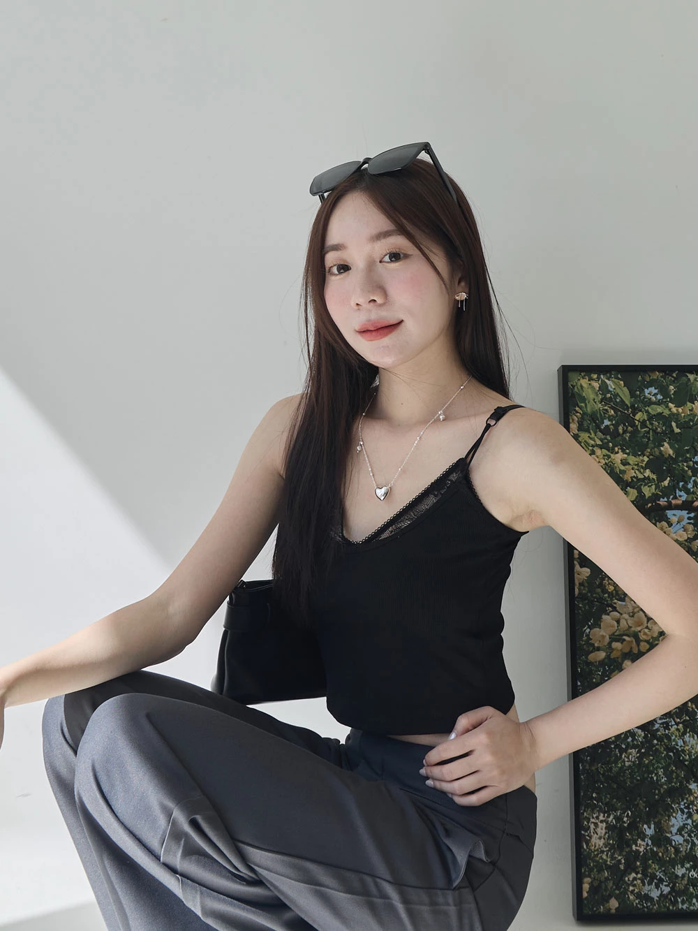 假兩件蕾絲胸墊細肩背心 | Space Picnic