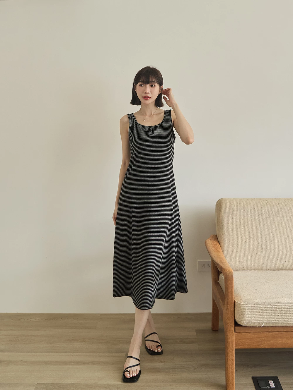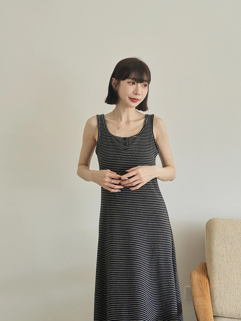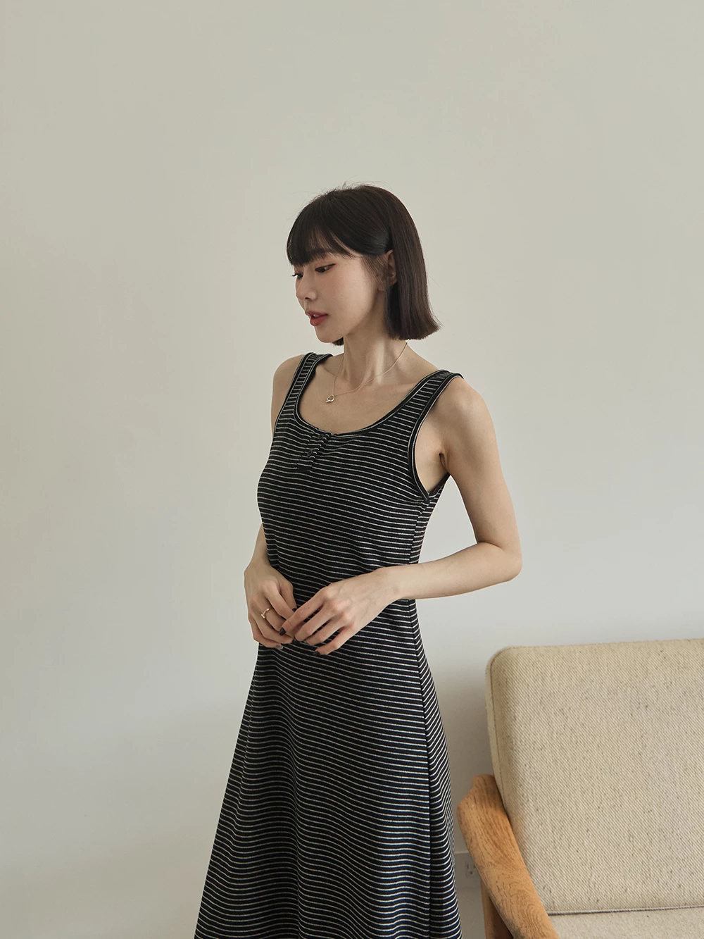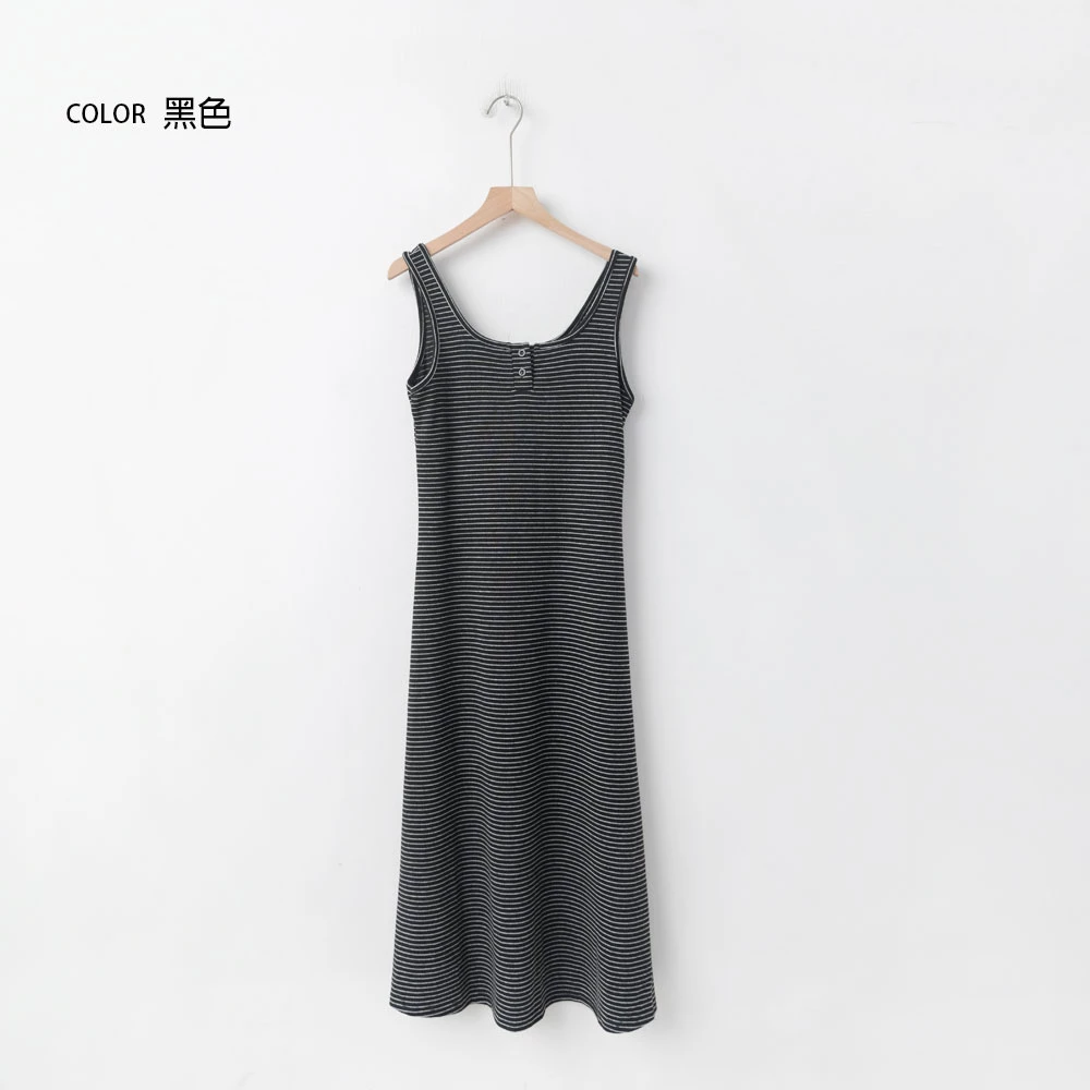 U領條紋背心洋裝