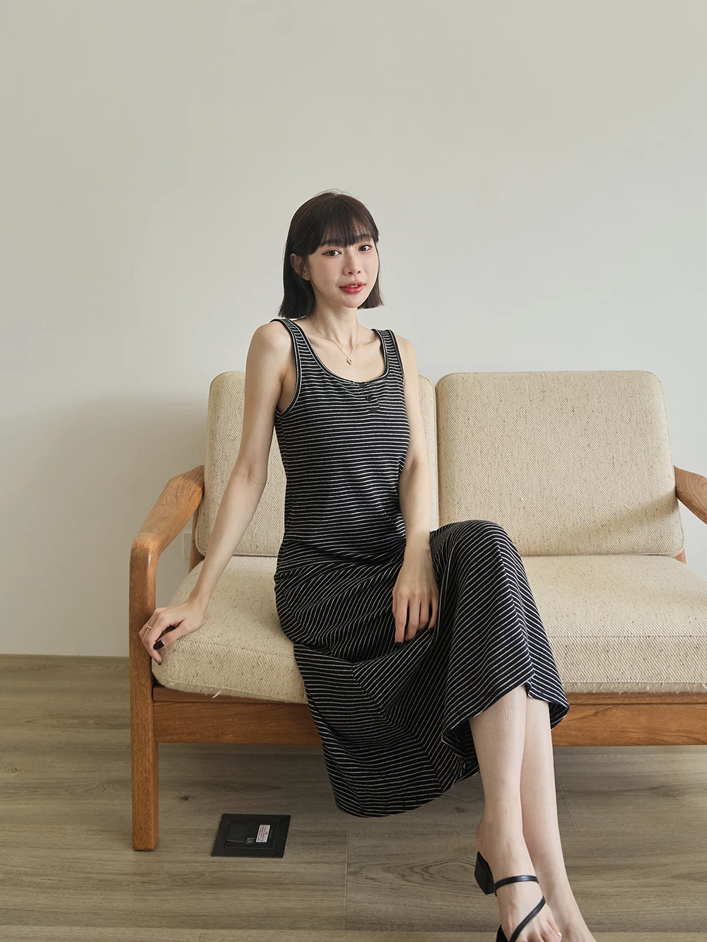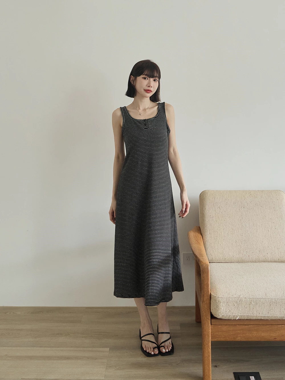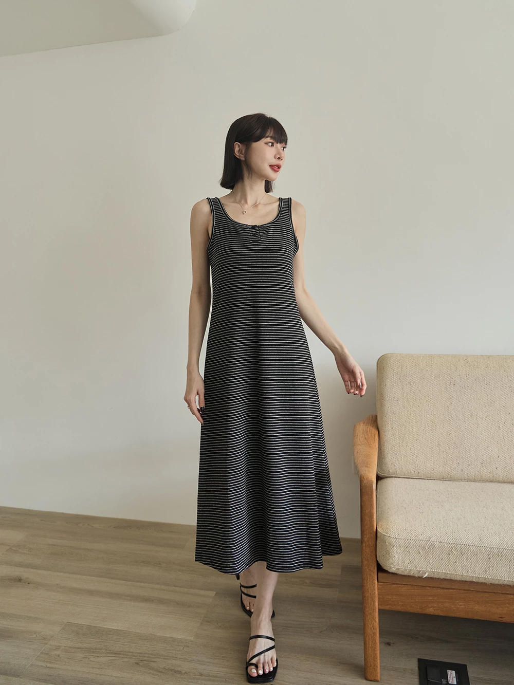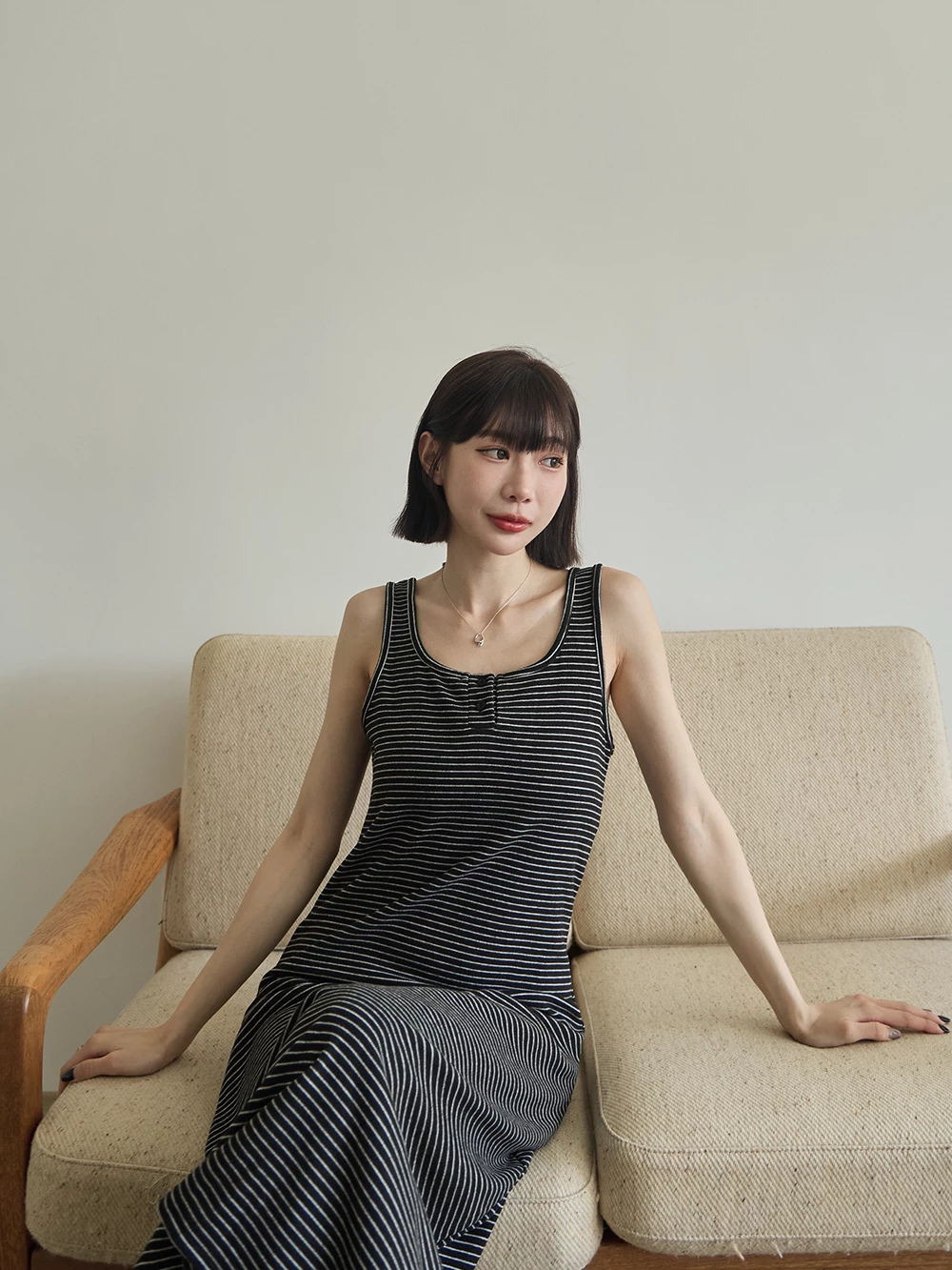 U領條紋背心洋裝