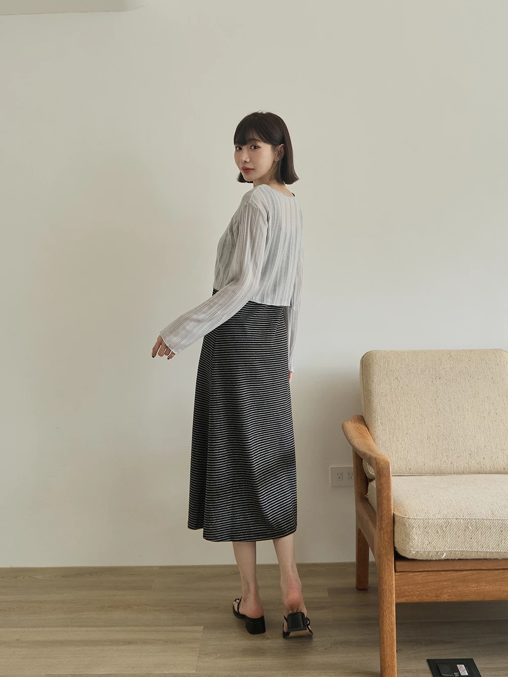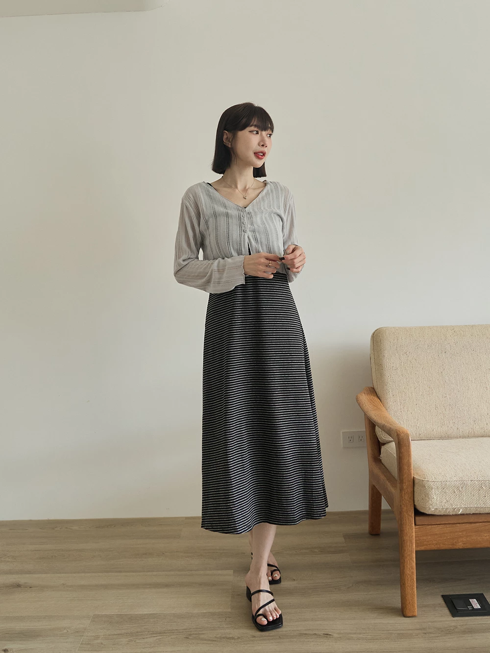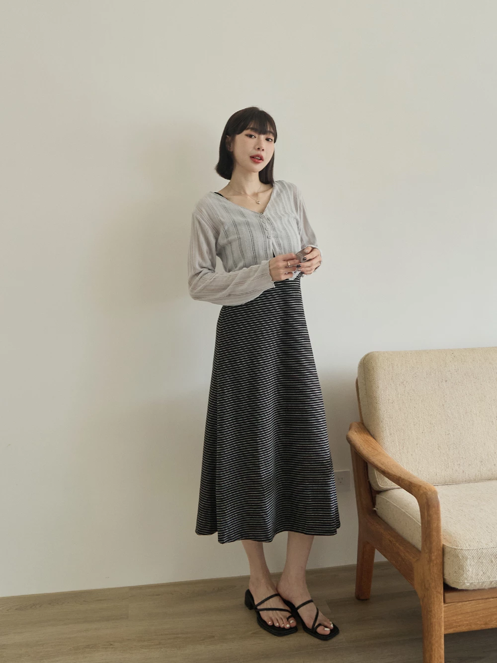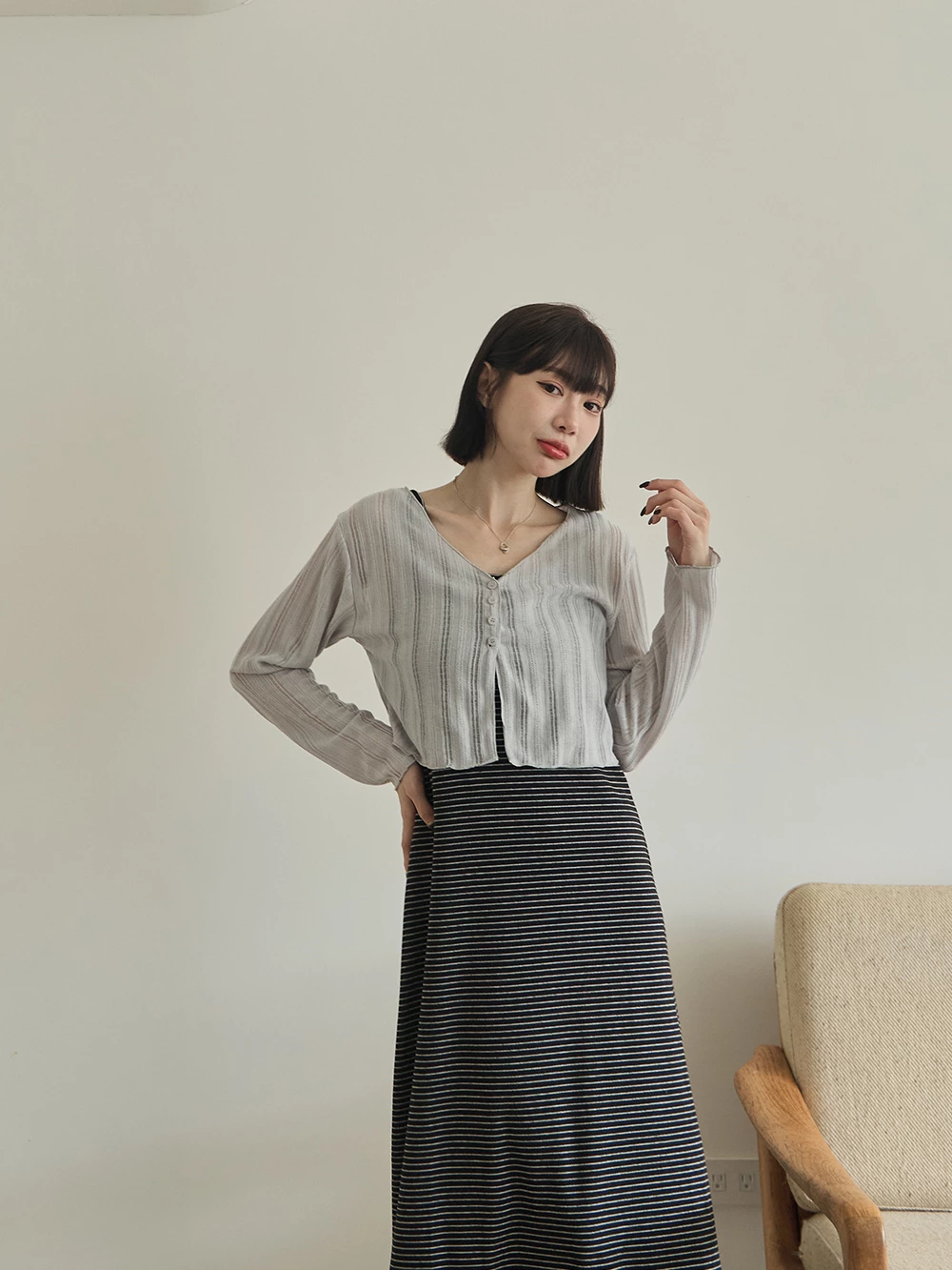 U領條紋背心洋裝