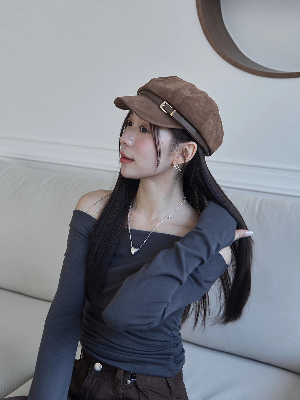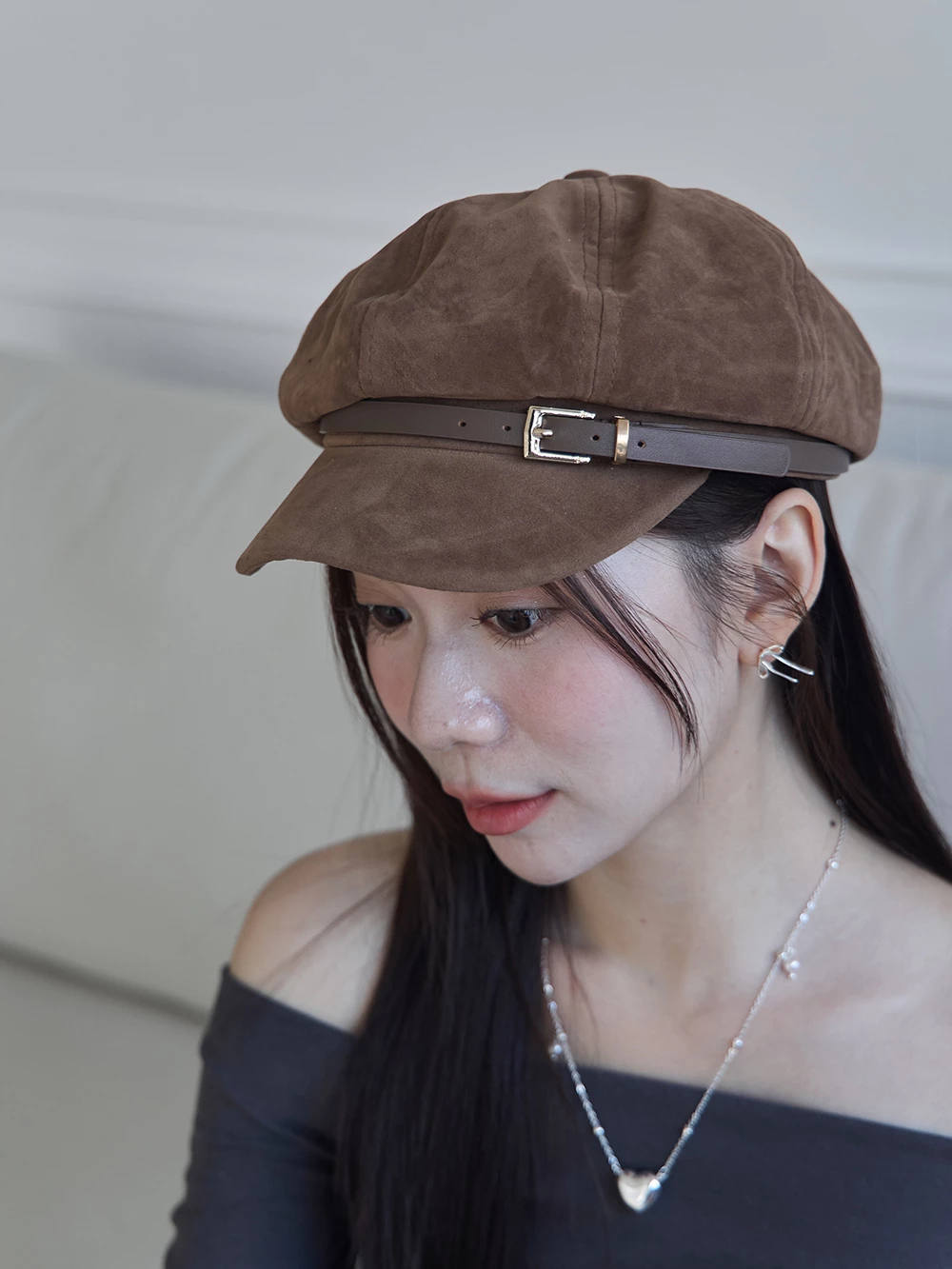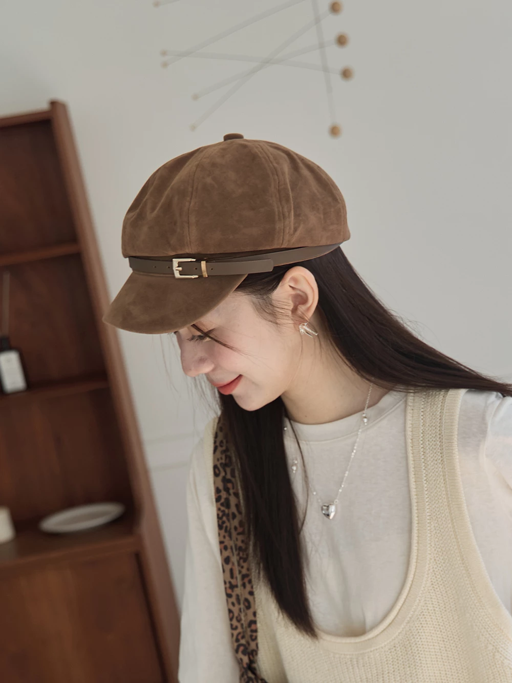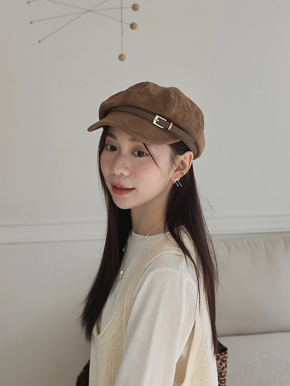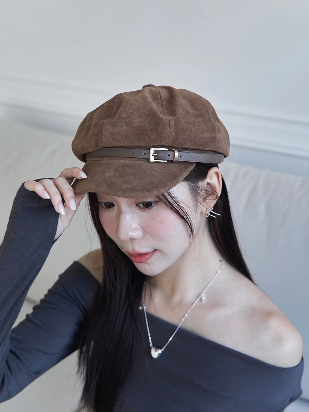 皮帶釦麂皮報童帽