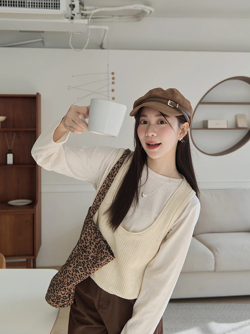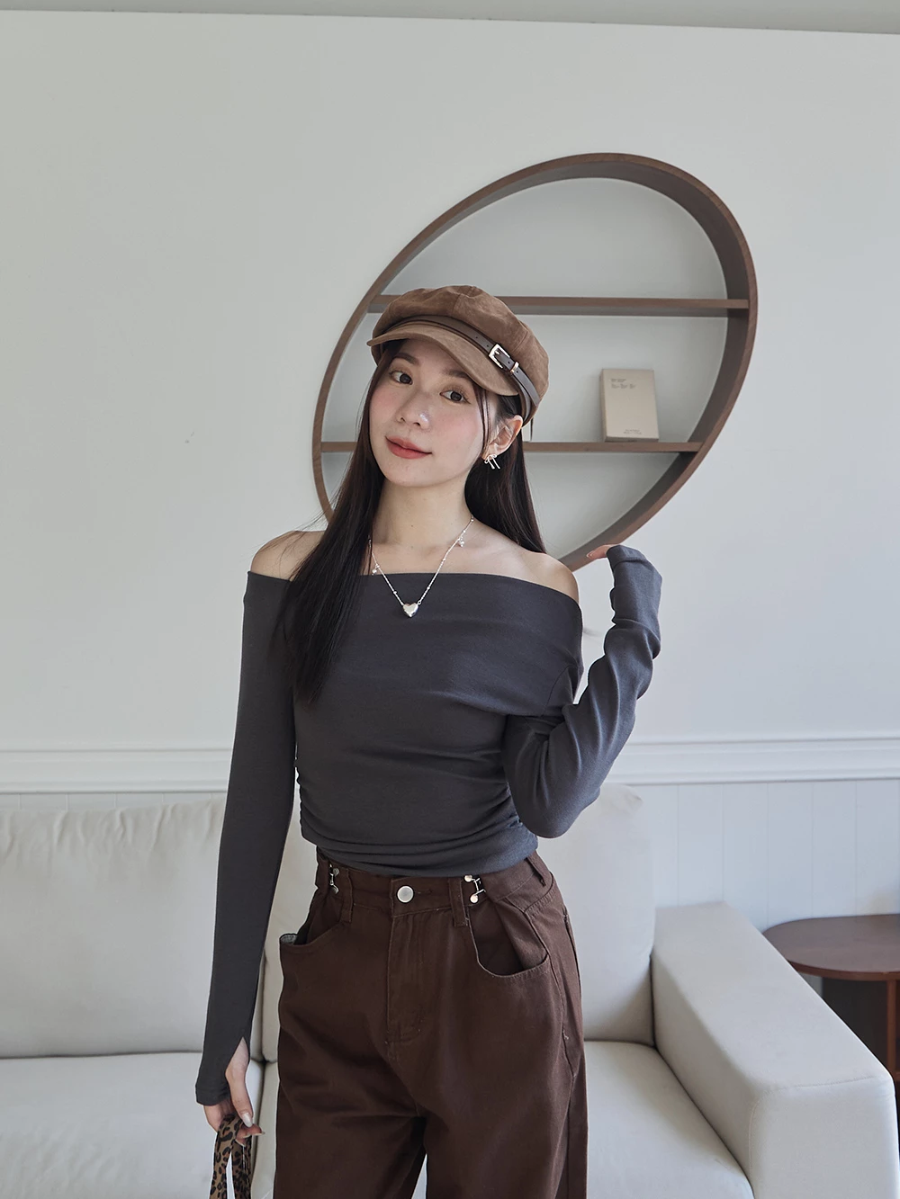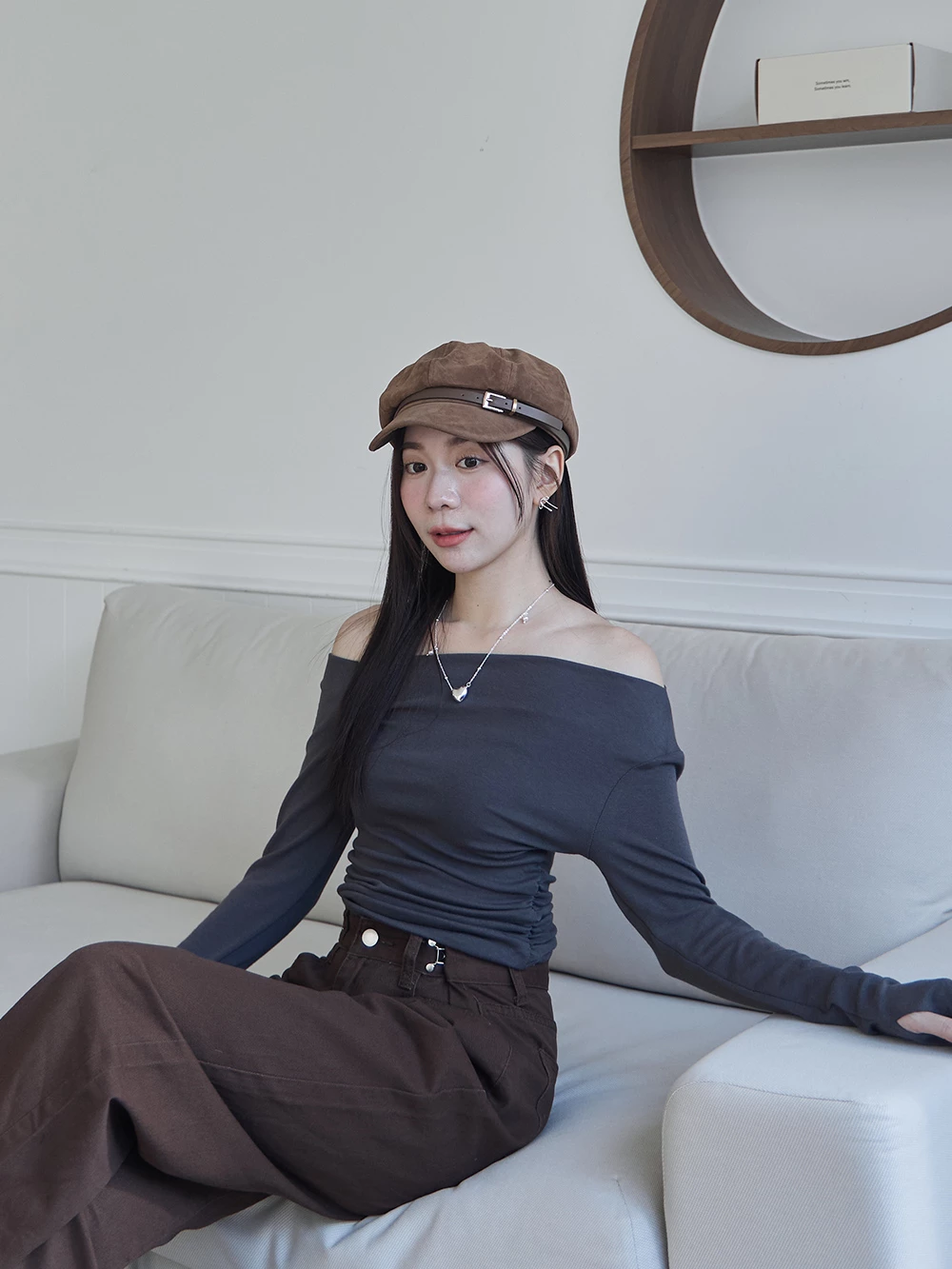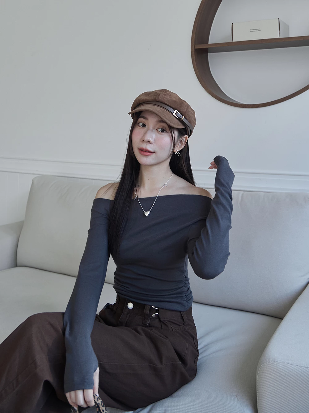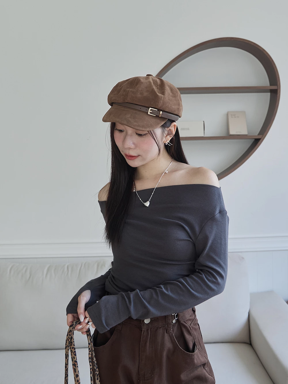 皮帶釦麂皮報童帽
