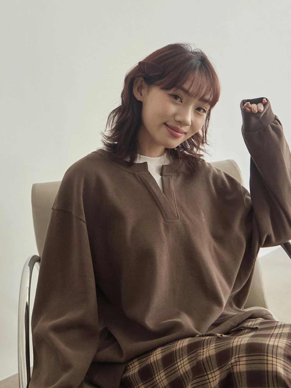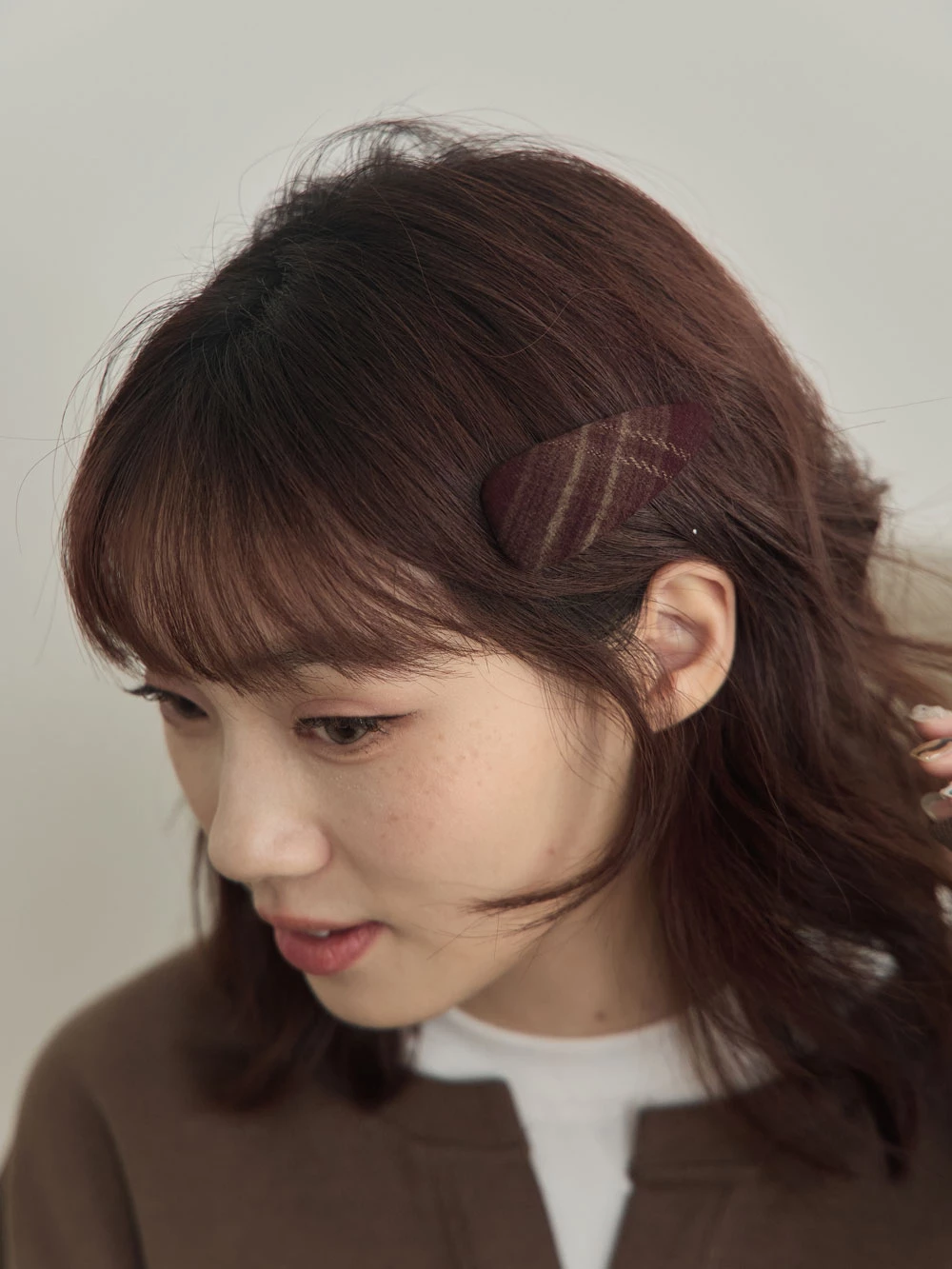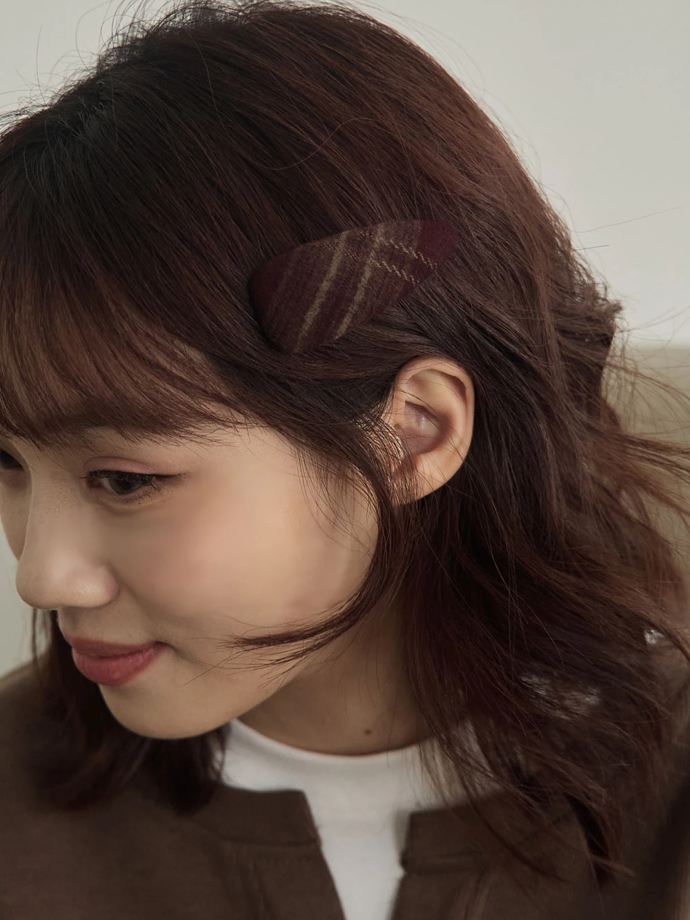 復古格紋布面髮夾