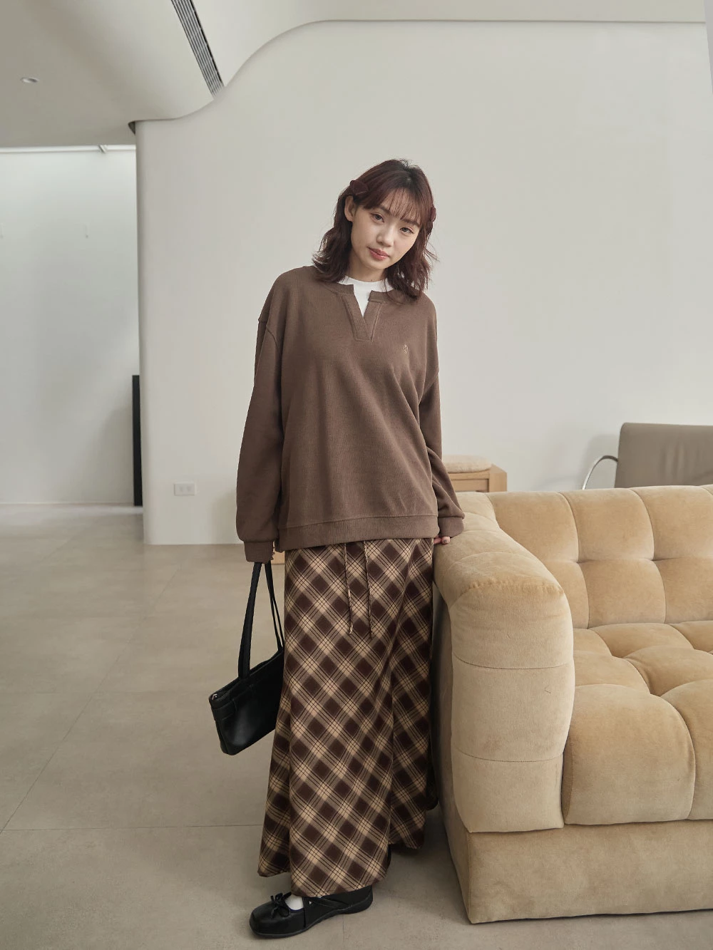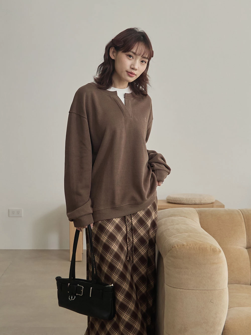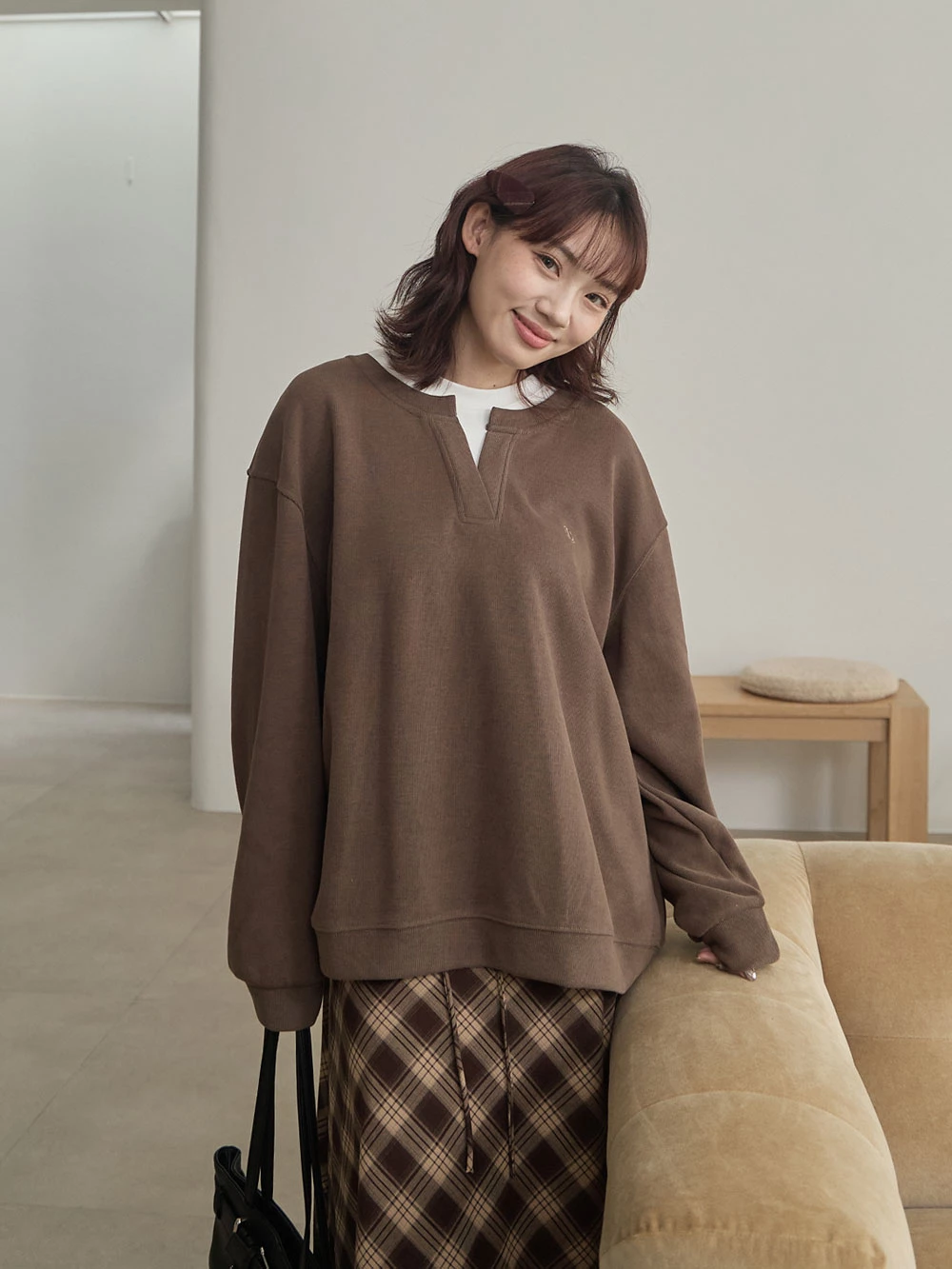 復古格紋布面髮夾