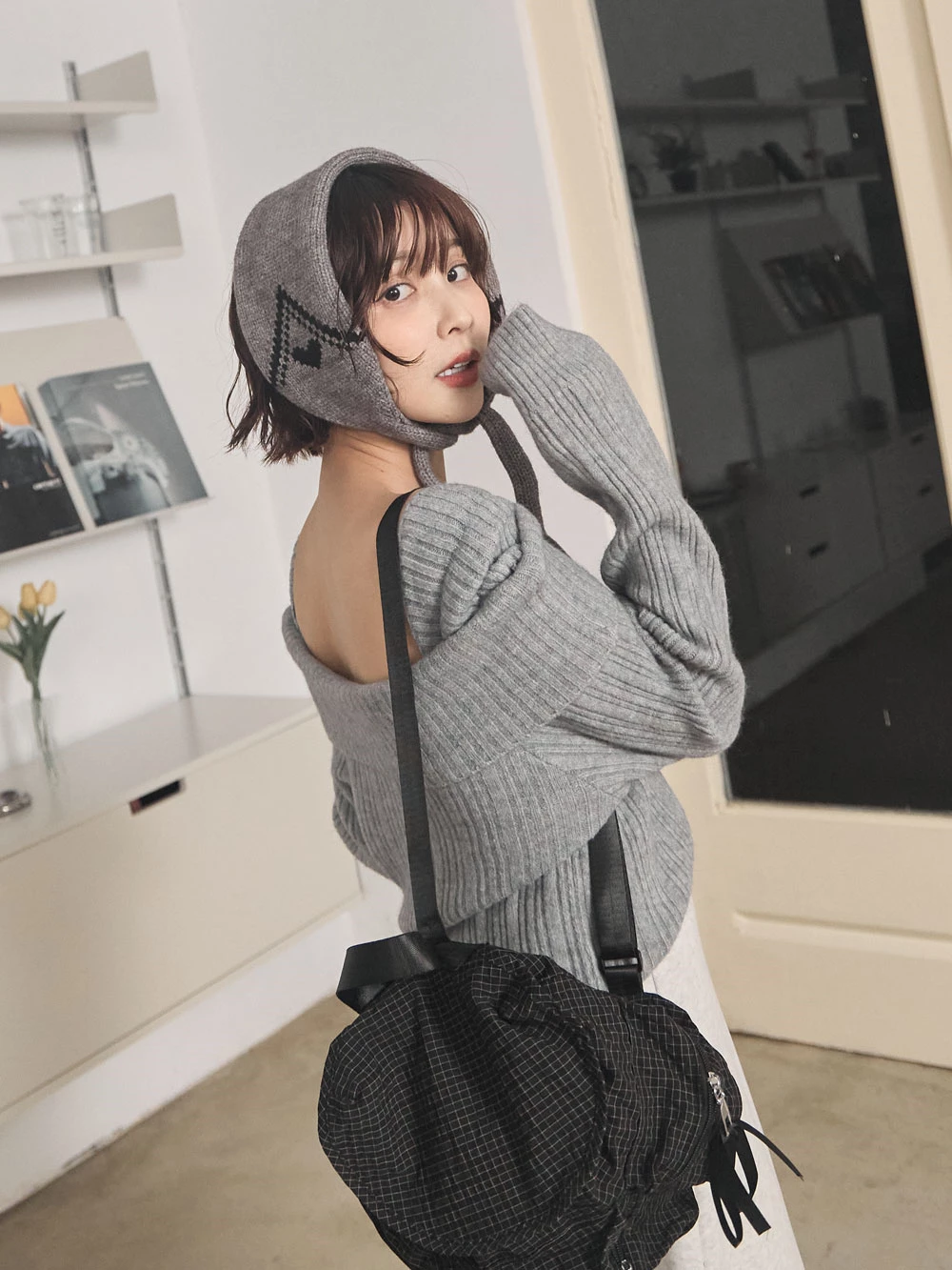 綁帶針織護耳帽