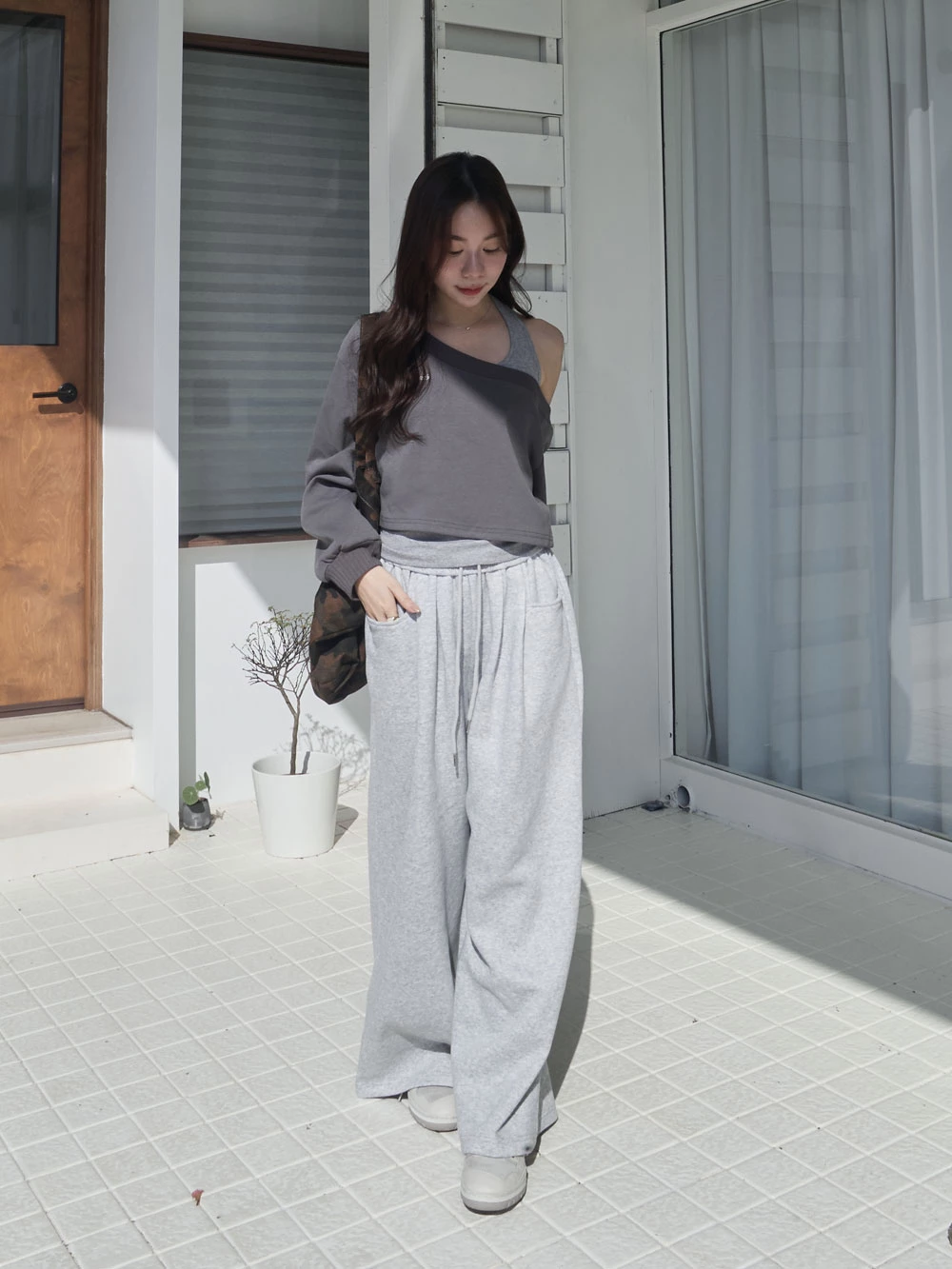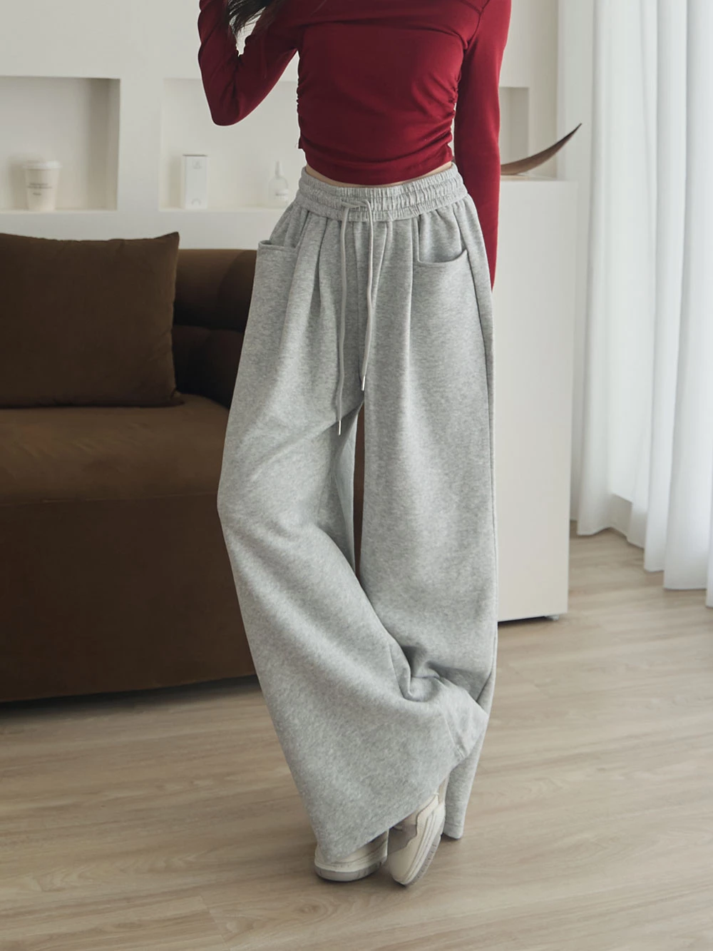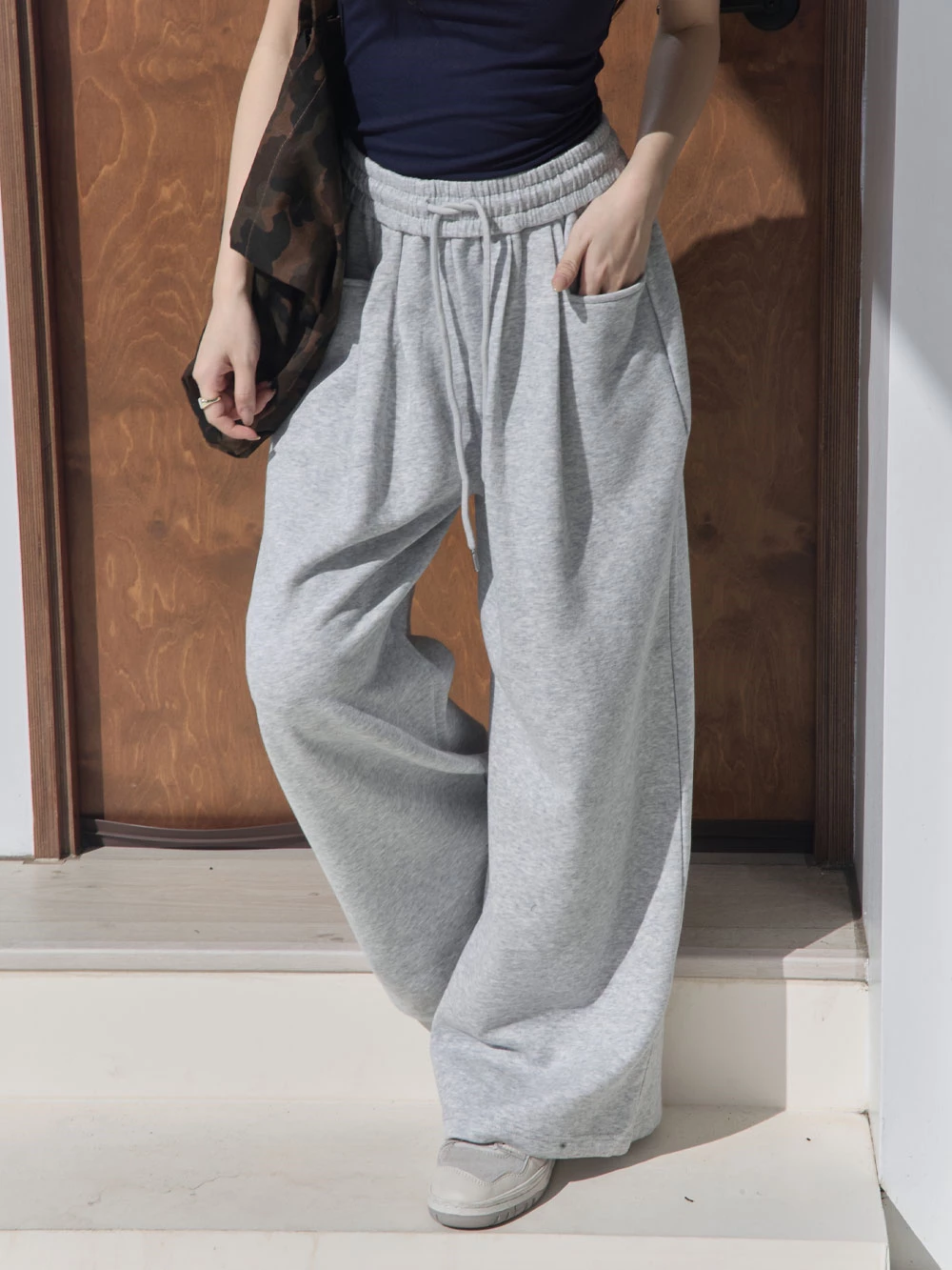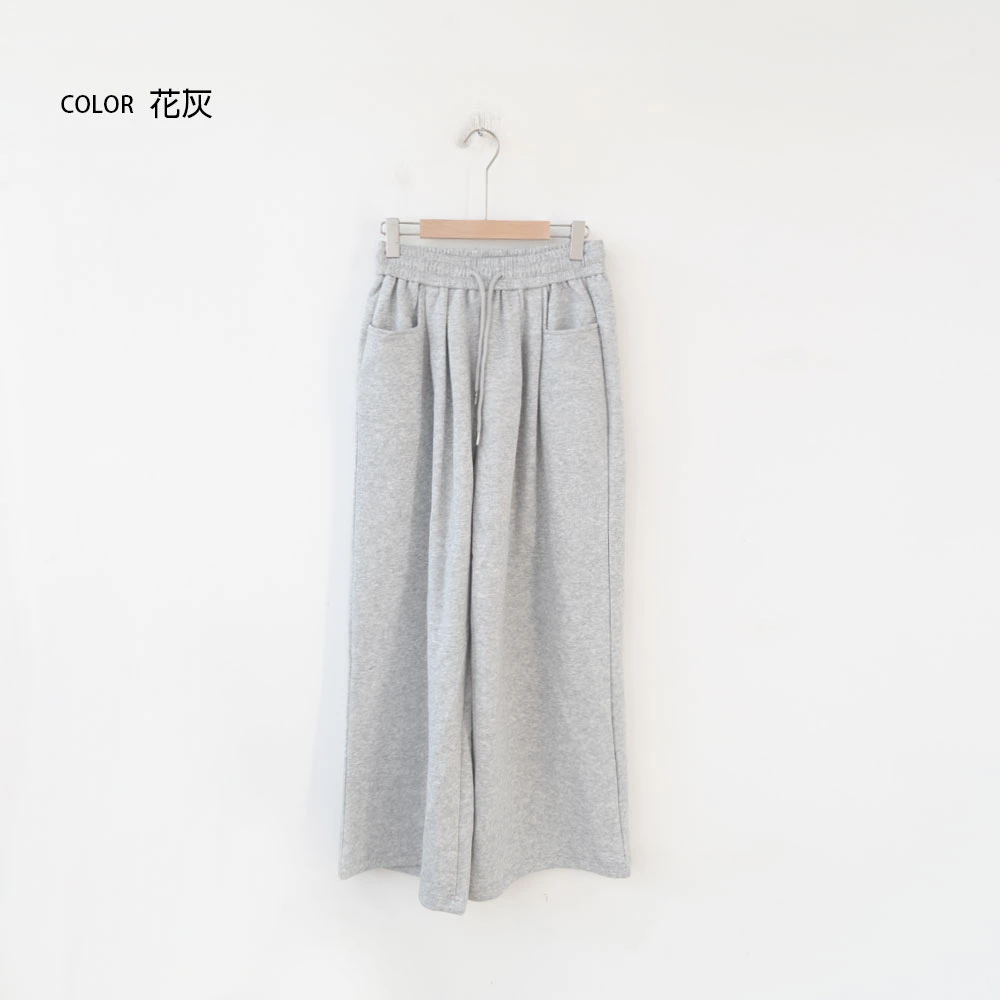 雙口袋抽繩休閒寬褲