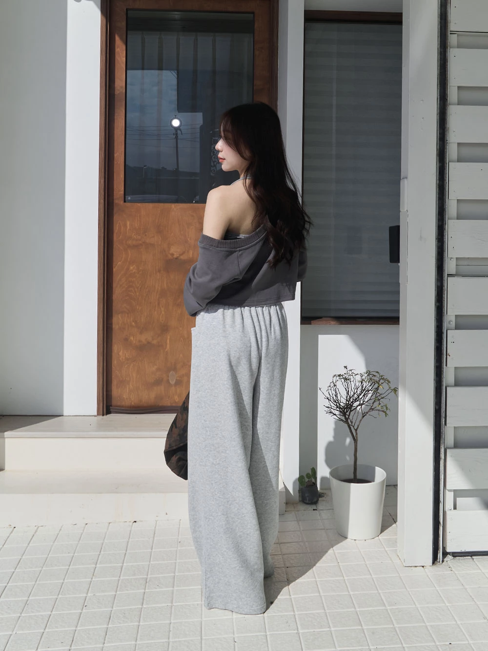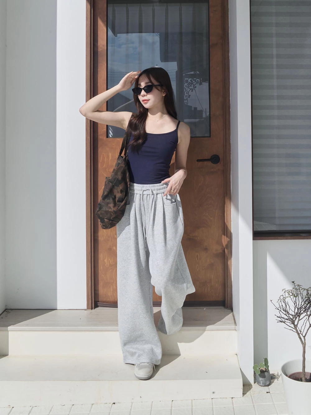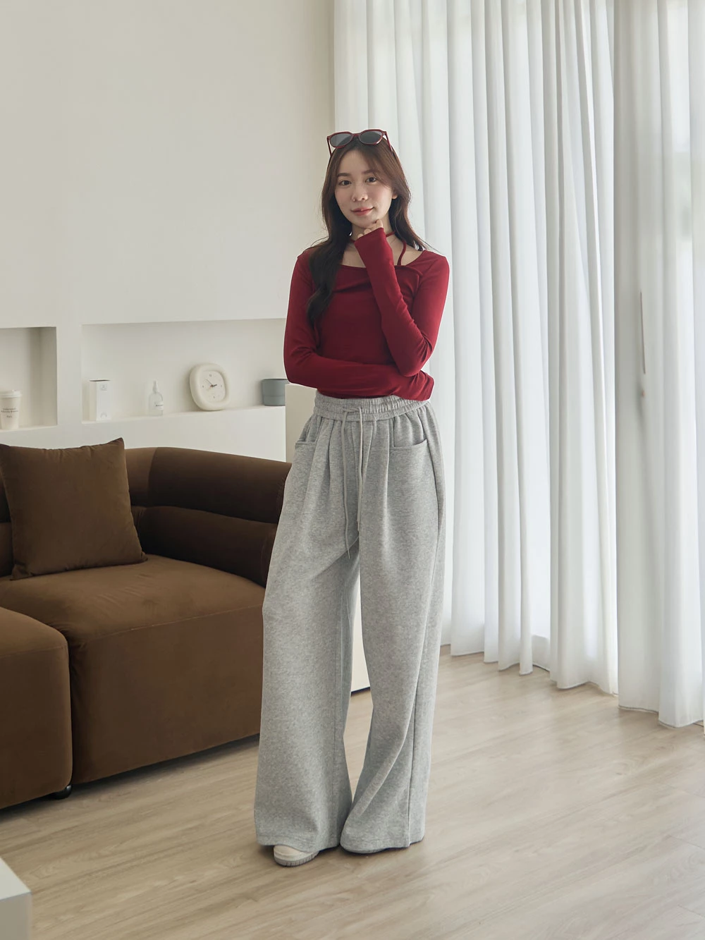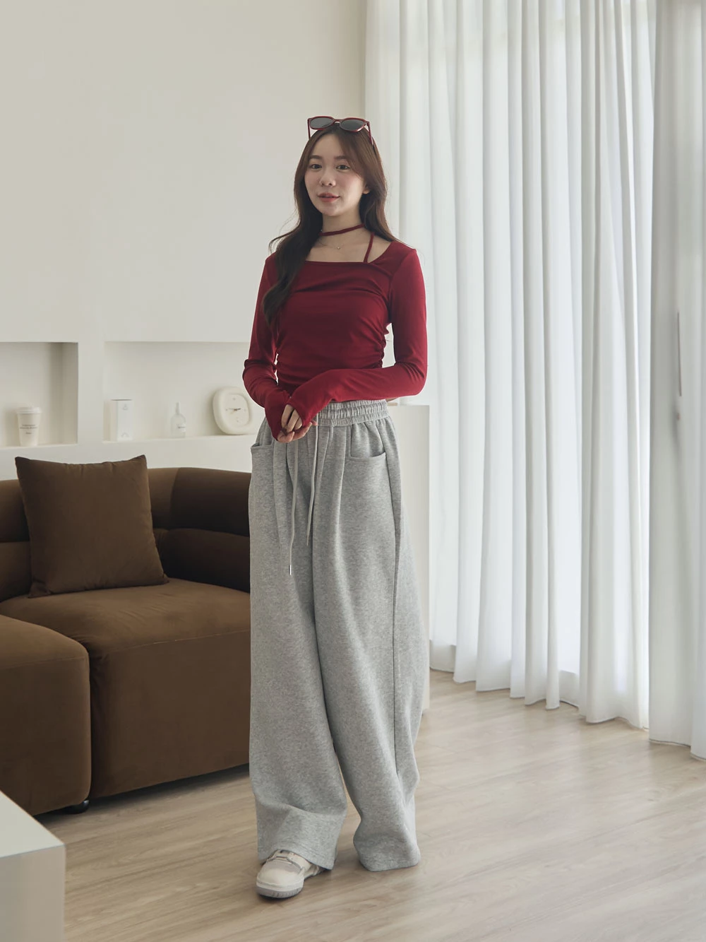 雙口袋抽繩休閒寬褲