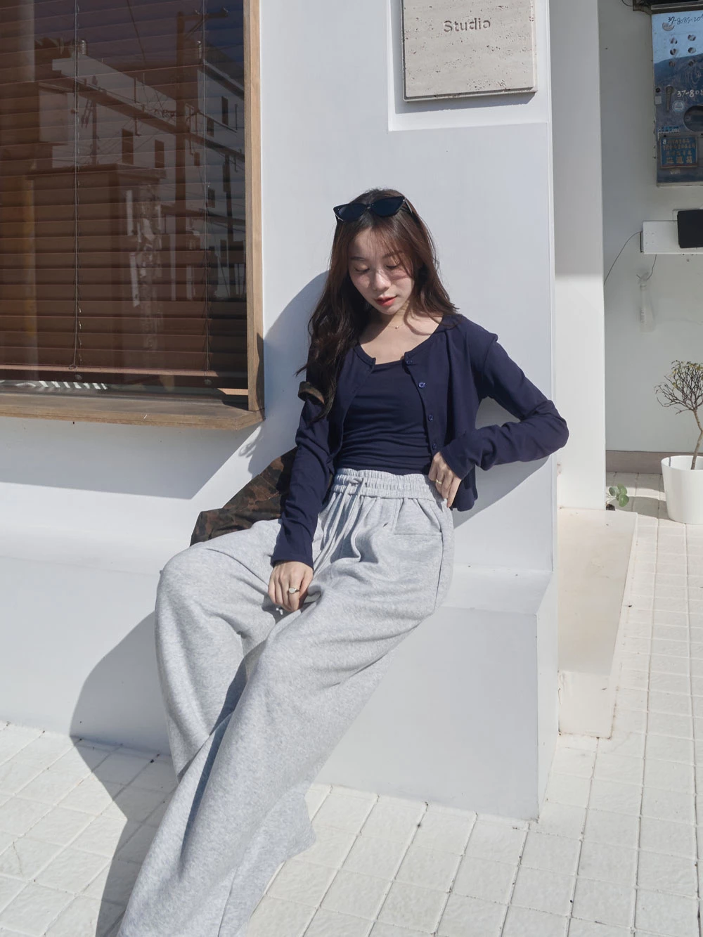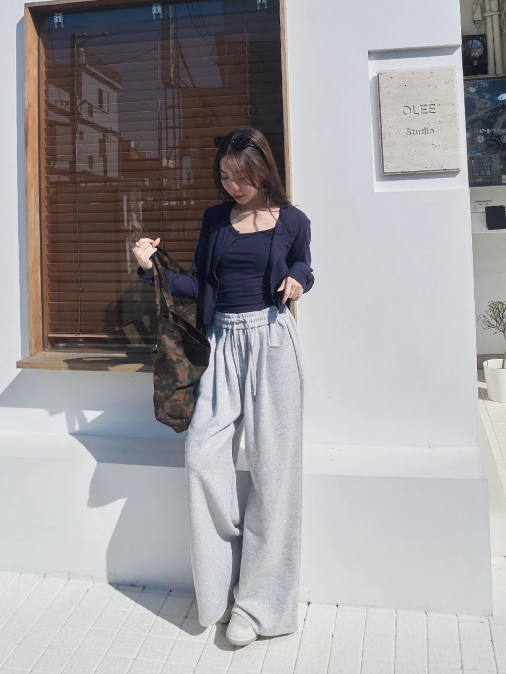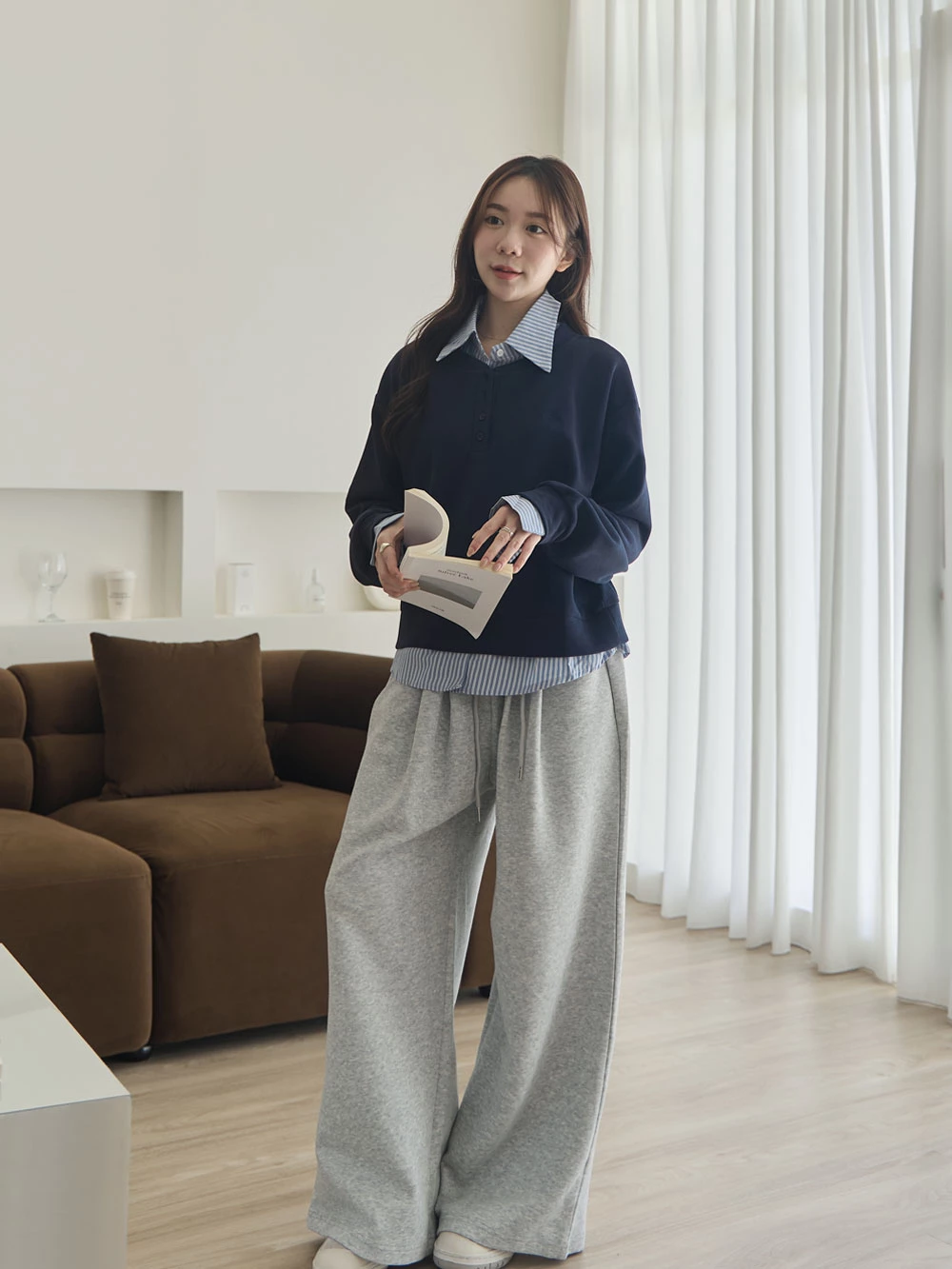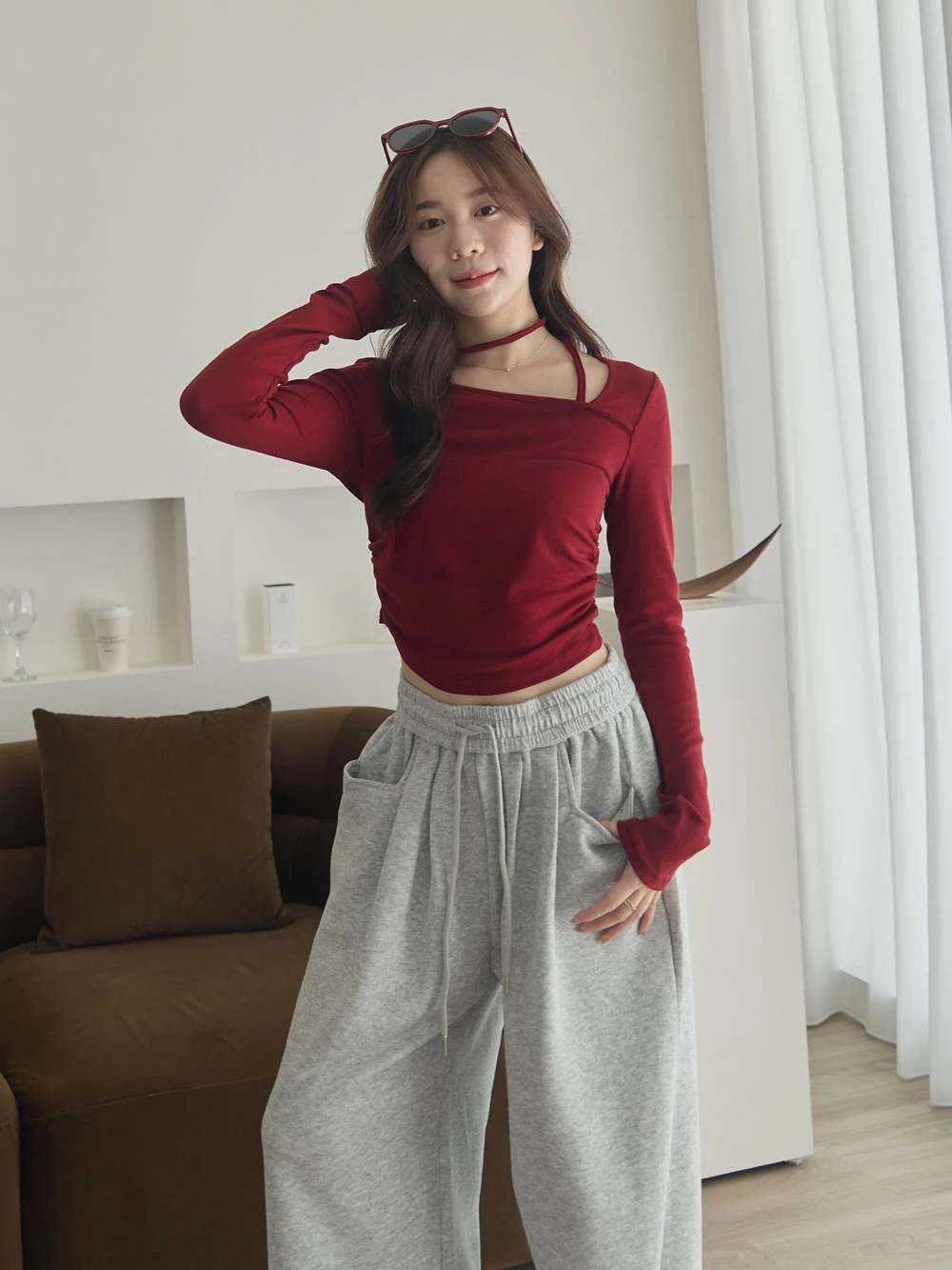 雙口袋抽繩休閒寬褲