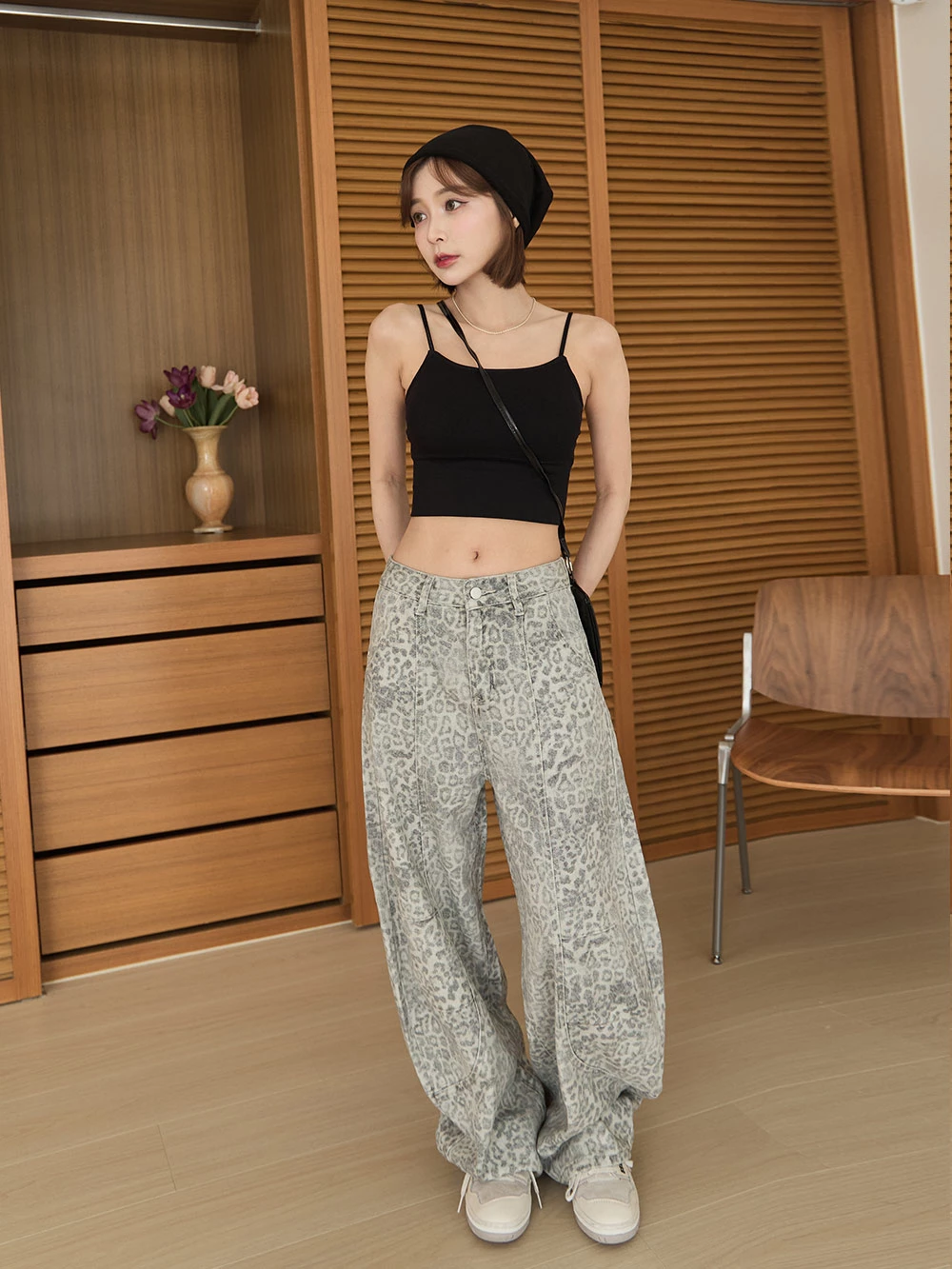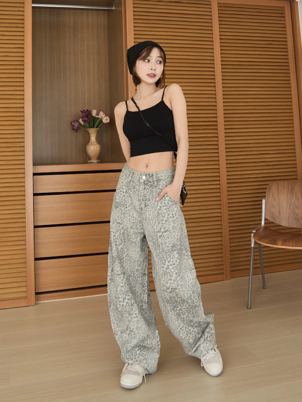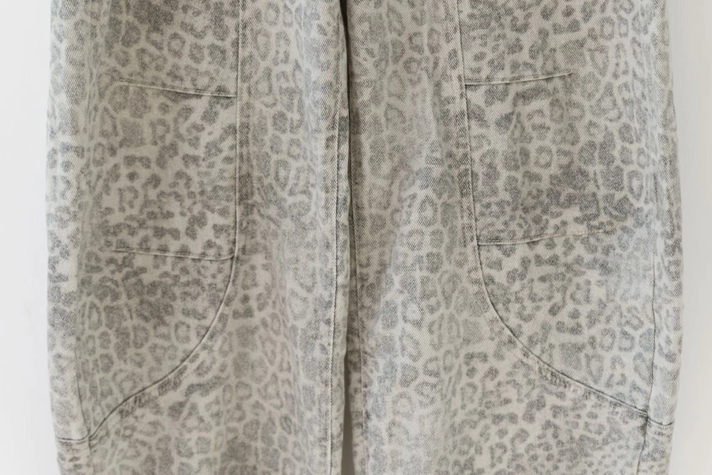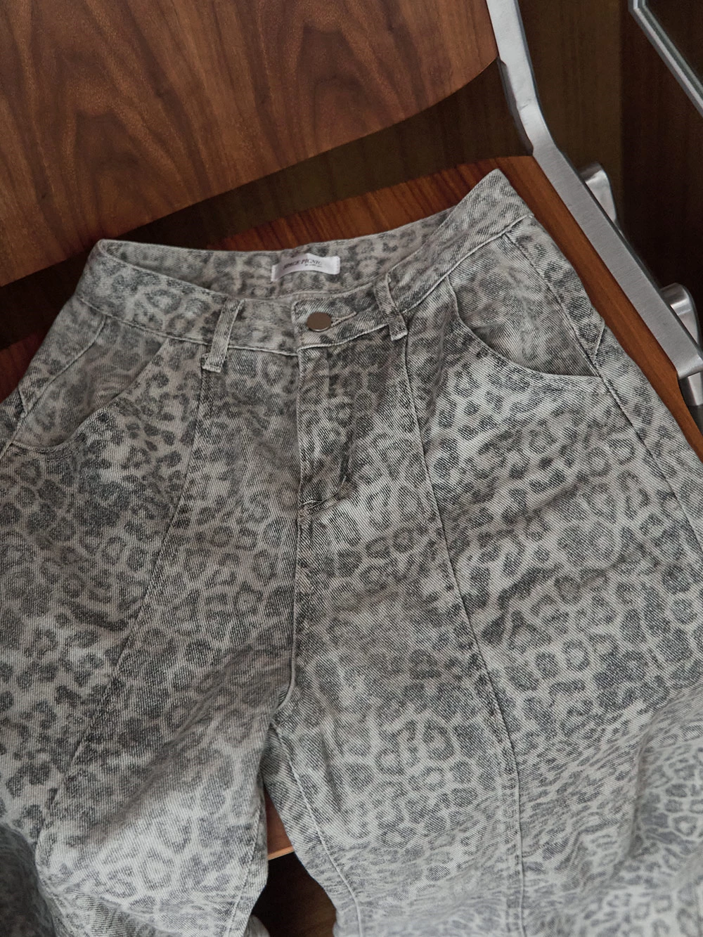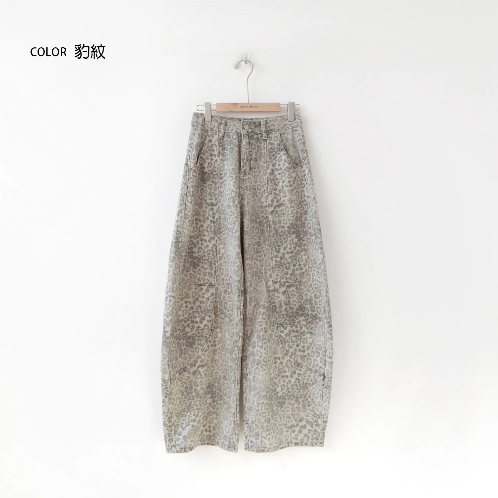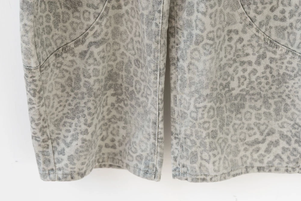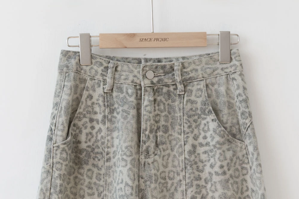 SPmade-刷舊豹紋彎刀牛仔褲