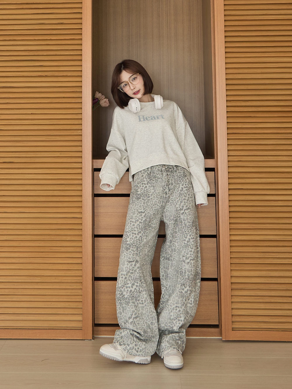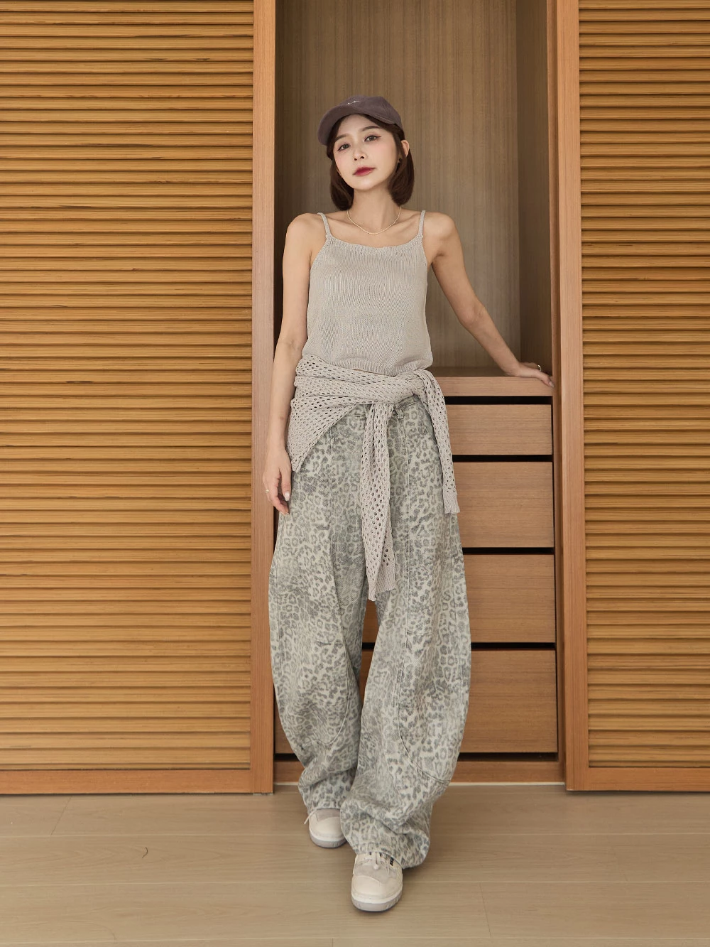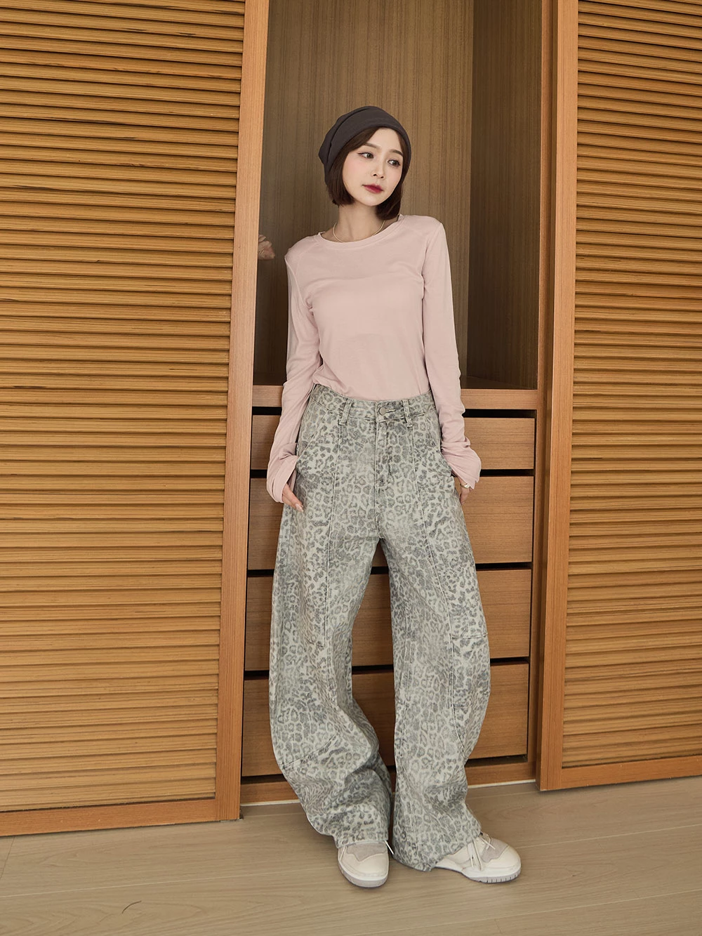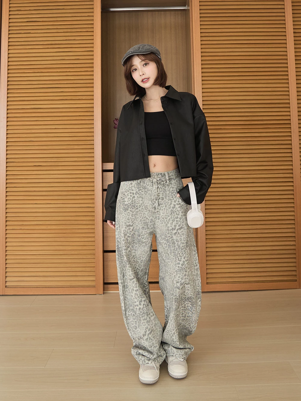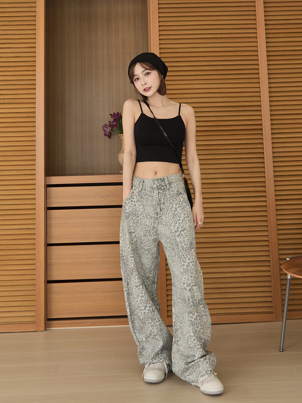 SPmade-刷舊豹紋彎刀牛仔褲