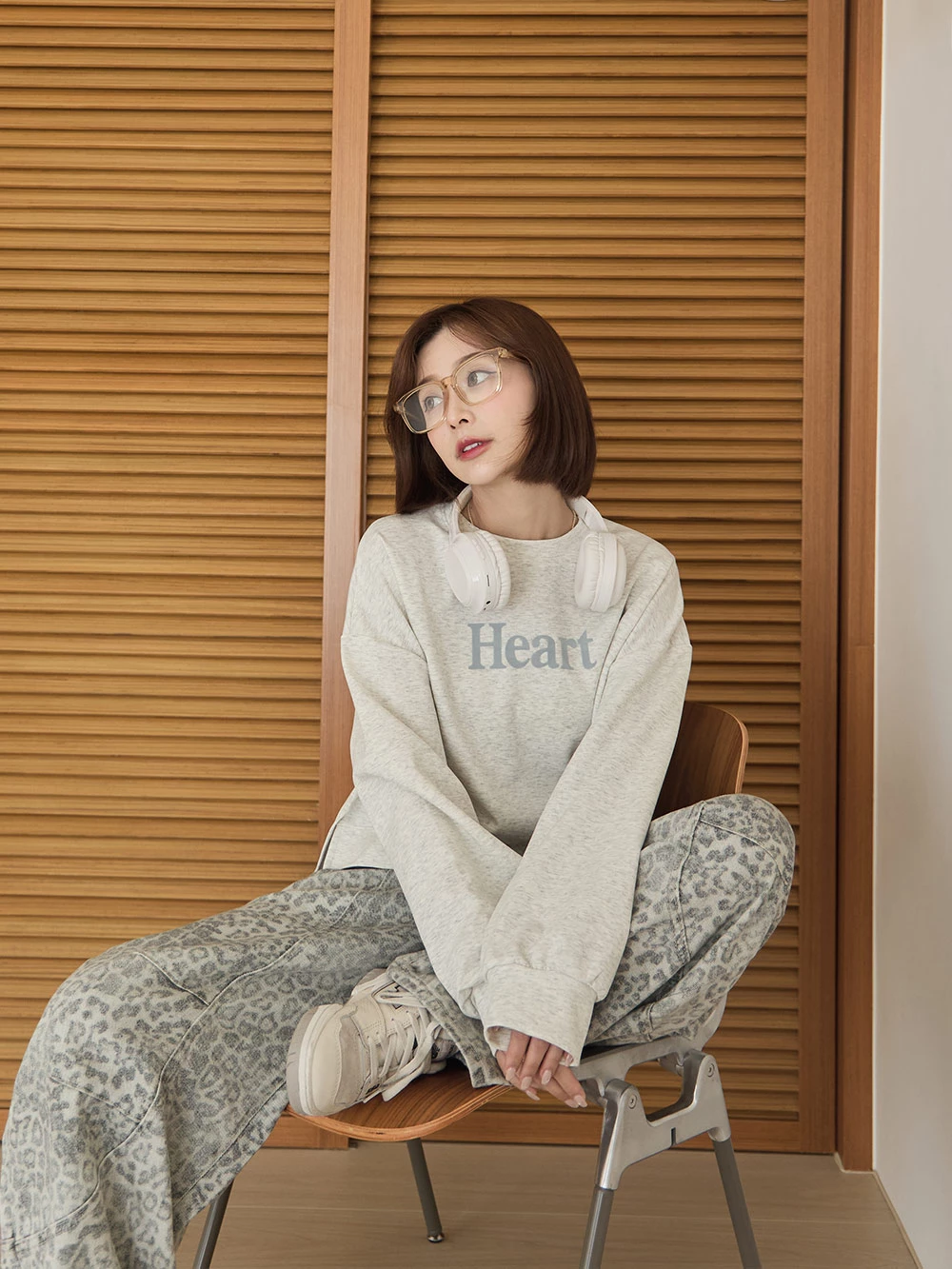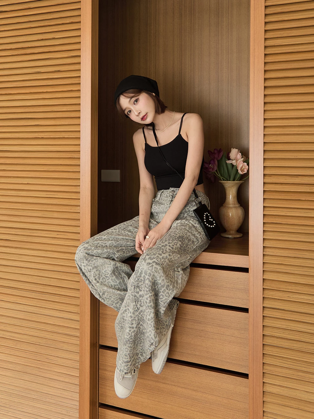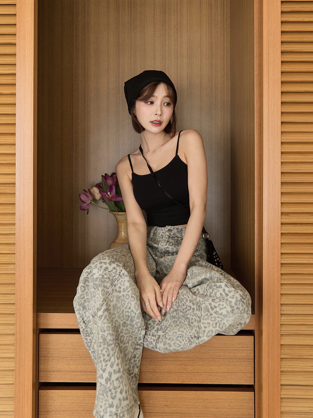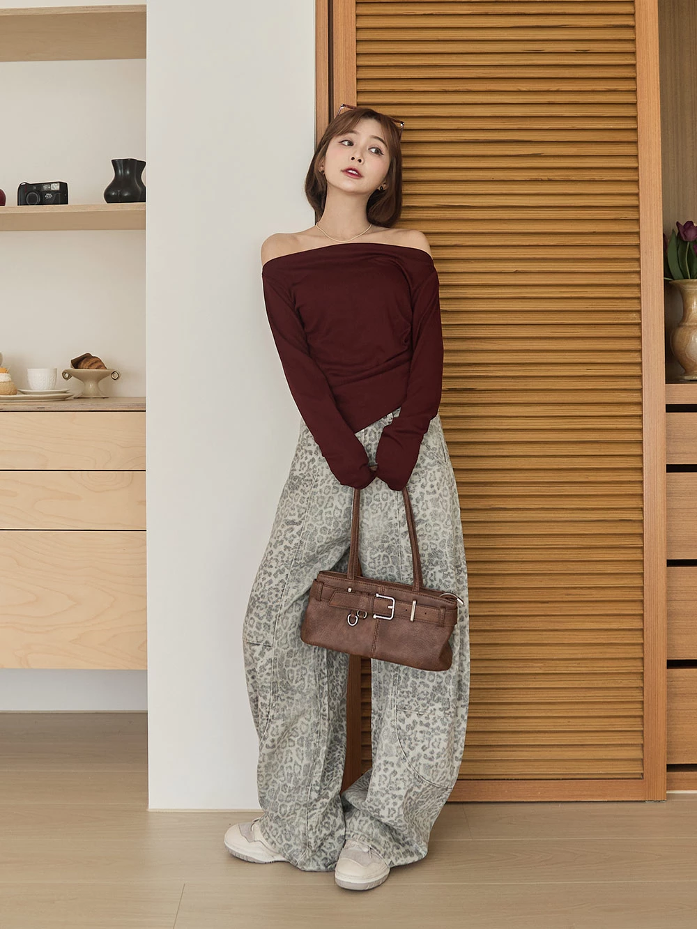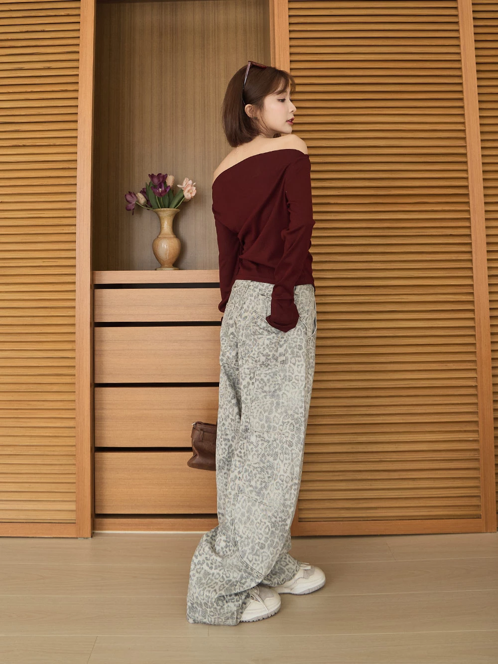SPmade-刷舊豹紋彎刀牛仔褲