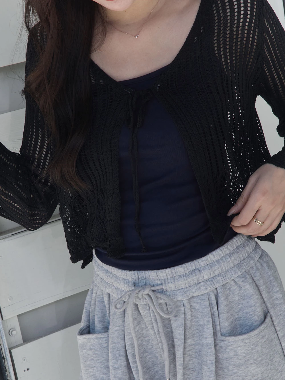 縷空透膚綁帶罩衫
