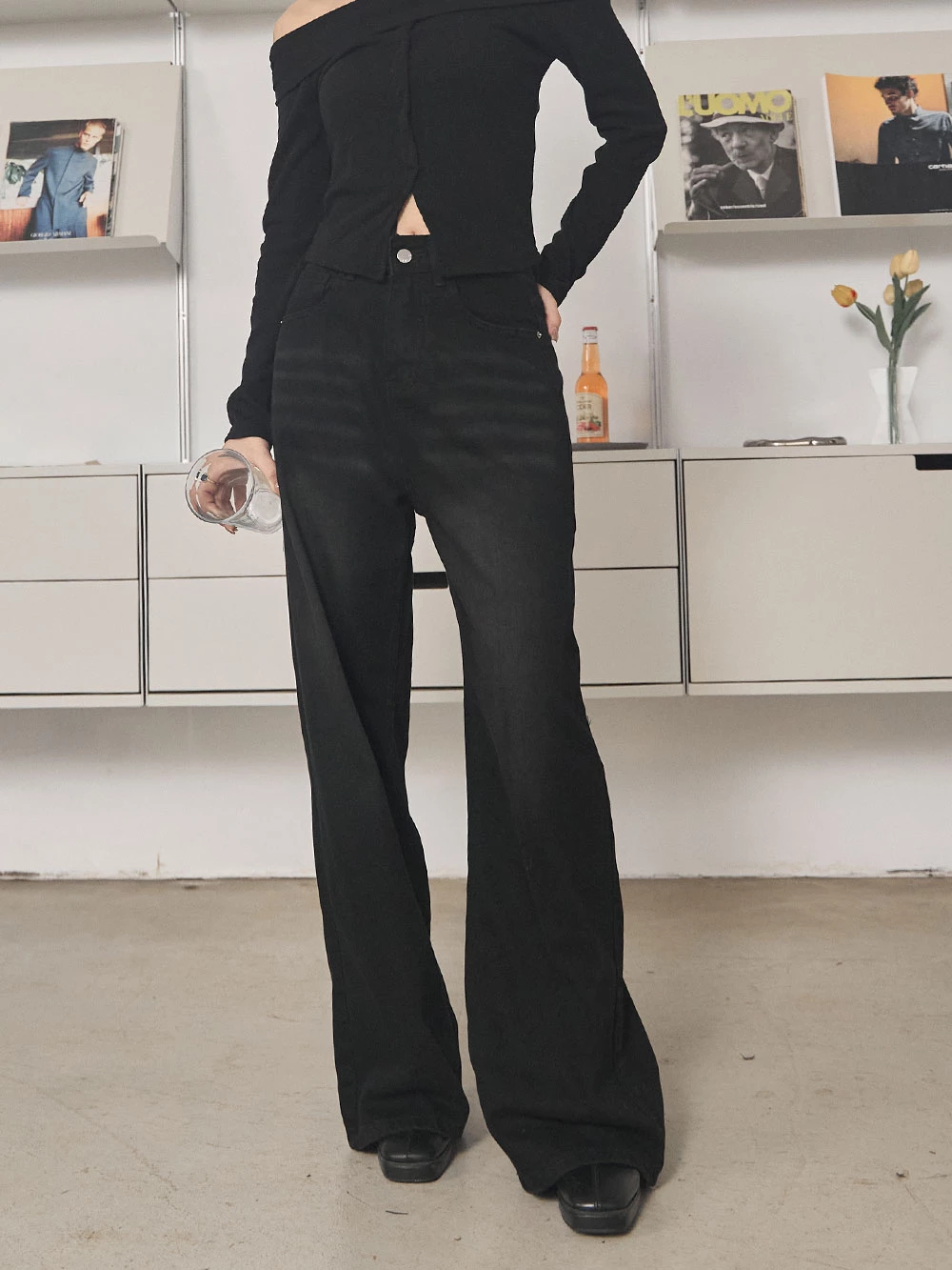 銀釦刷色牛仔褲 | Space Picnic