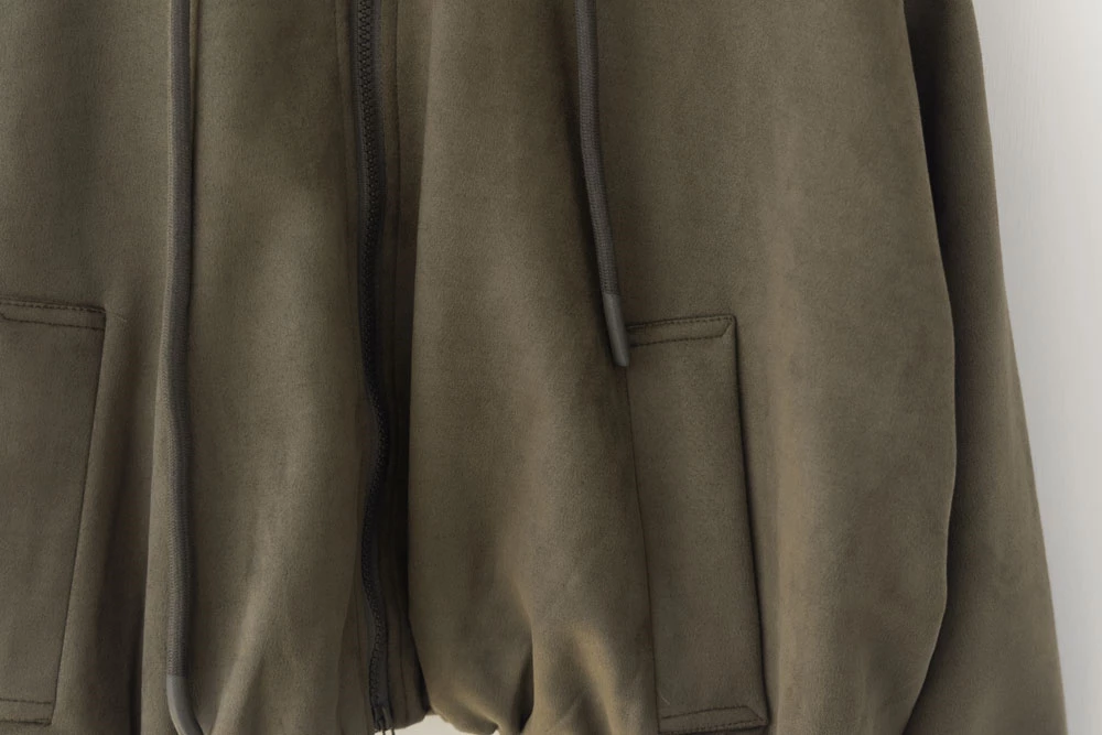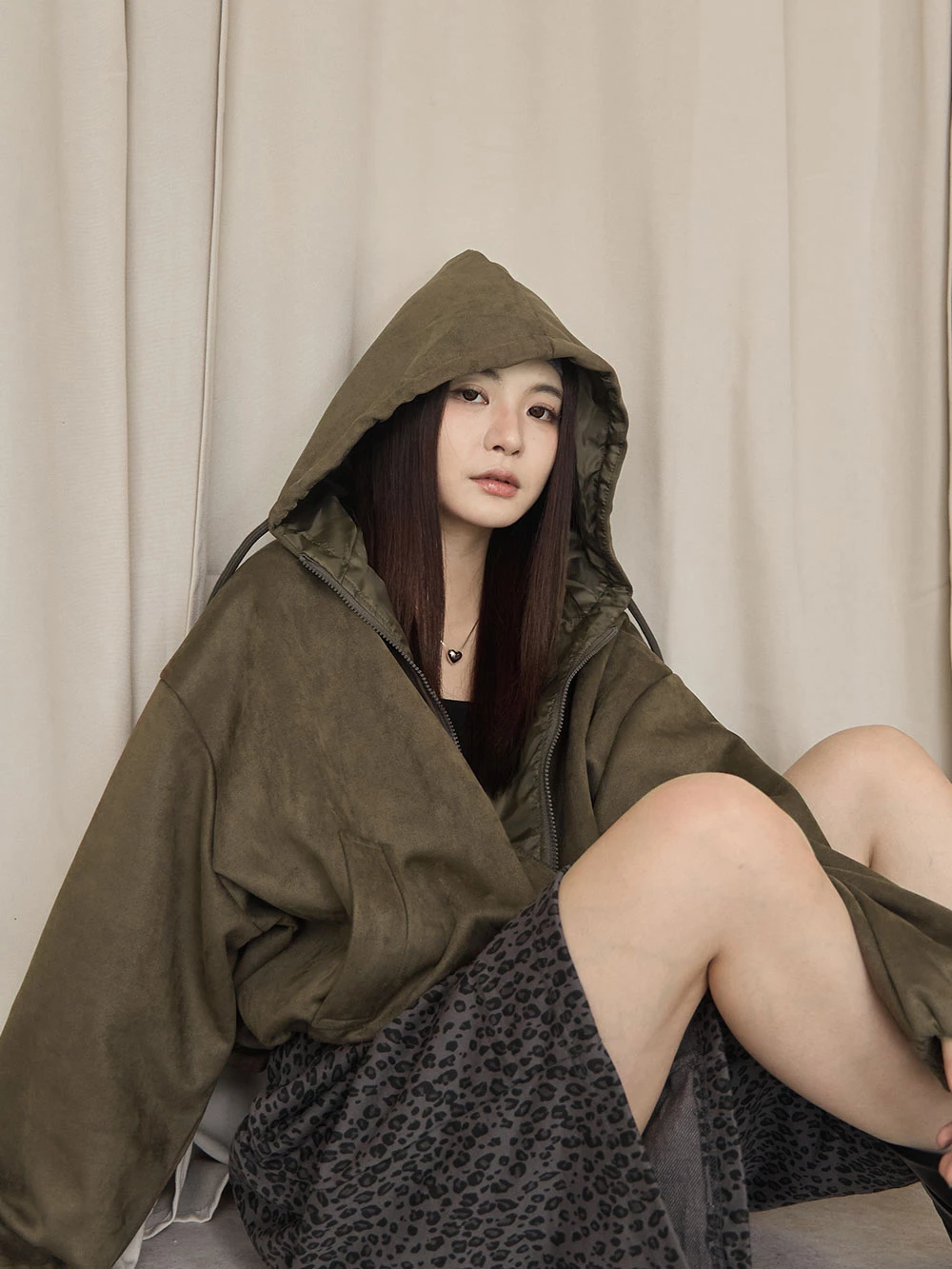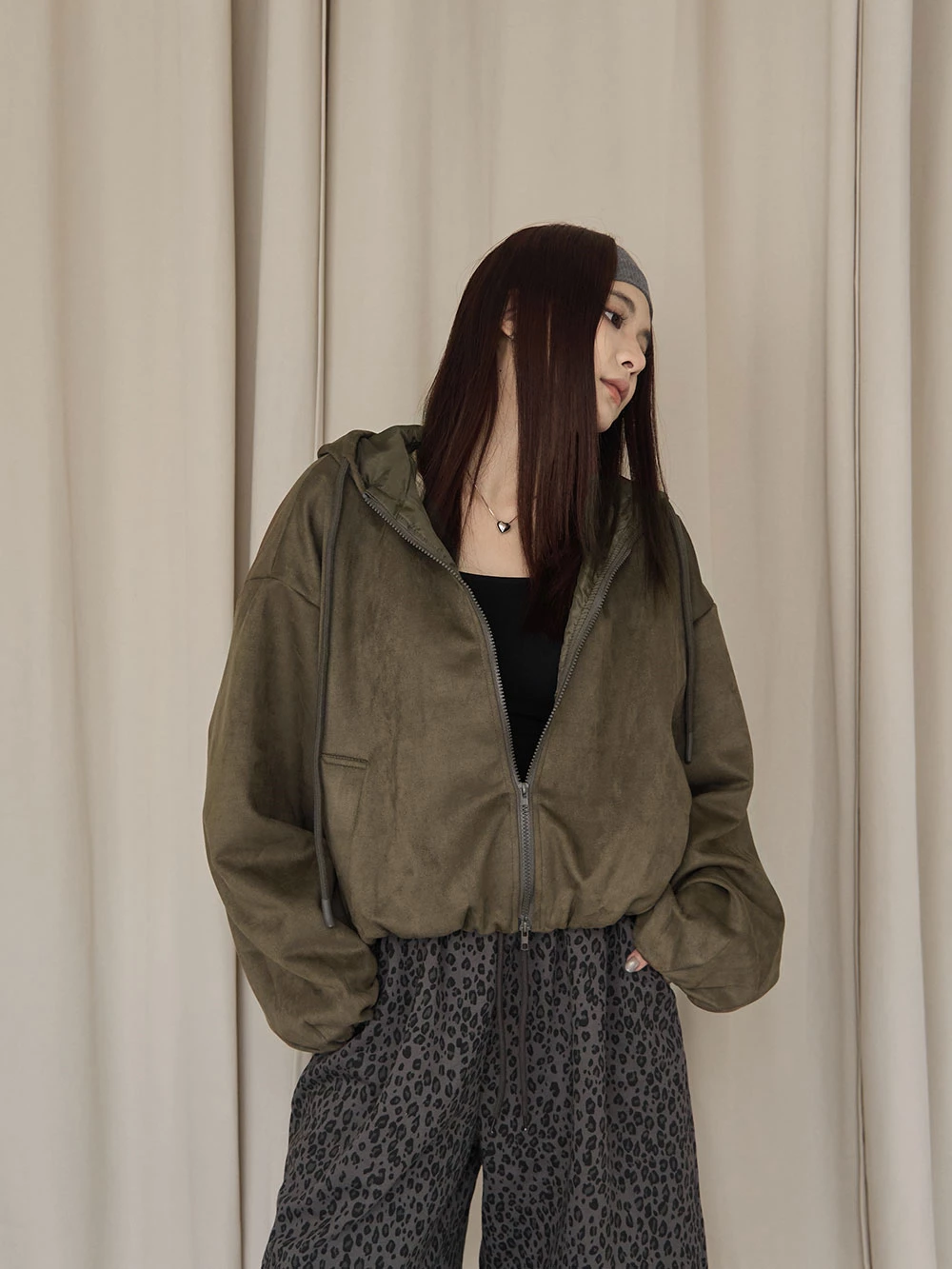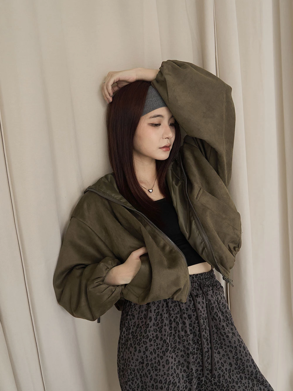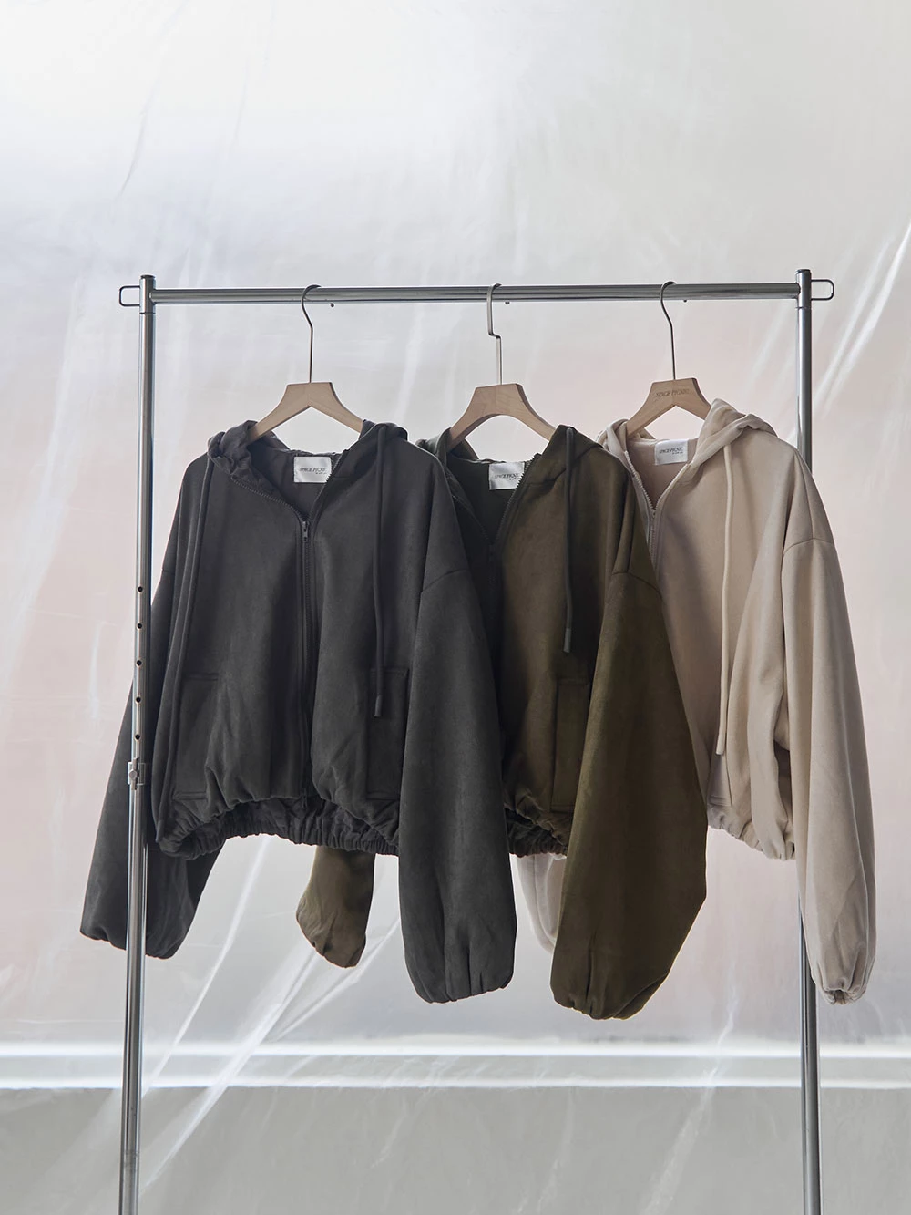麂皮絨短版雙拉鍊連帽外套 | Space Picnic