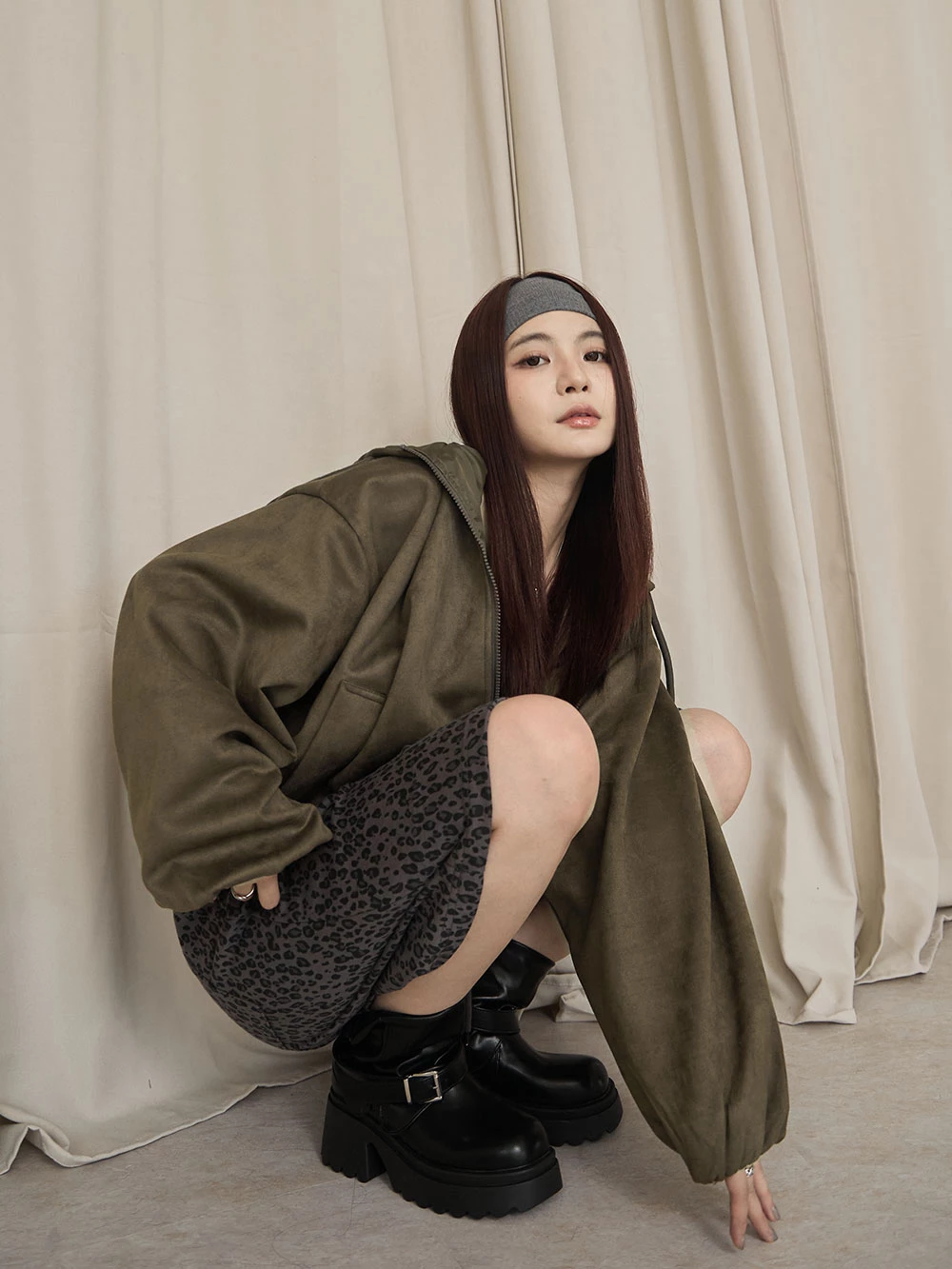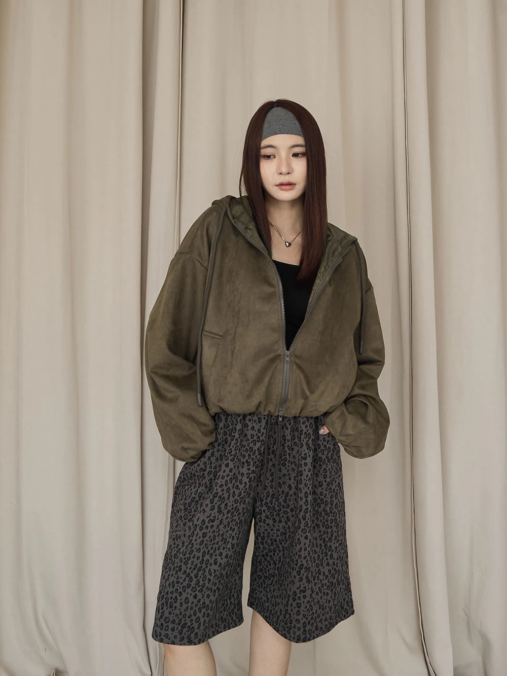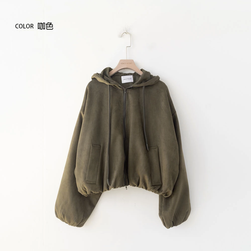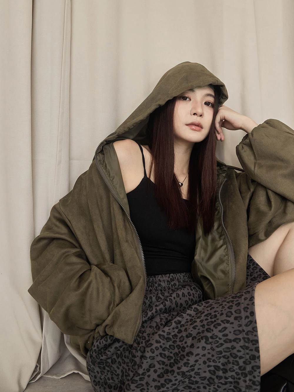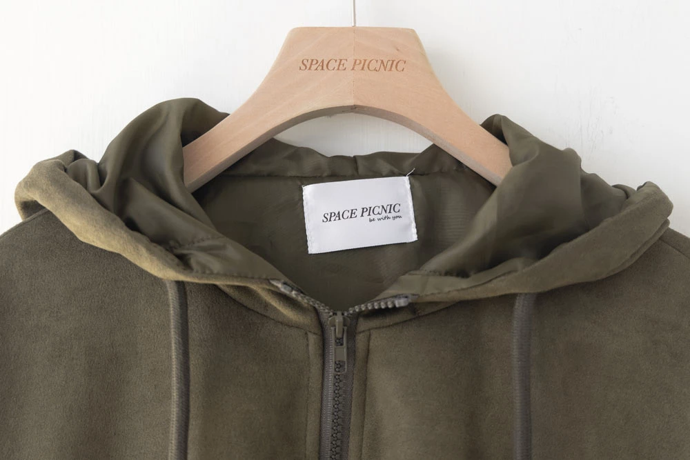 麂皮絨短版雙拉鍊連帽外套 | Space Picnic