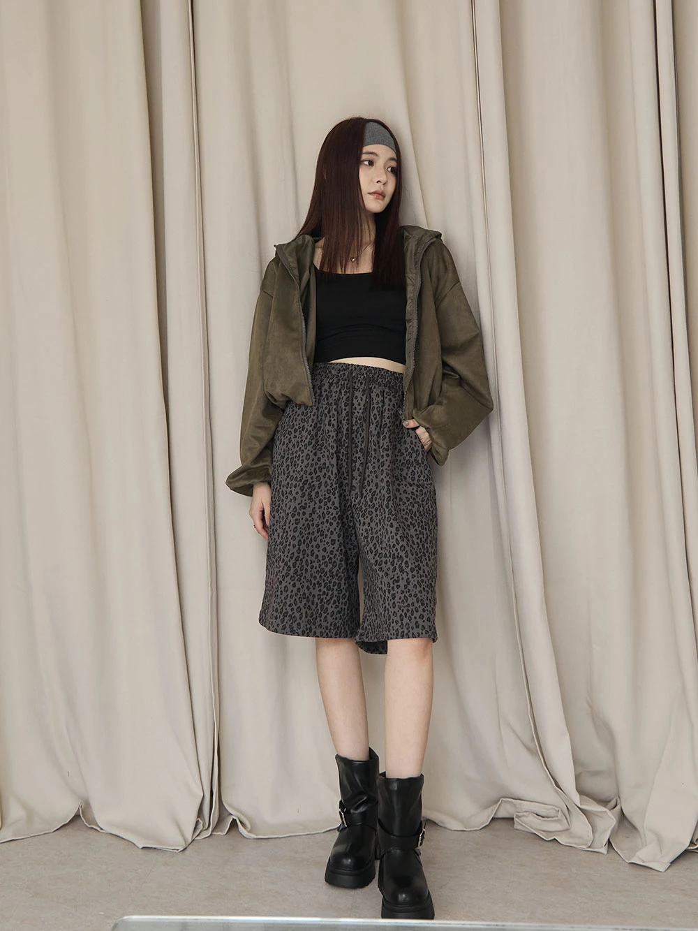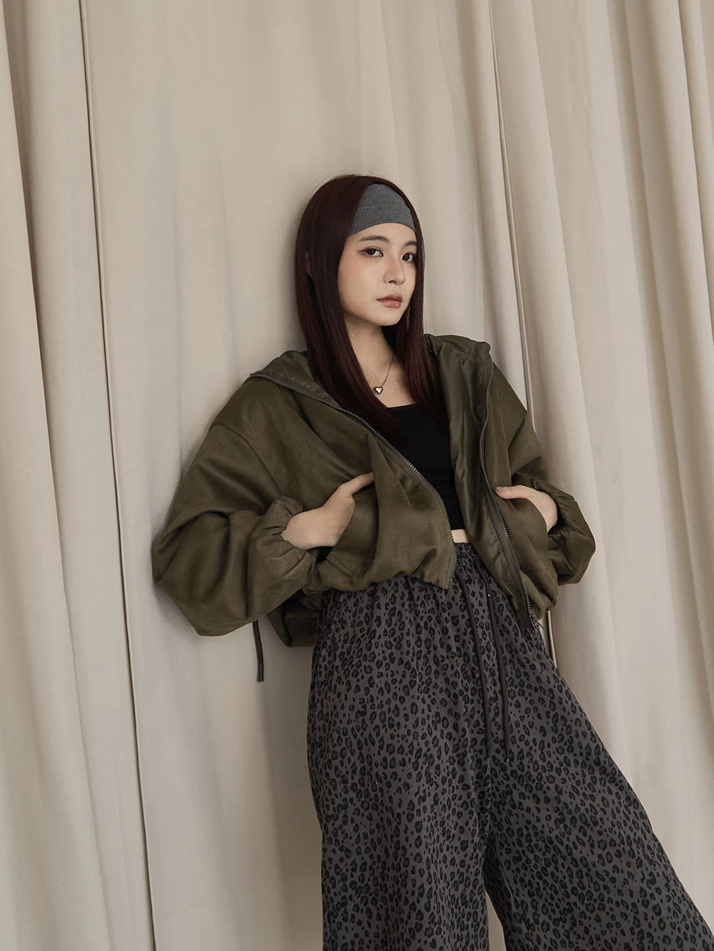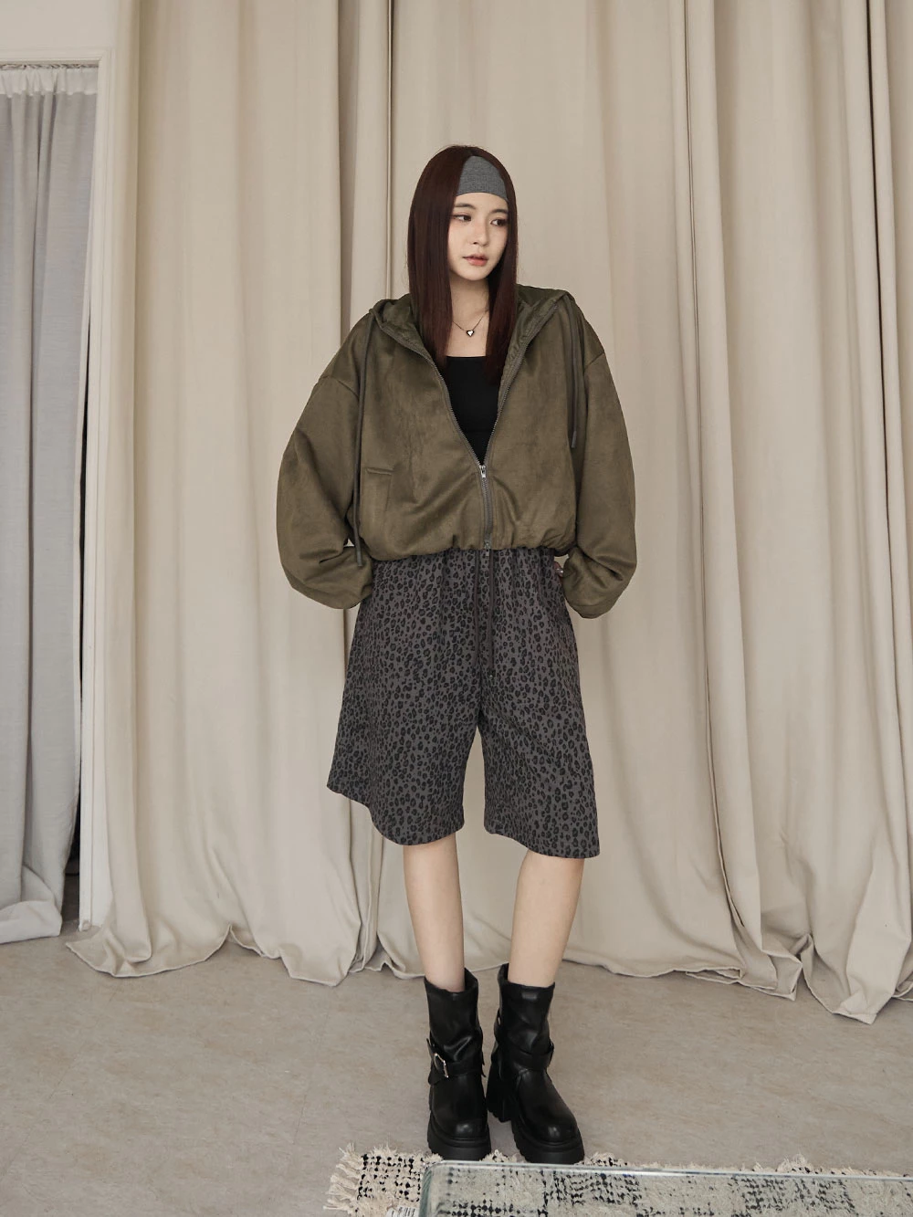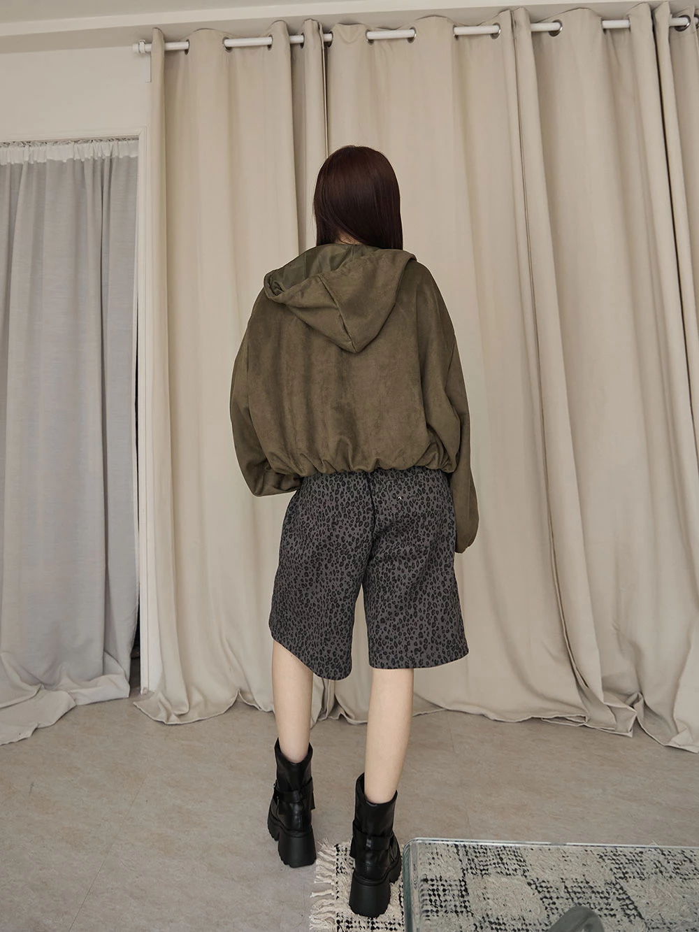 麂皮絨短版雙拉鍊連帽外套 | Space Picnic