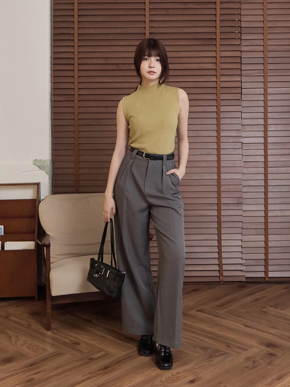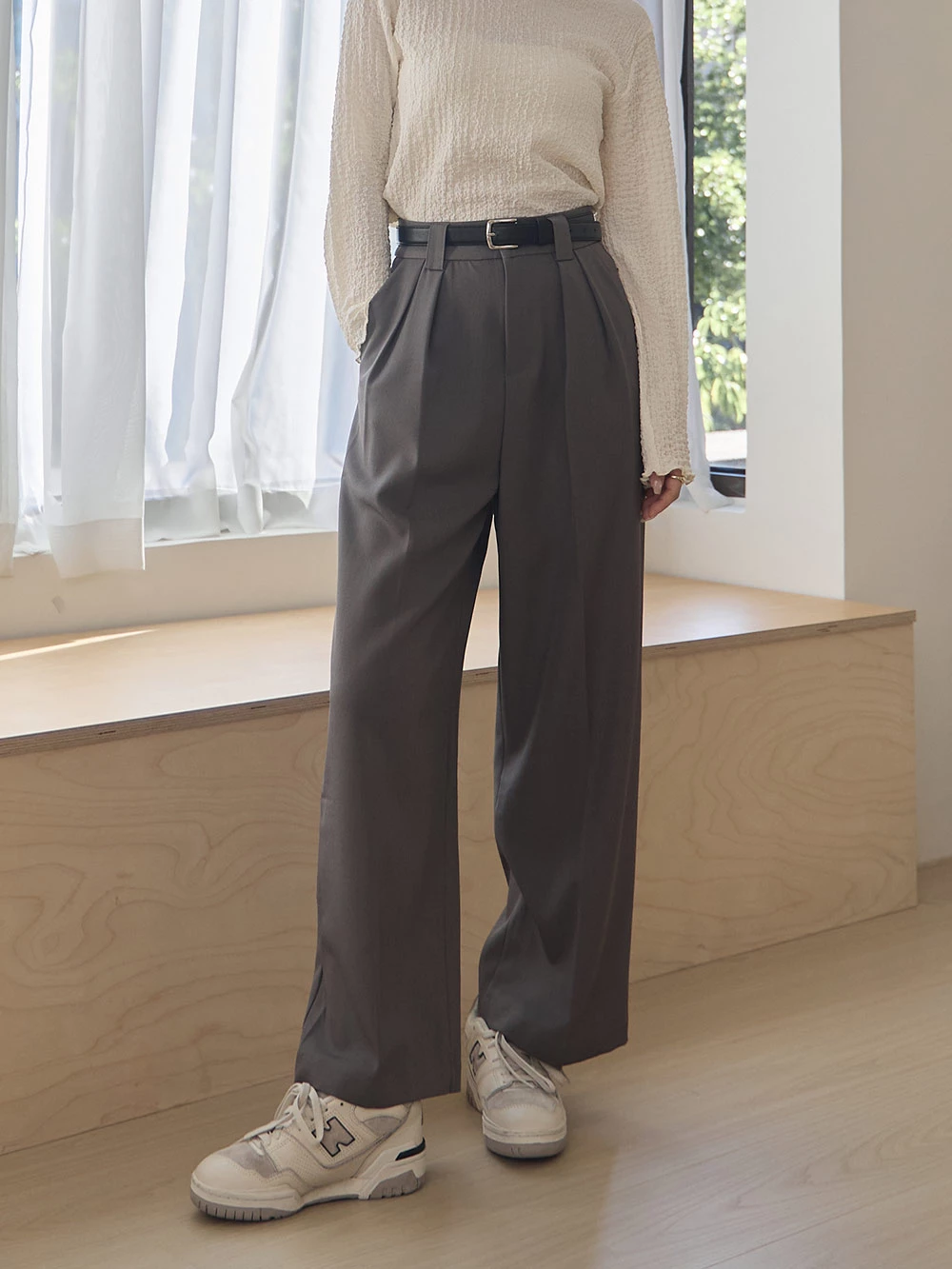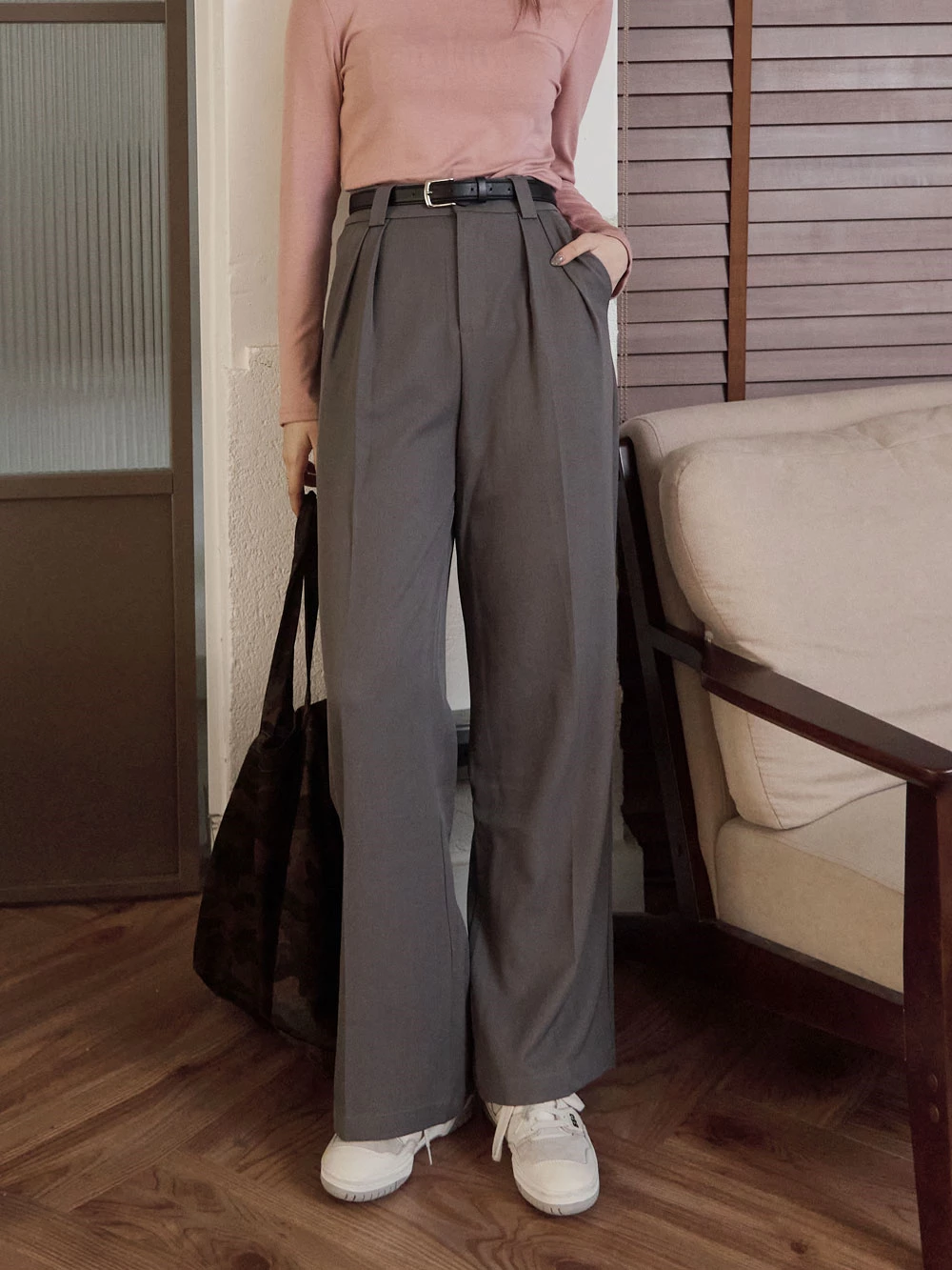 SPmade-滑感壓摺西裝褲-附皮帶 | Space Picnic