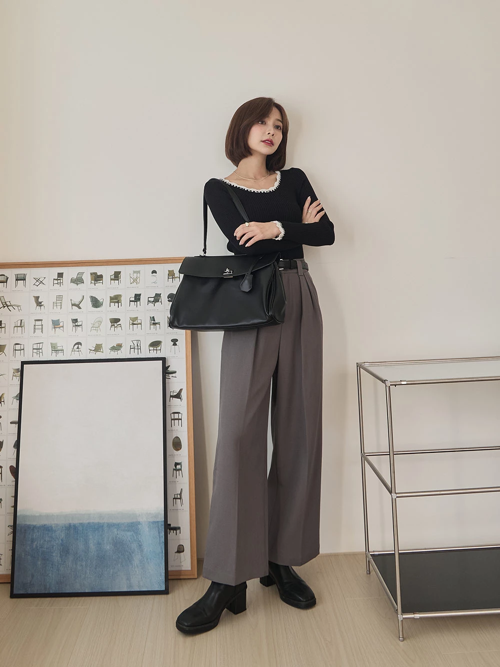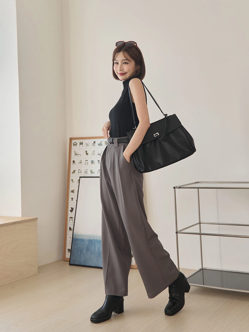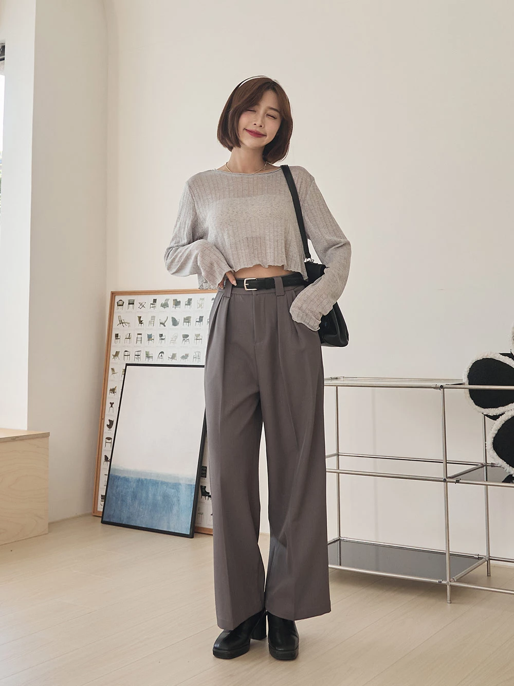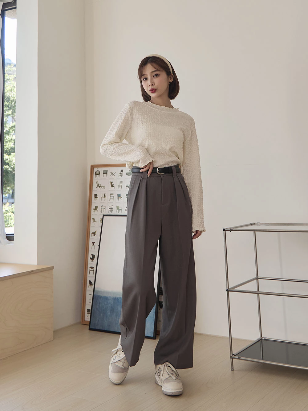 SPmade-滑感壓摺西裝褲-附皮帶 | Space Picnic