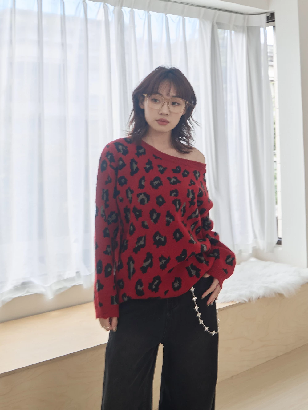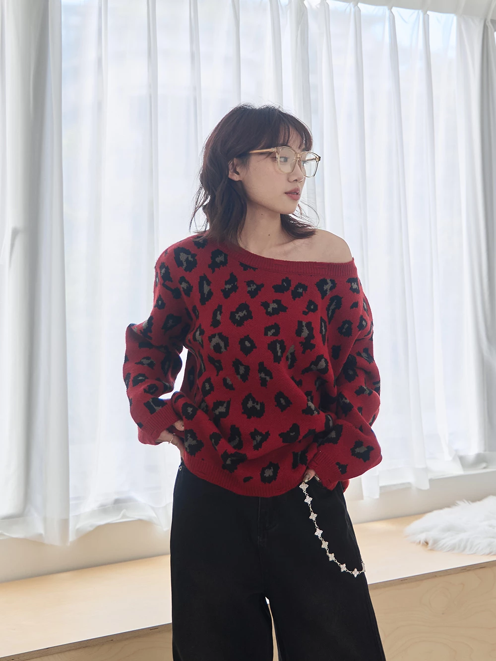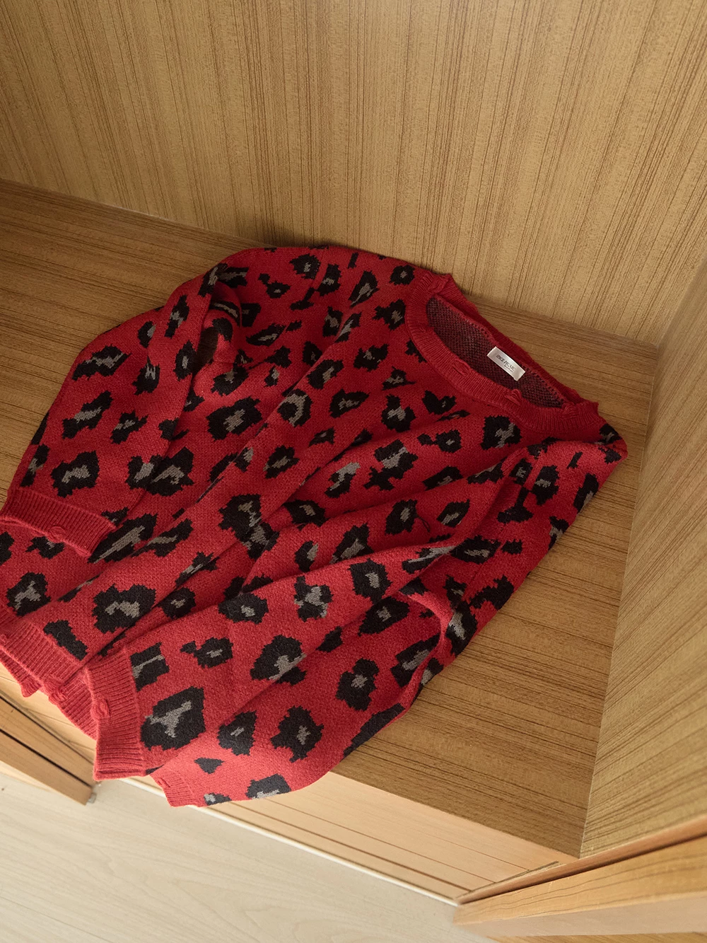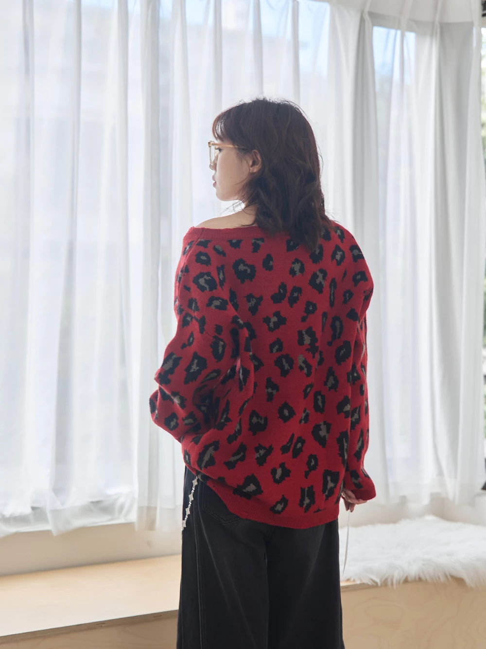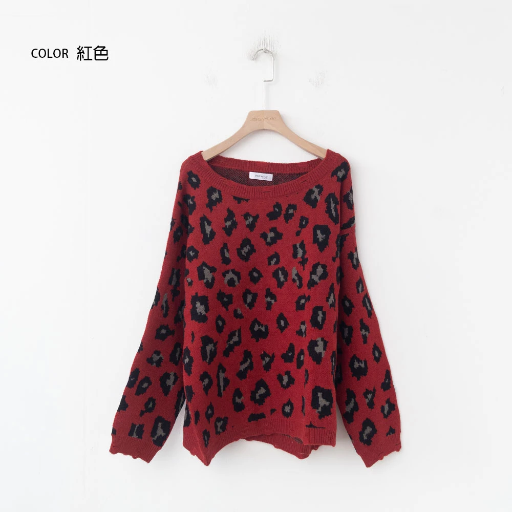 寬領豹紋針織上衣