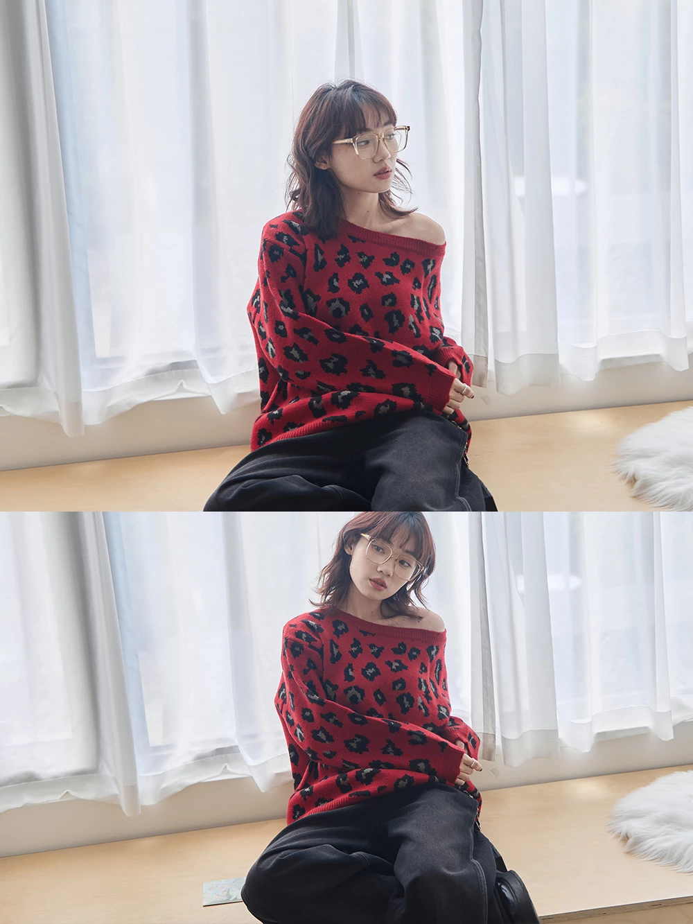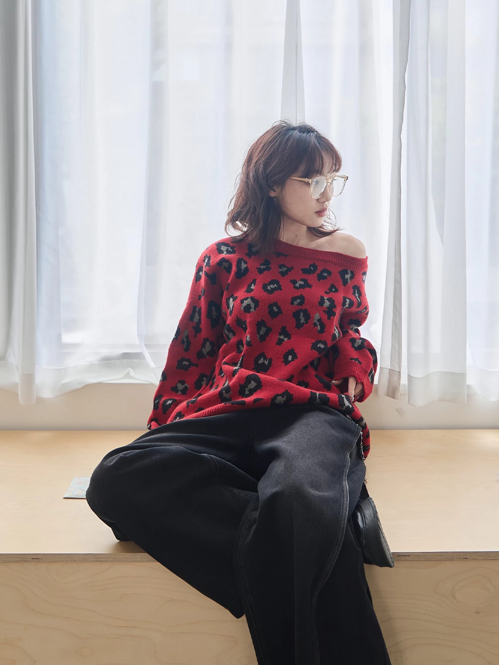 寬領豹紋針織上衣 | Space Picnic