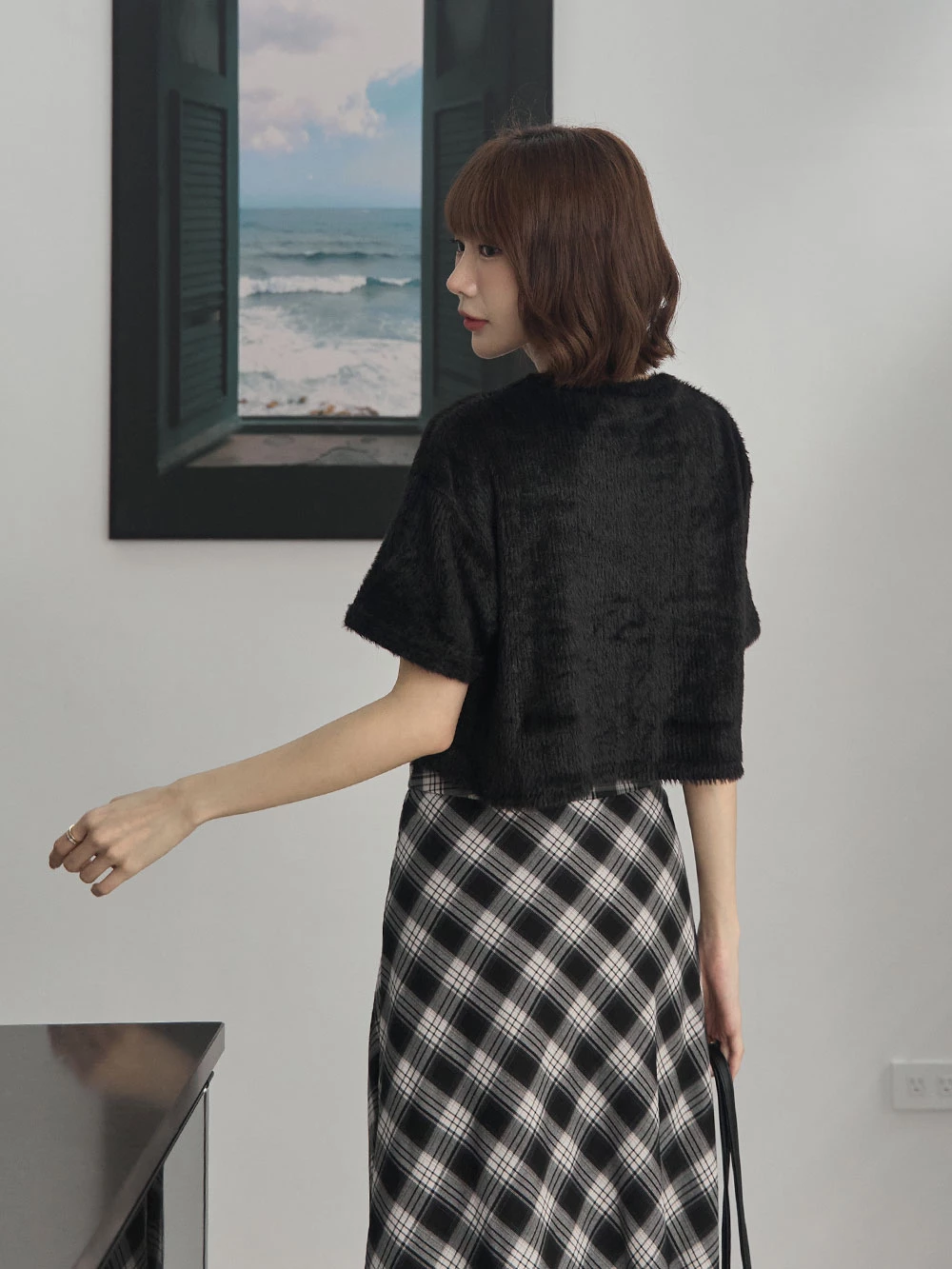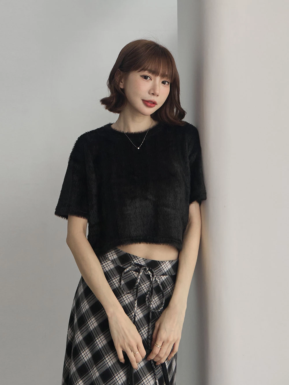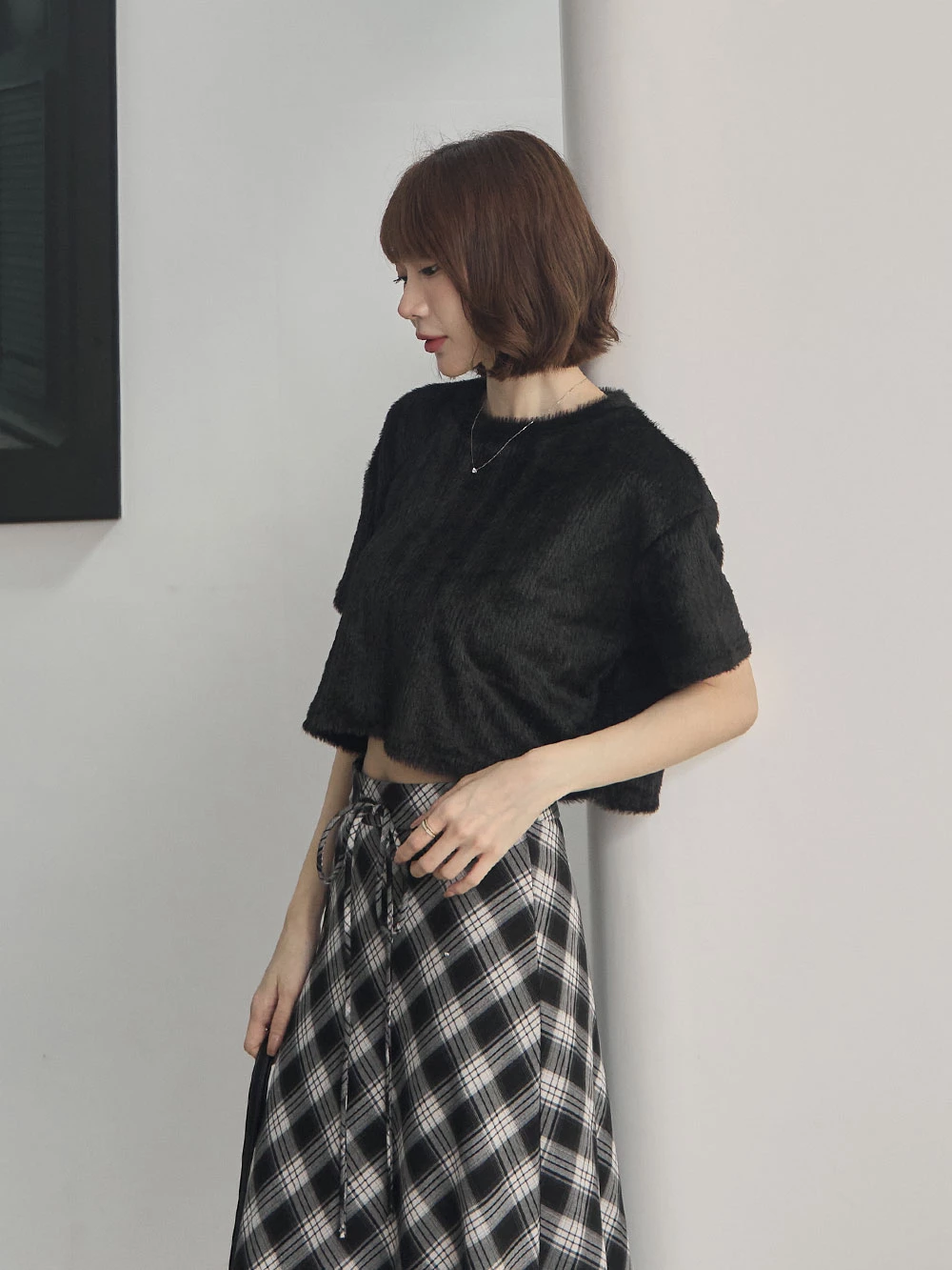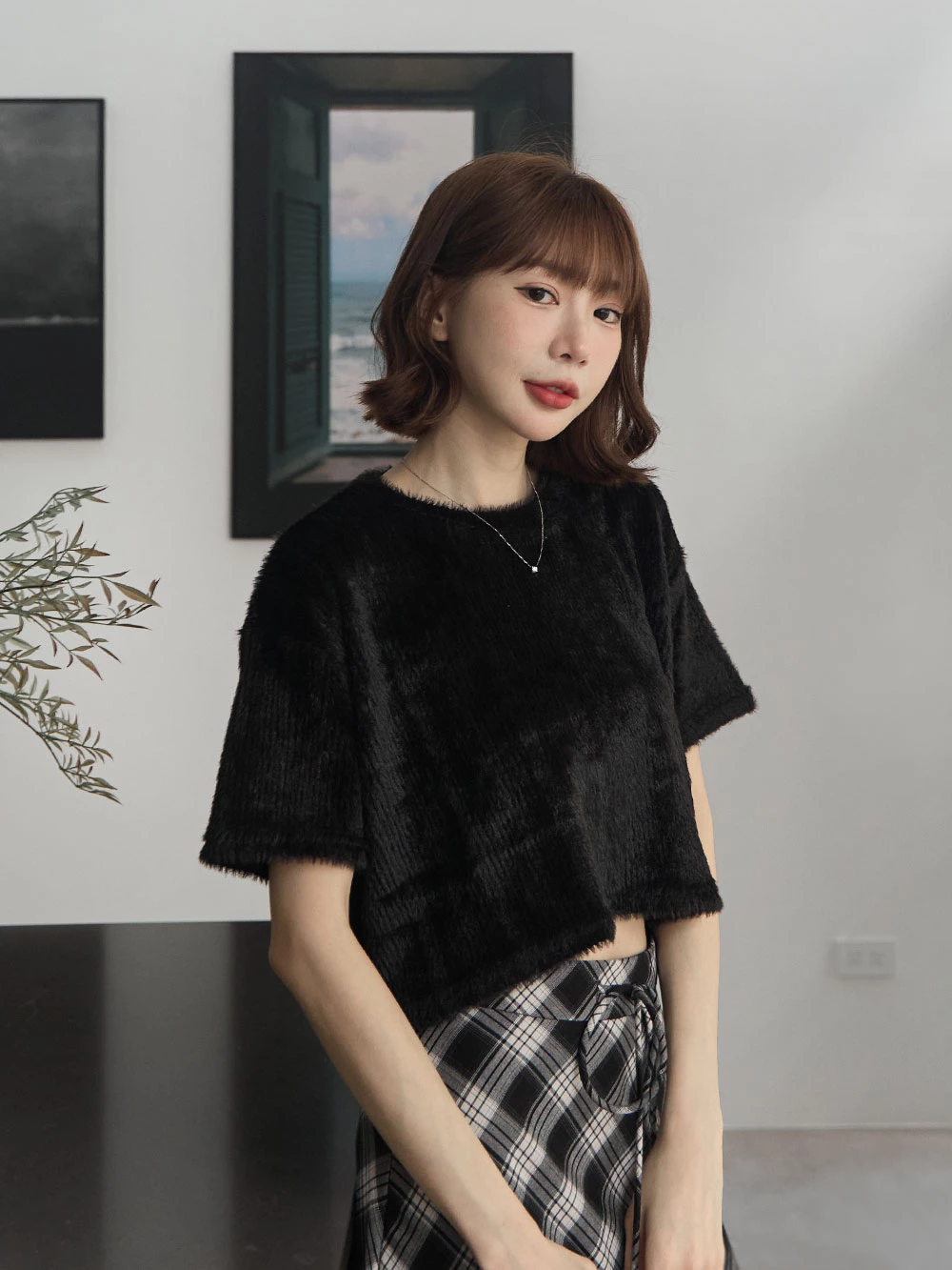 微光澤水貂毛短版上衣