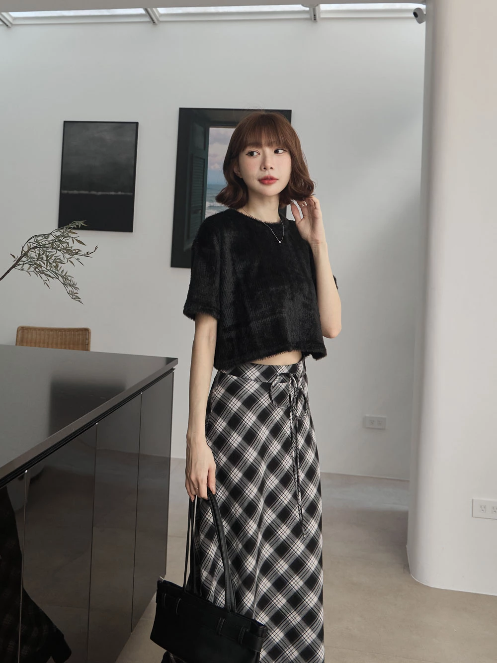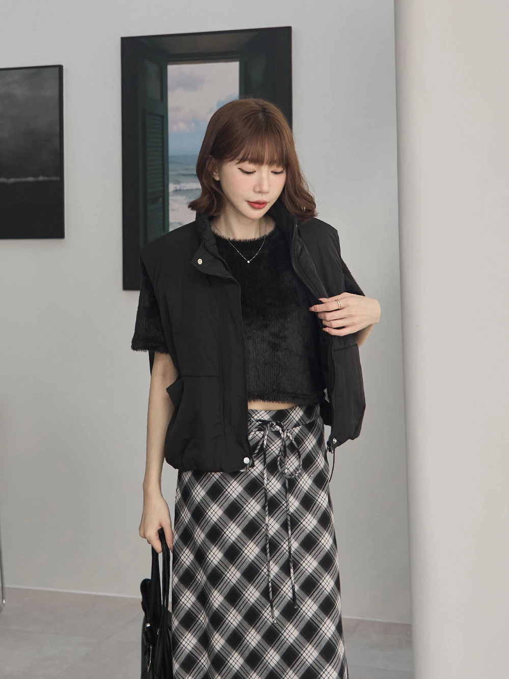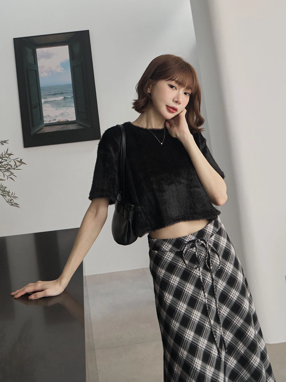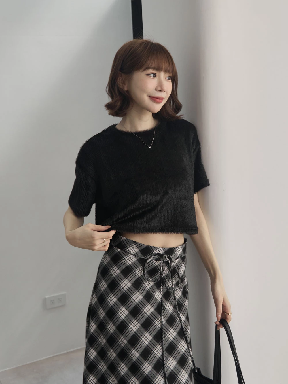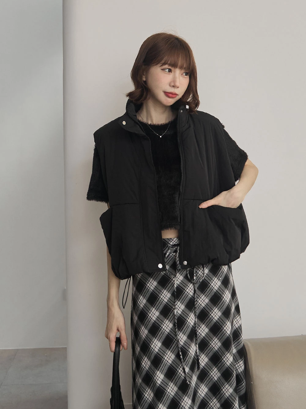 微光澤水貂毛短版上衣