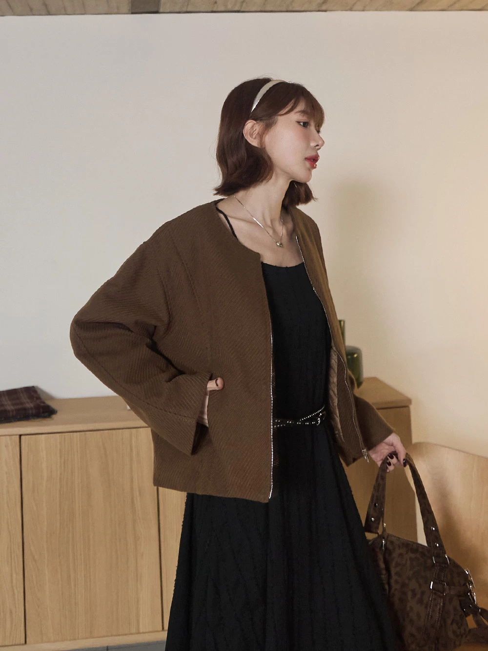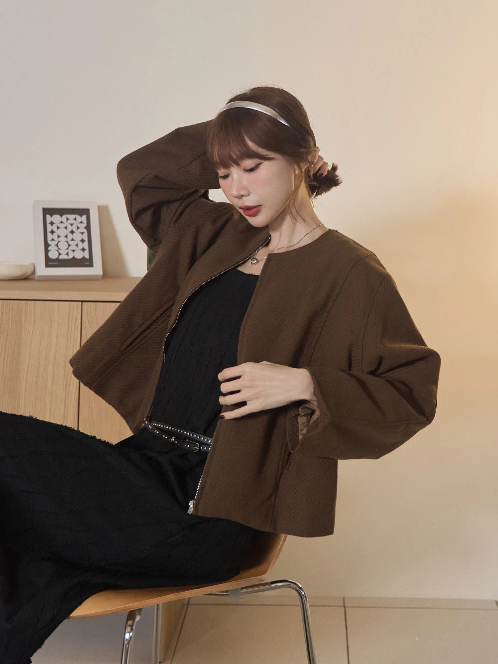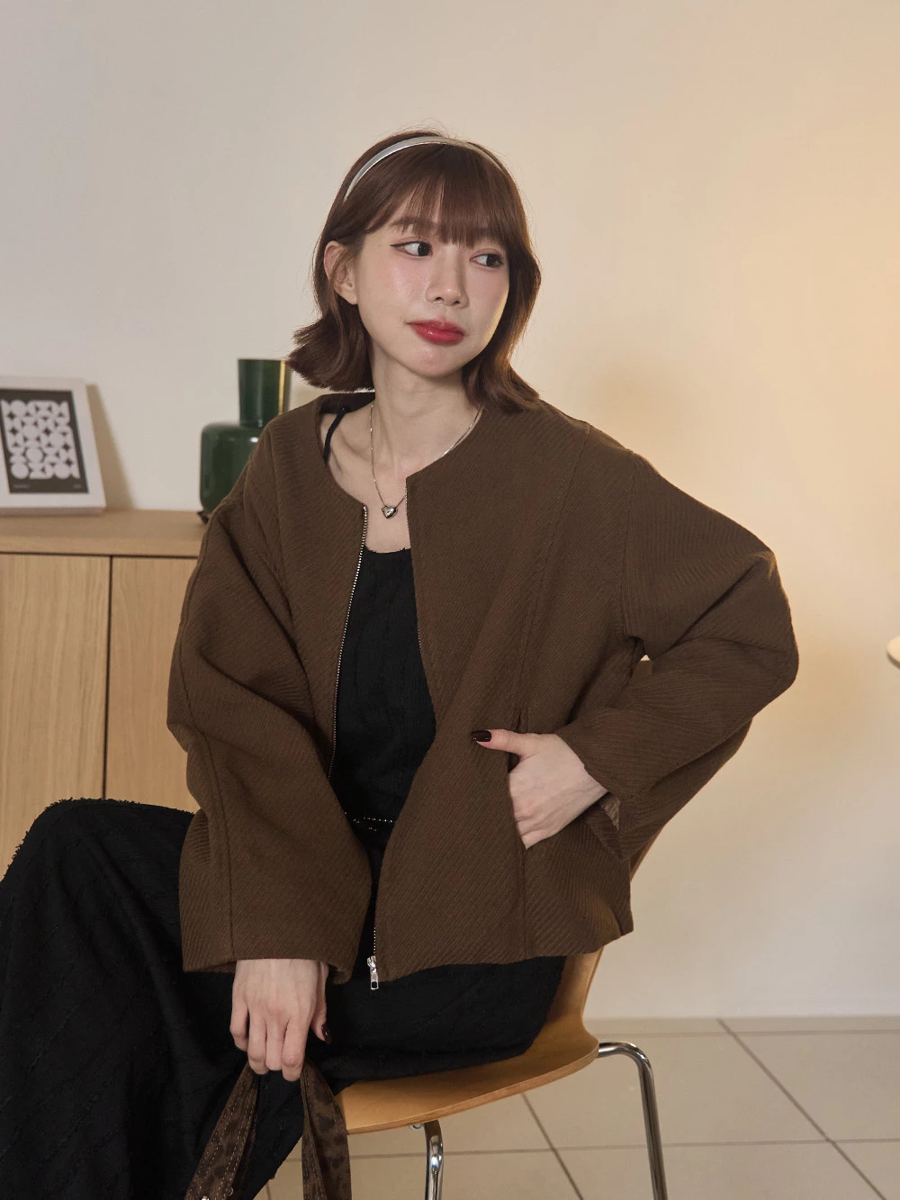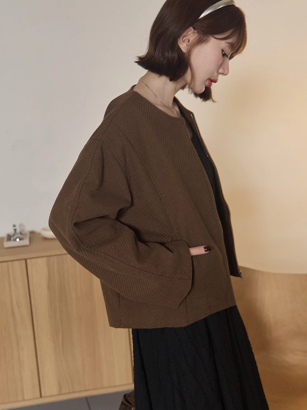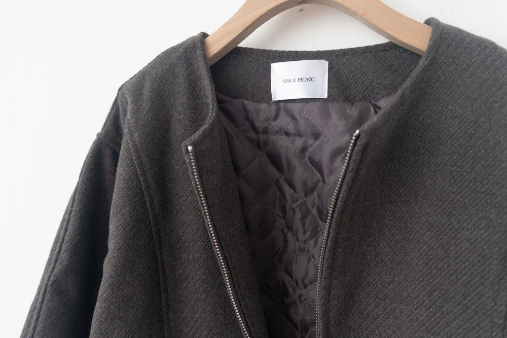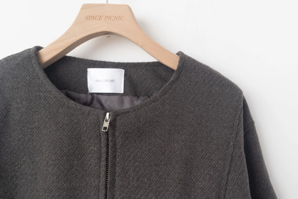 坑條無領拉鍊外套 | Space Picnic