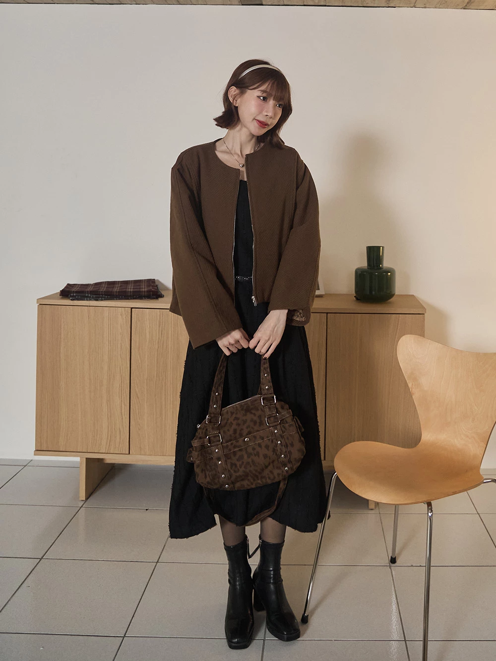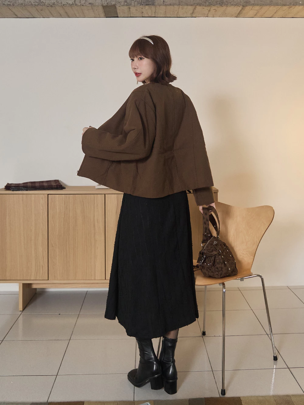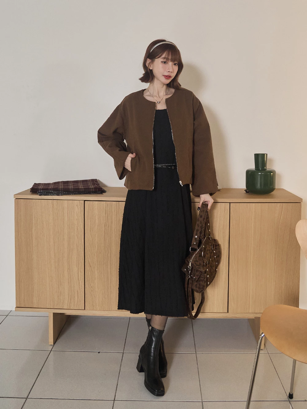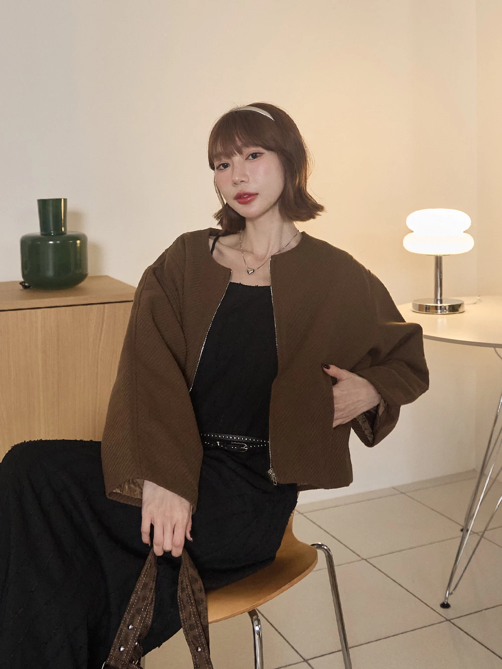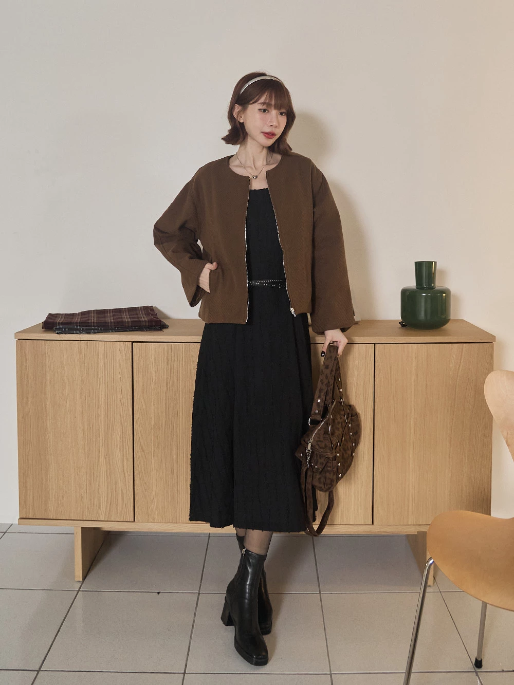 坑條無領拉鍊外套 | Space Picnic