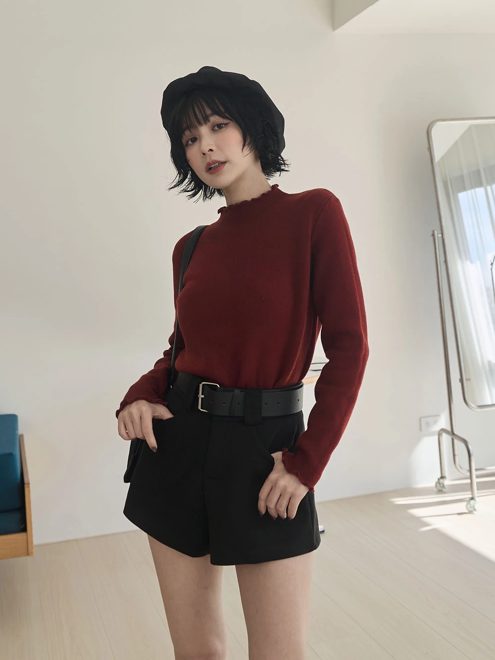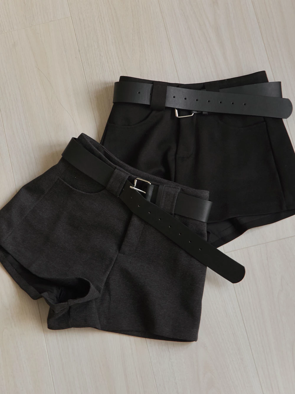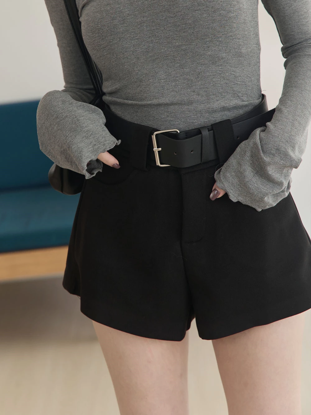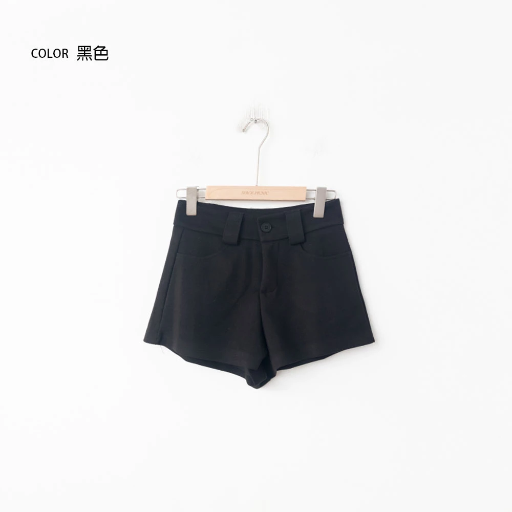 高腰毛呢短褲-附寬皮帶