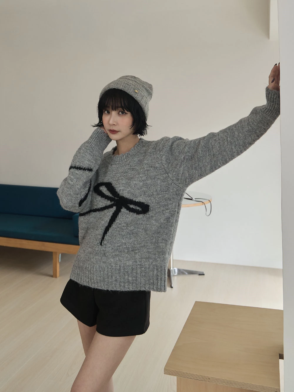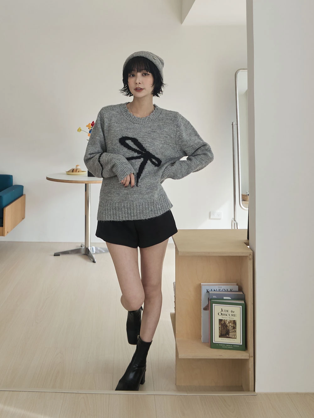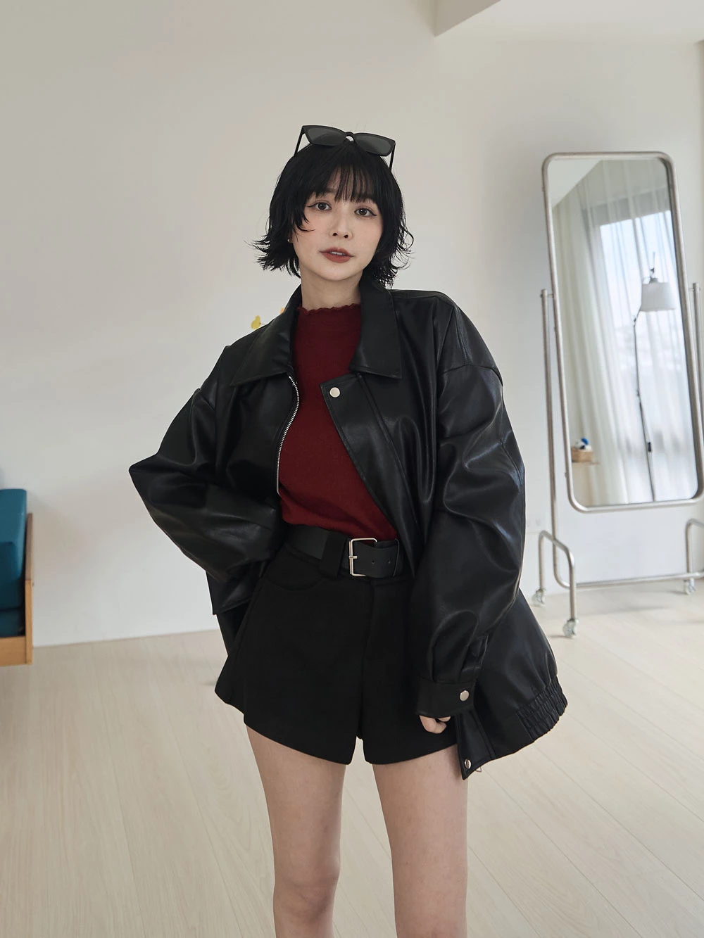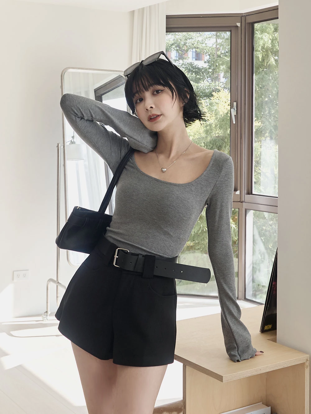高腰毛呢短褲-附寬皮帶