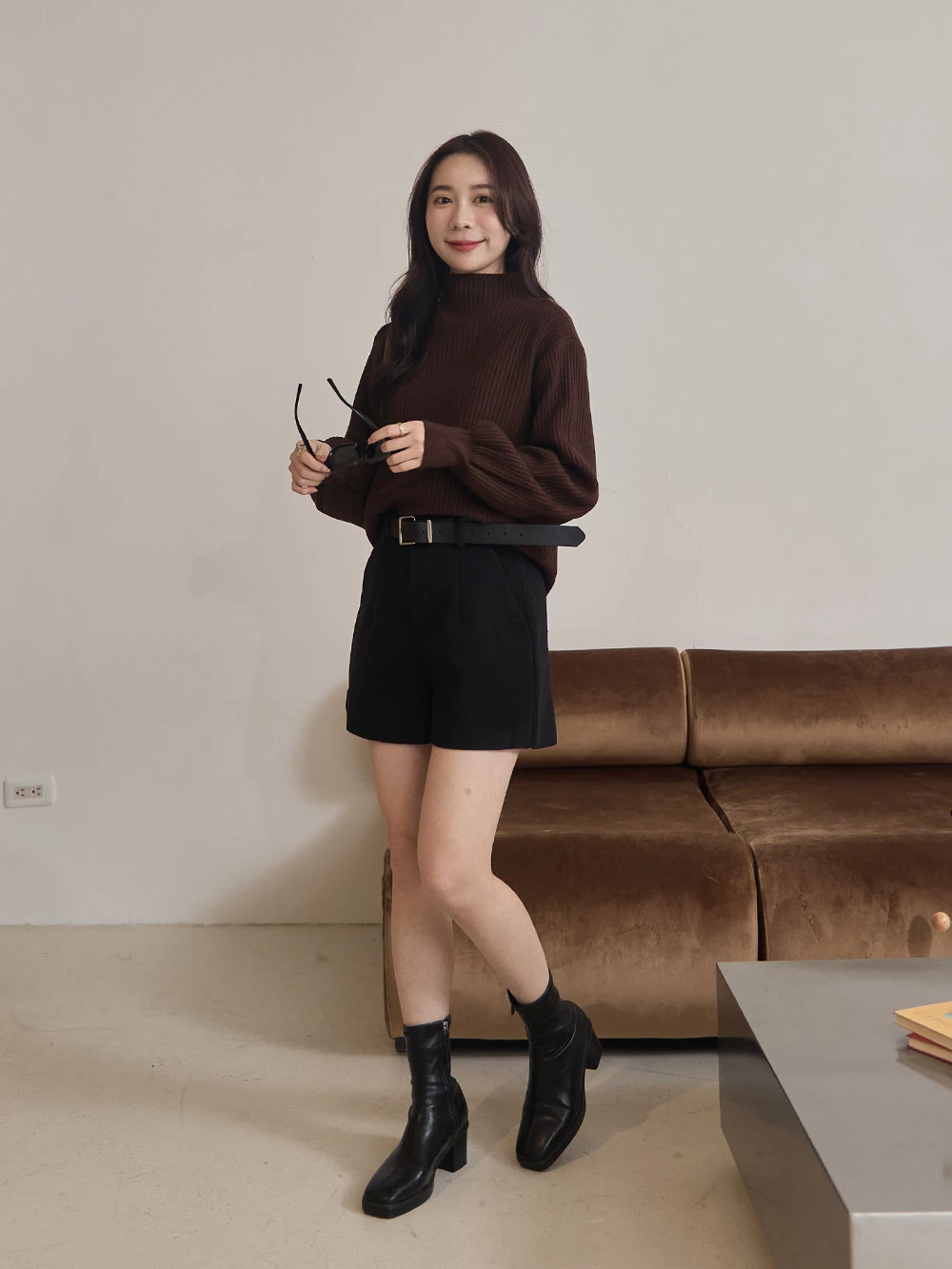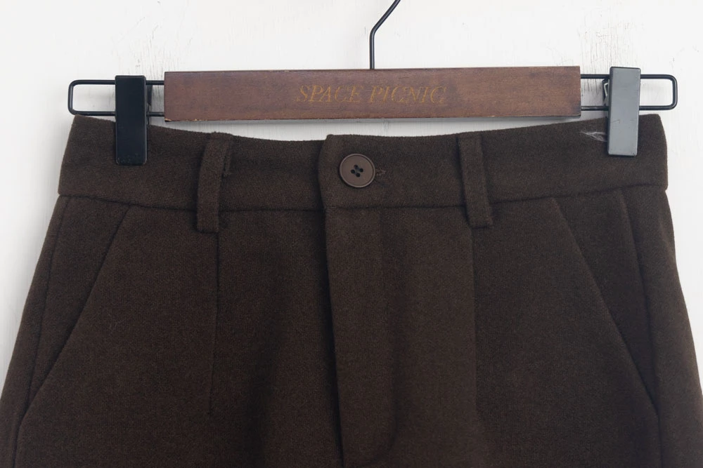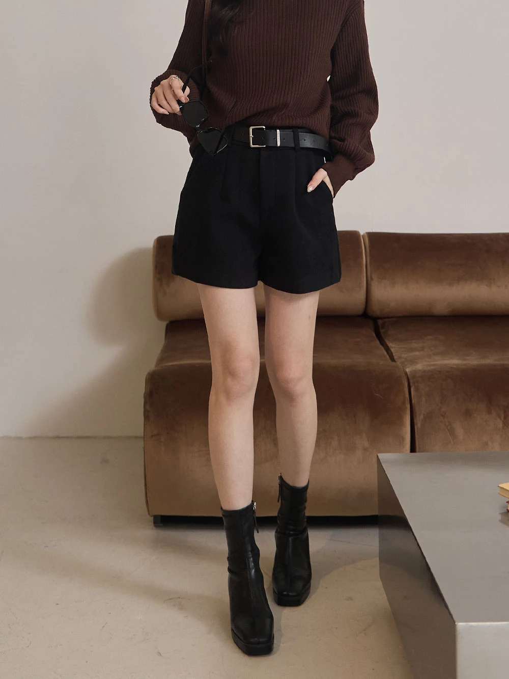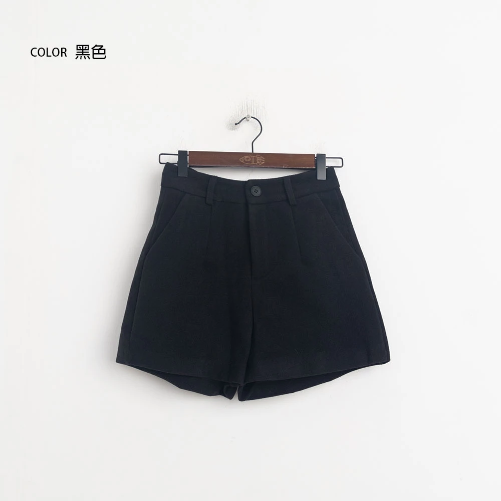 高腰毛呢短褲-附皮帶