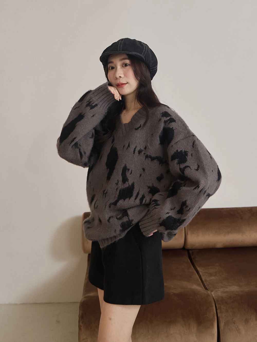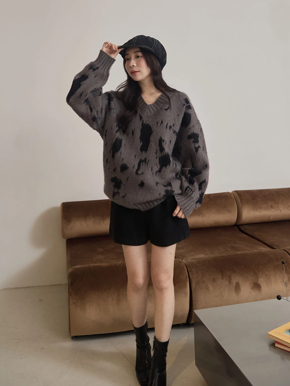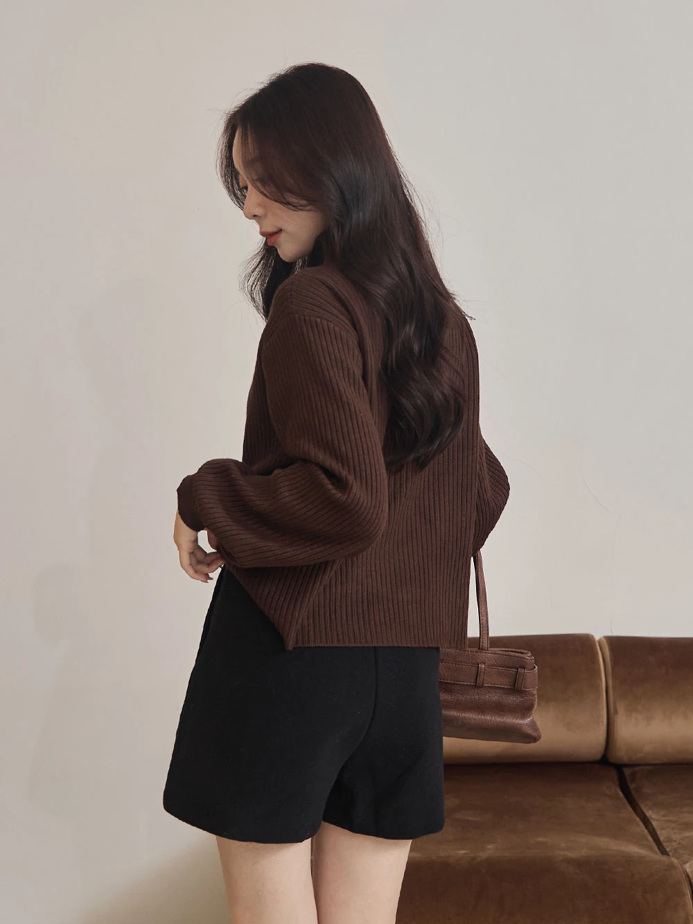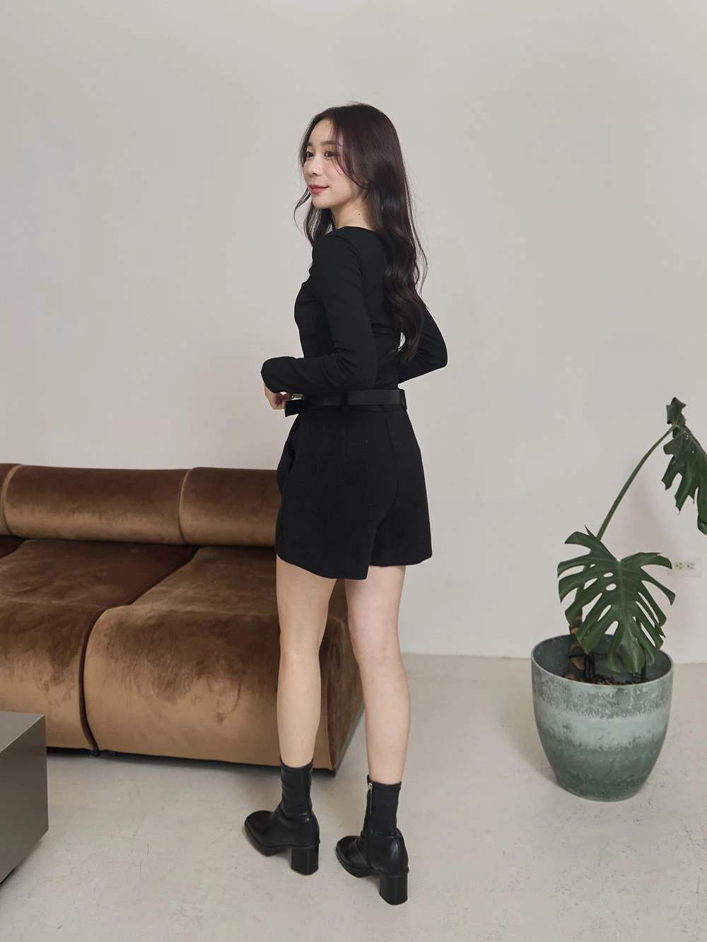 高腰毛呢短褲-附皮帶