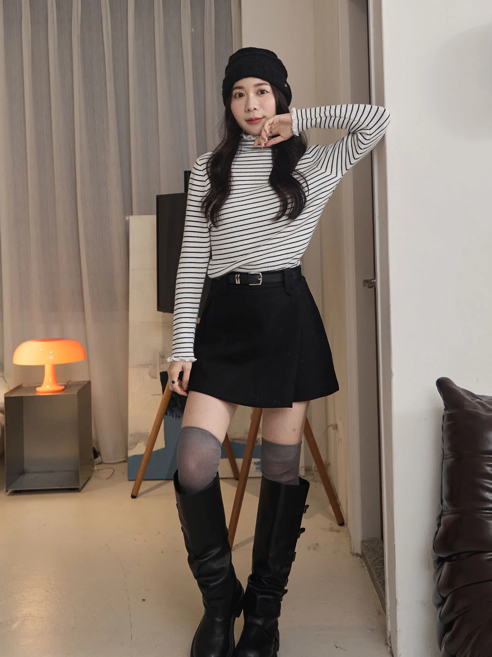 毛呢A字褲裙-附皮帶 | Space Picnic