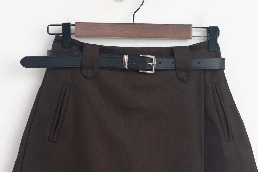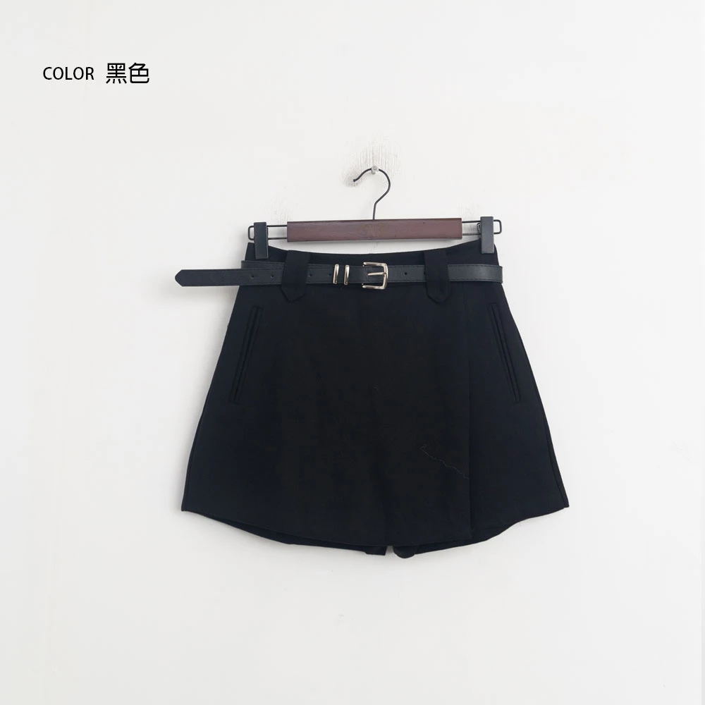 毛呢A字褲裙-附皮帶