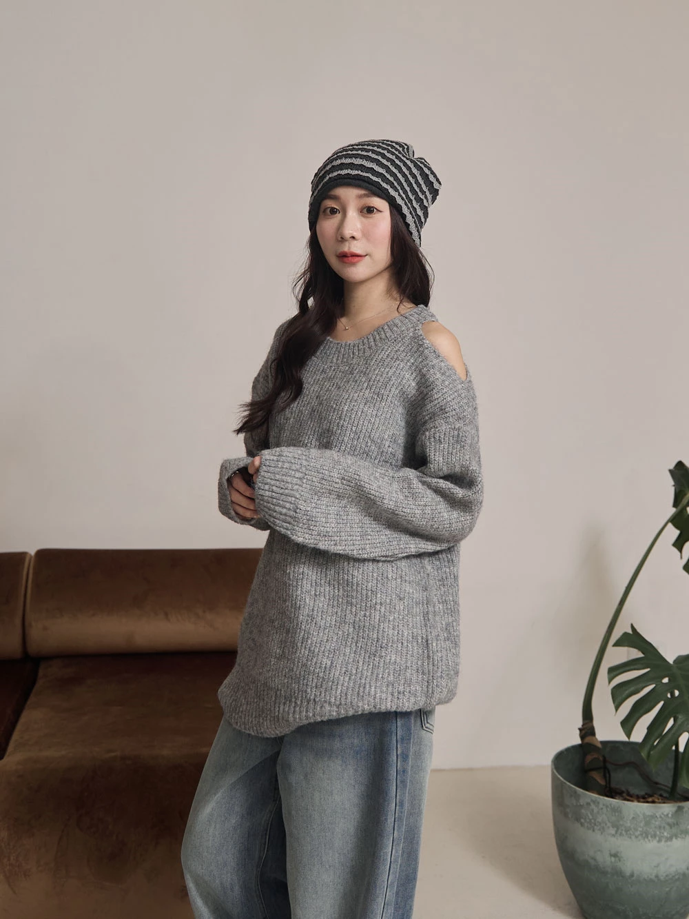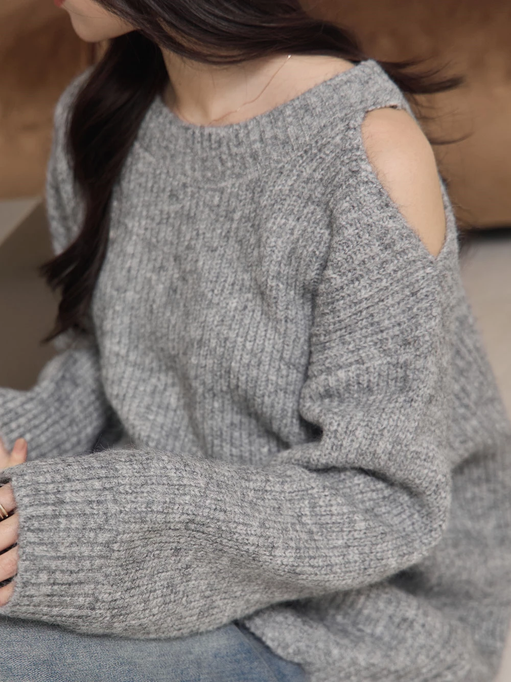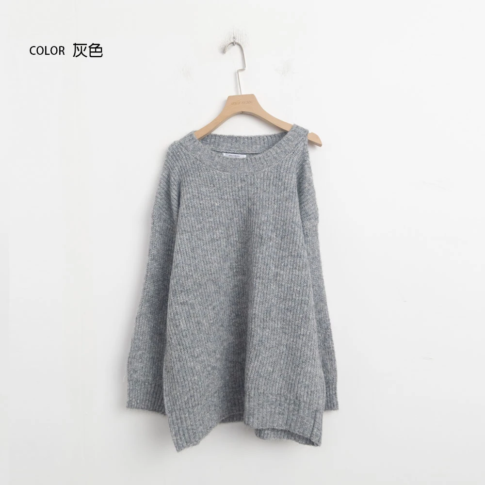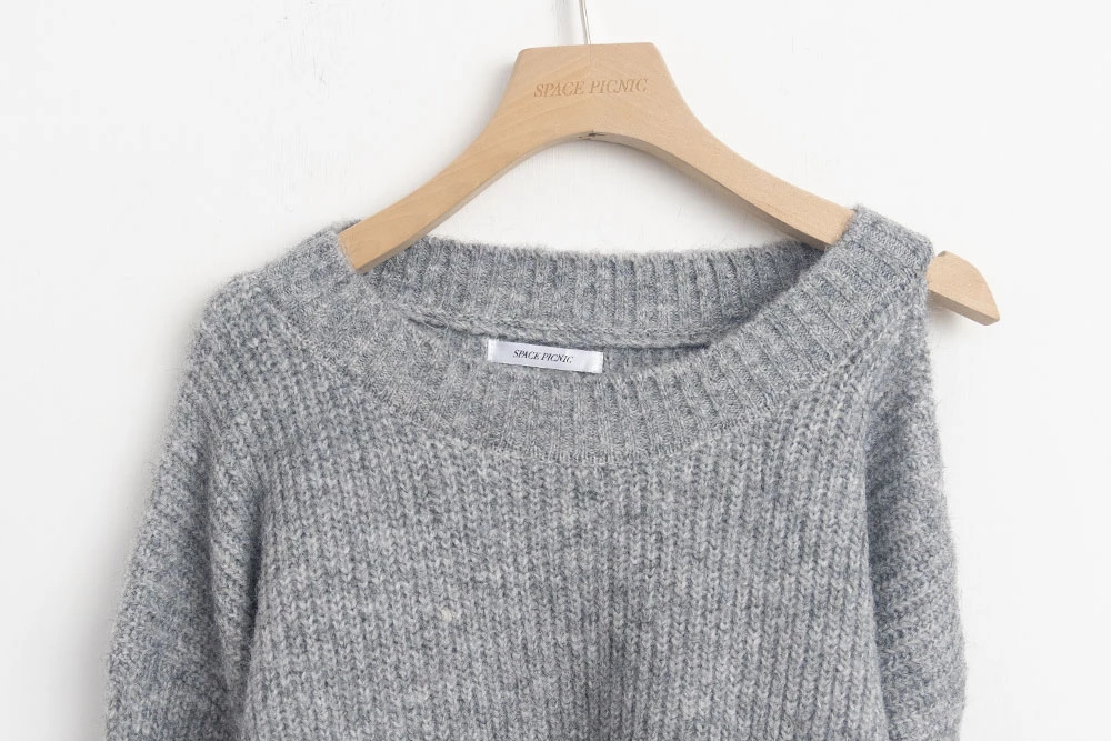 露肩圓領針織上衣
