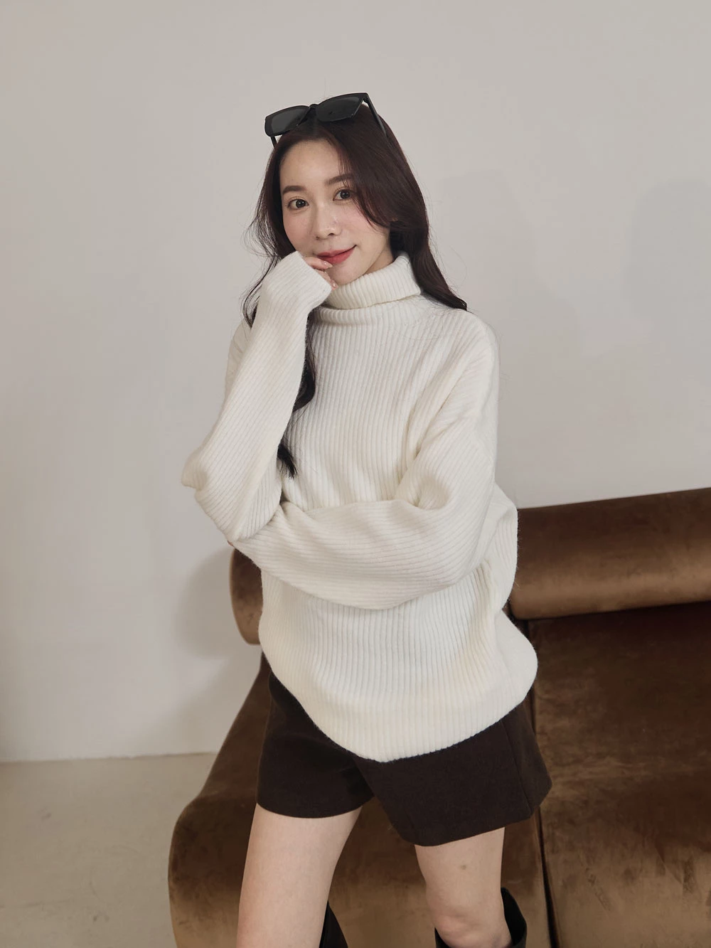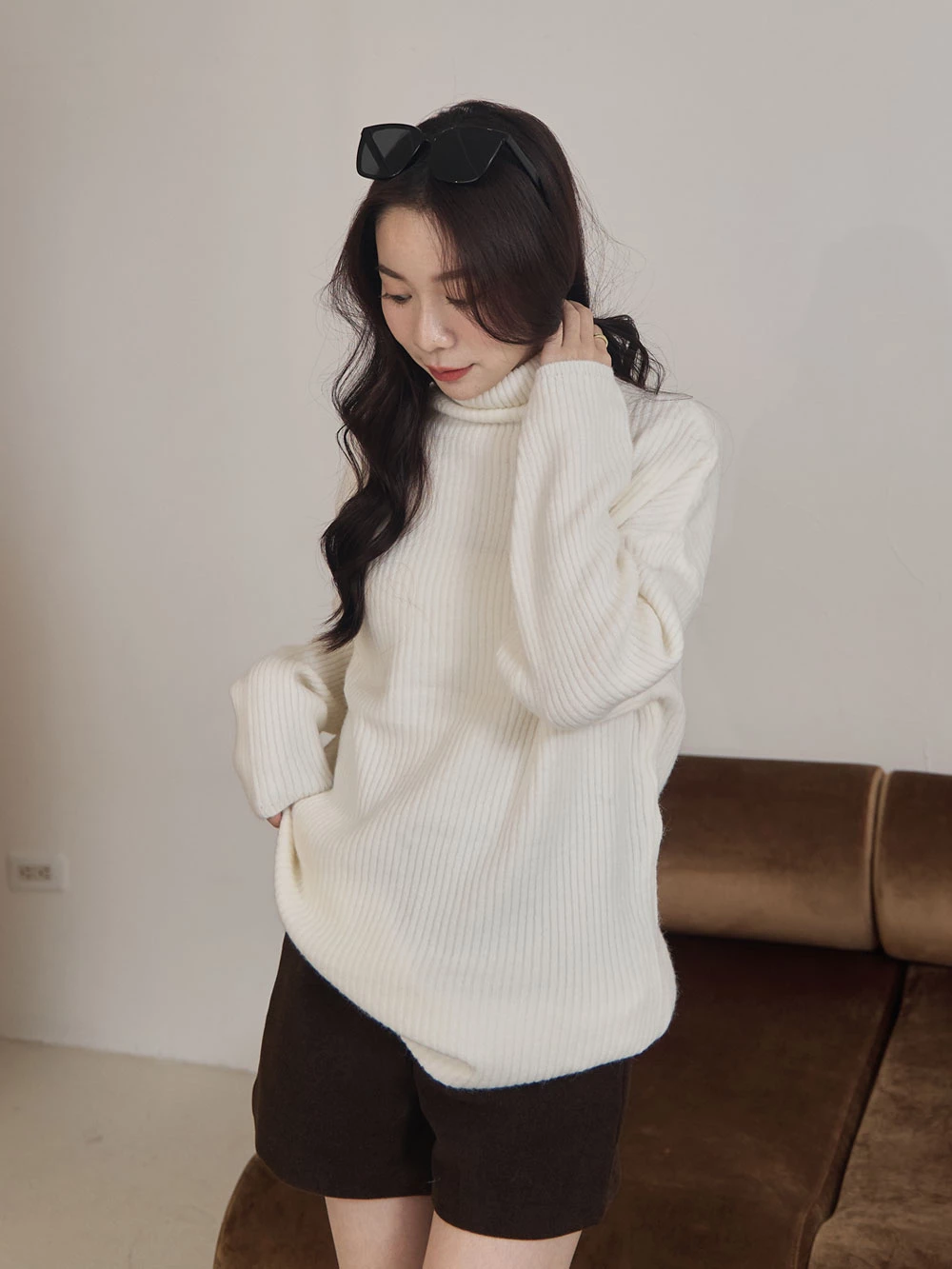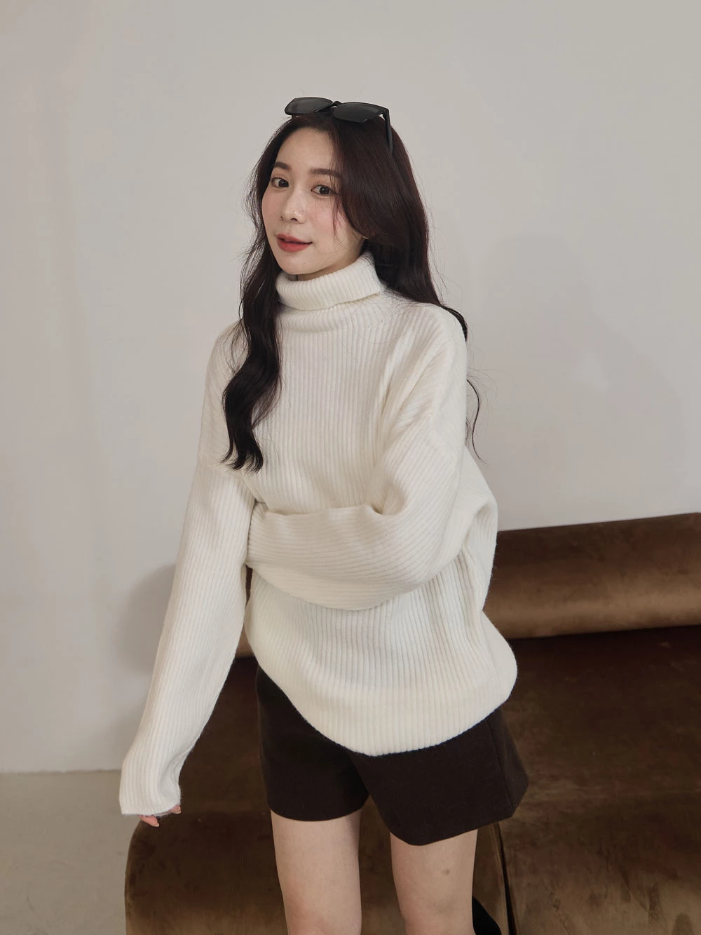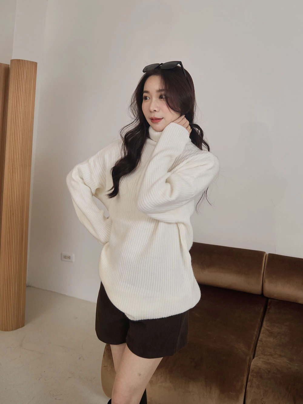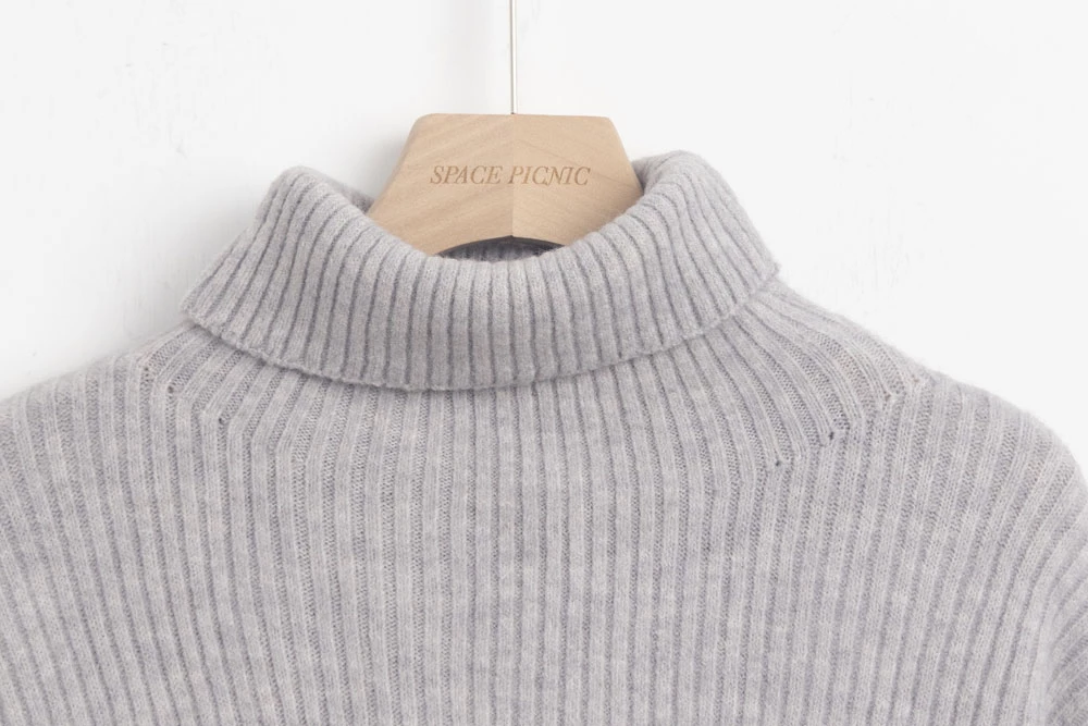 高領坑條針織上衣