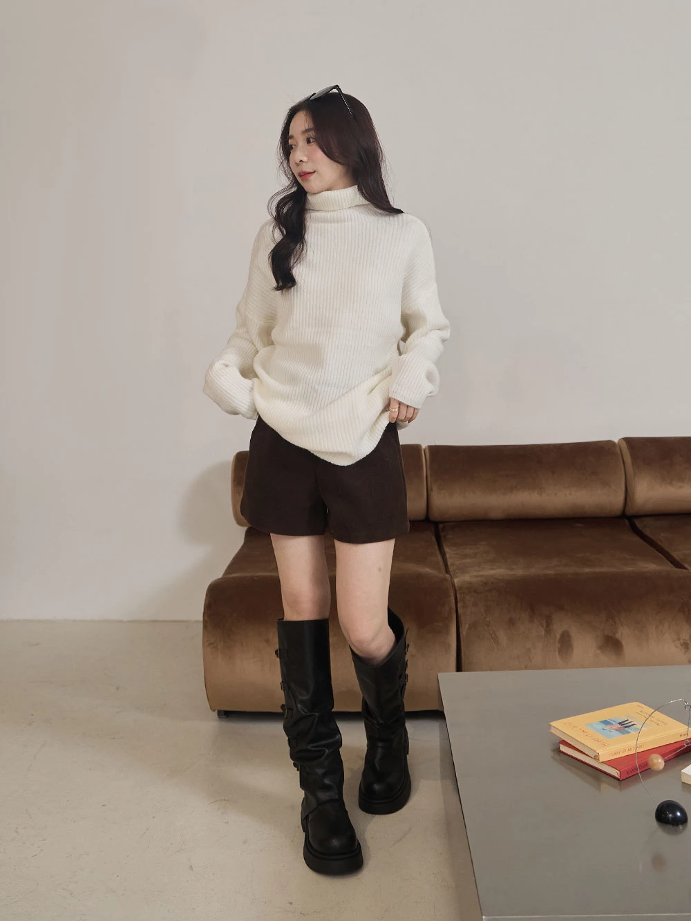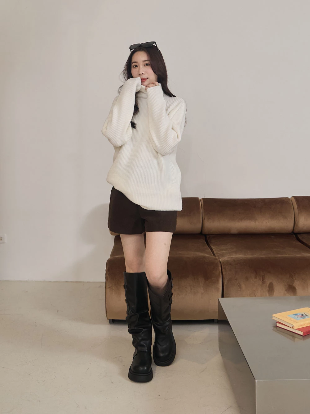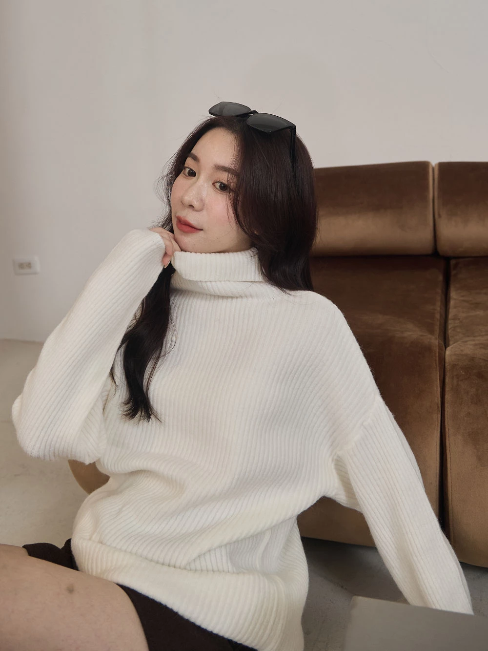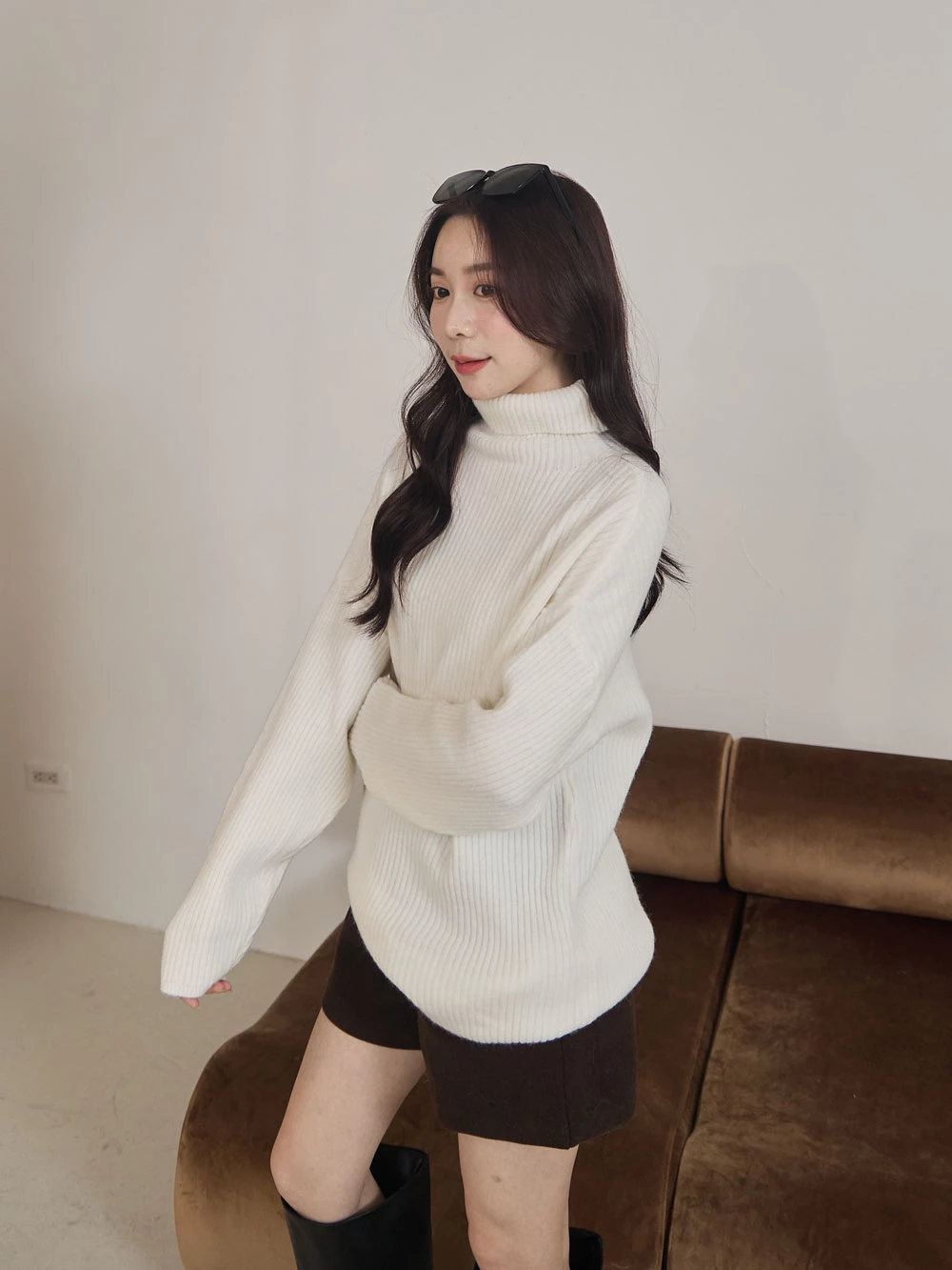 高領坑條針織上衣