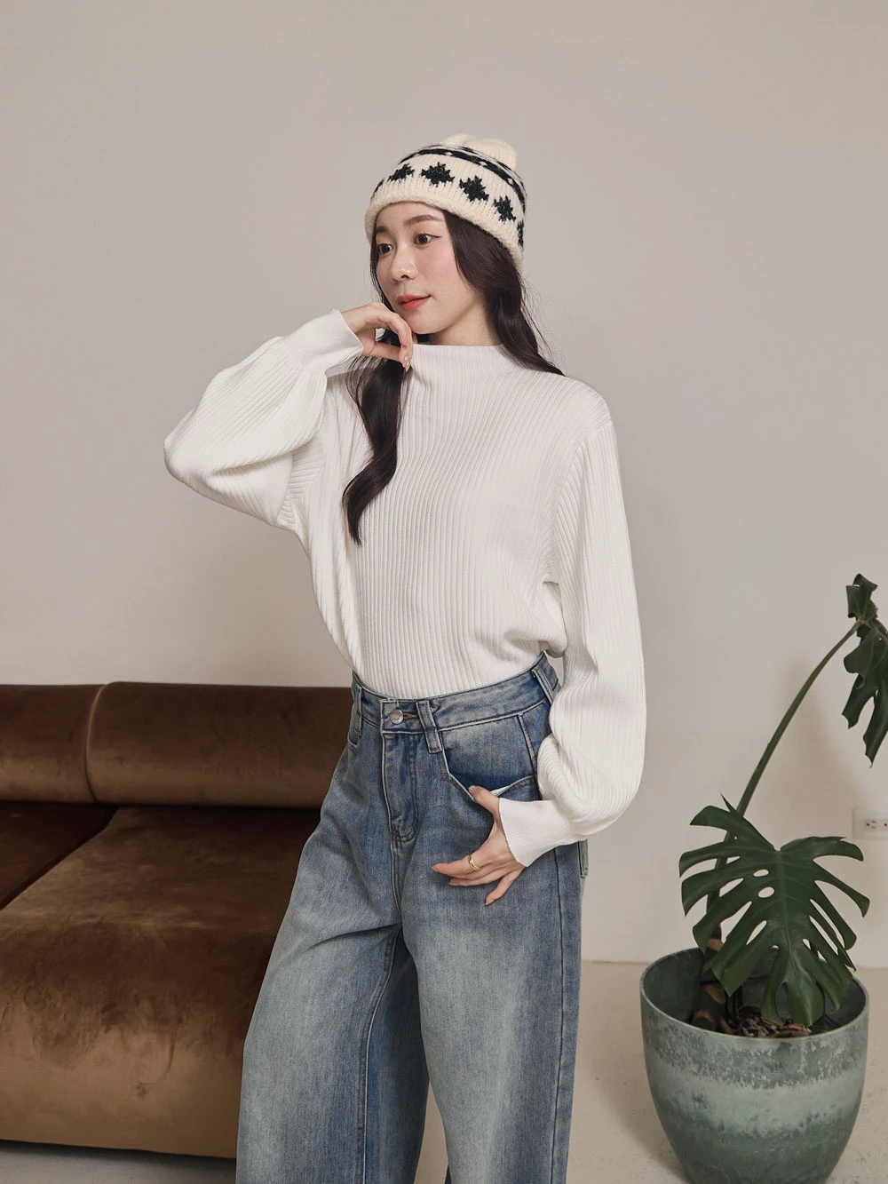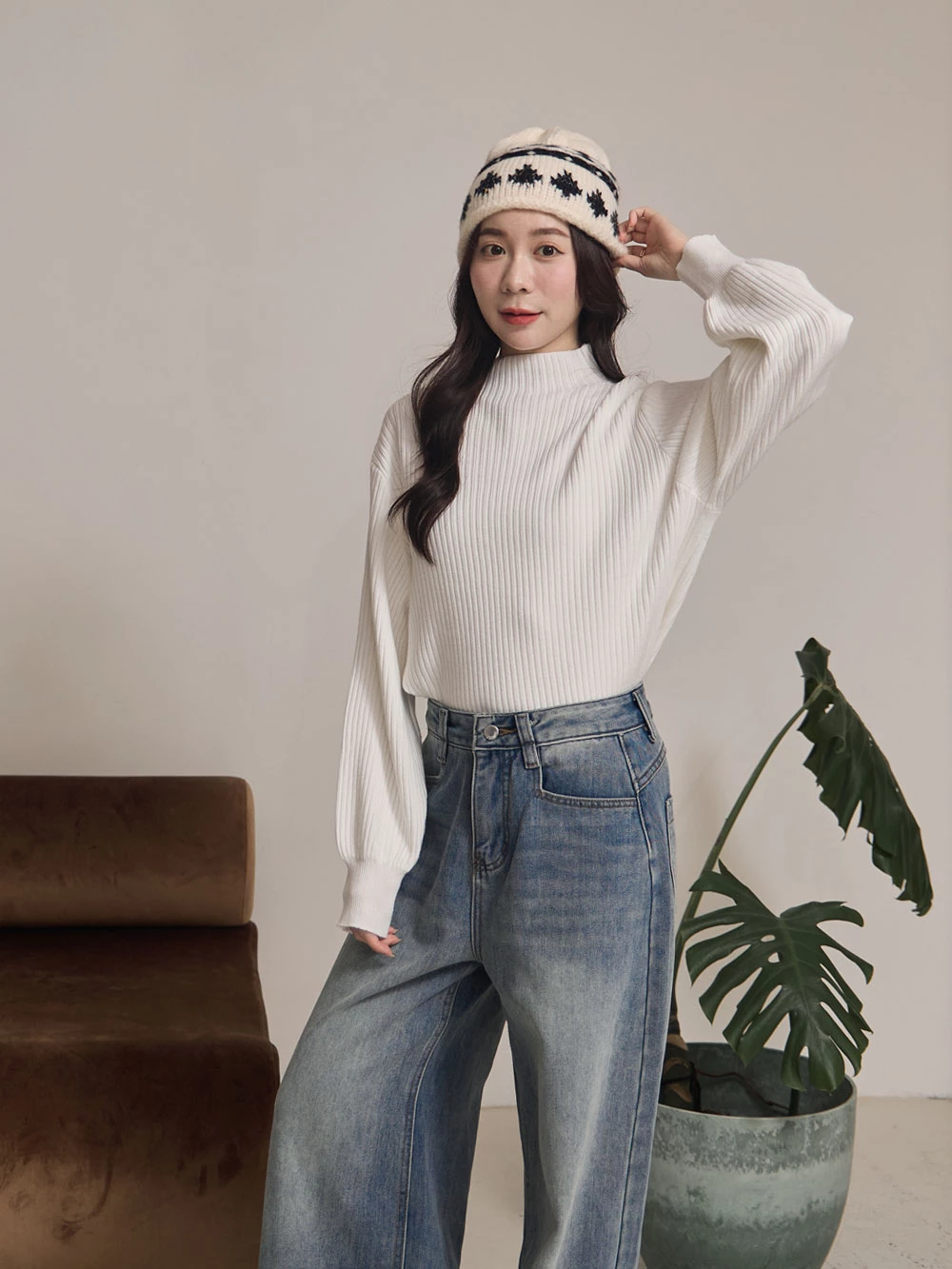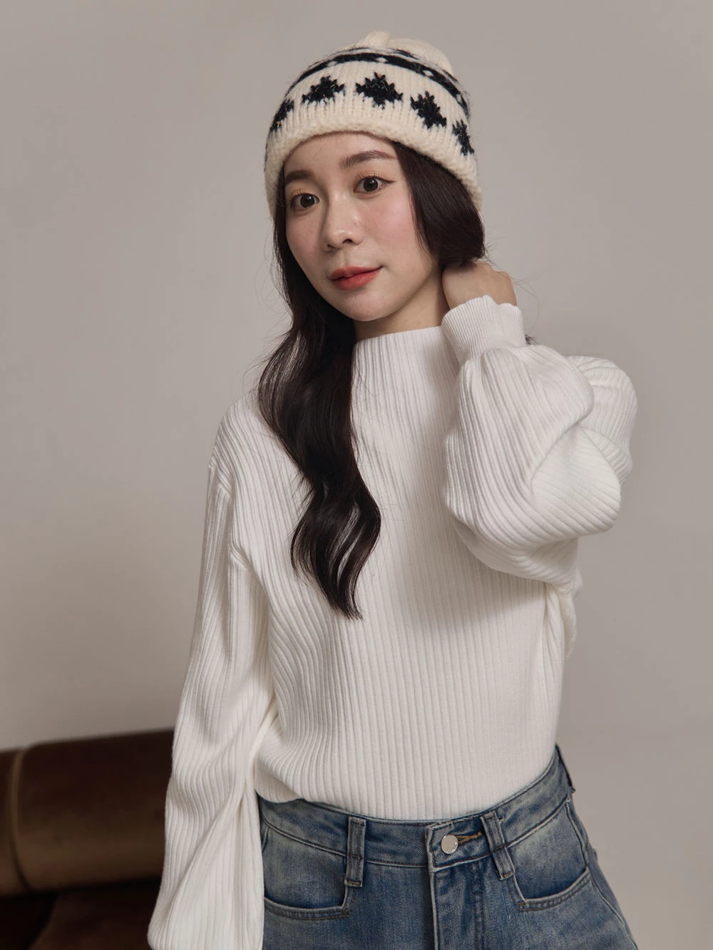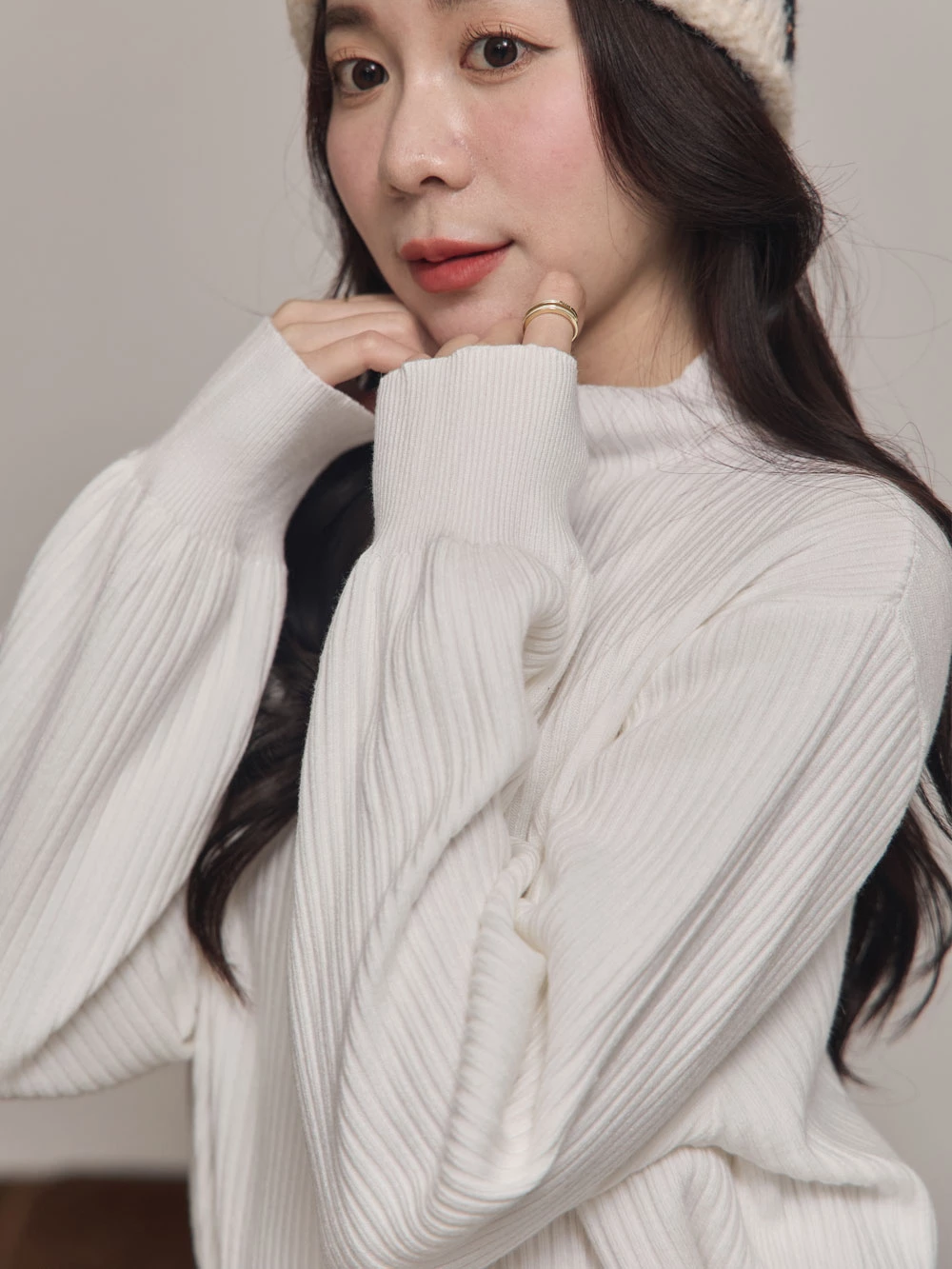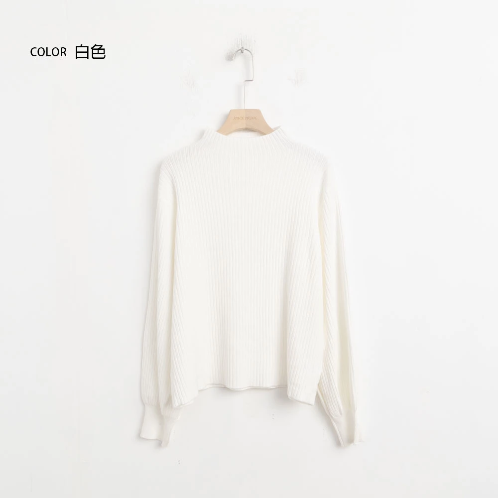 半高領澎袖針織上衣
