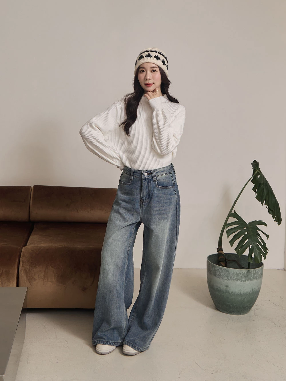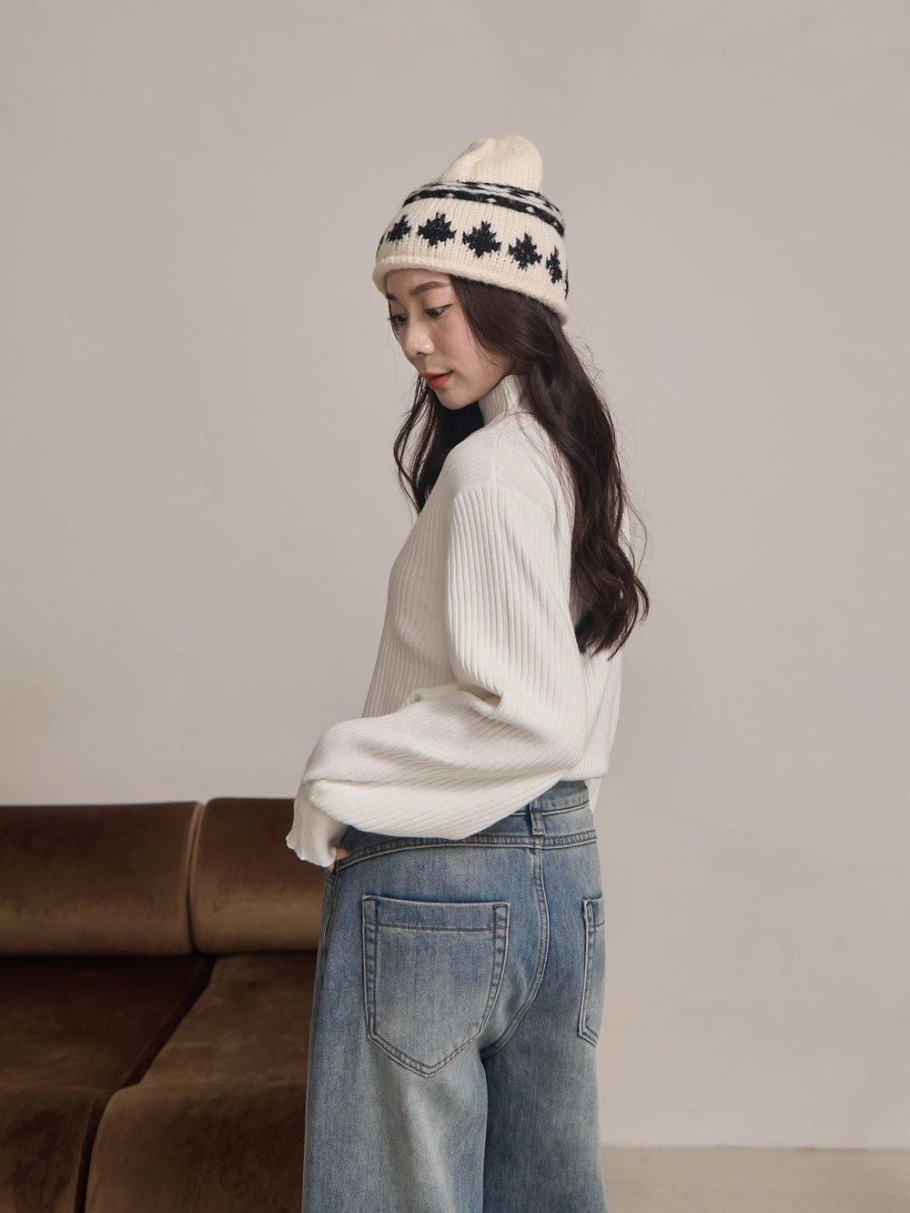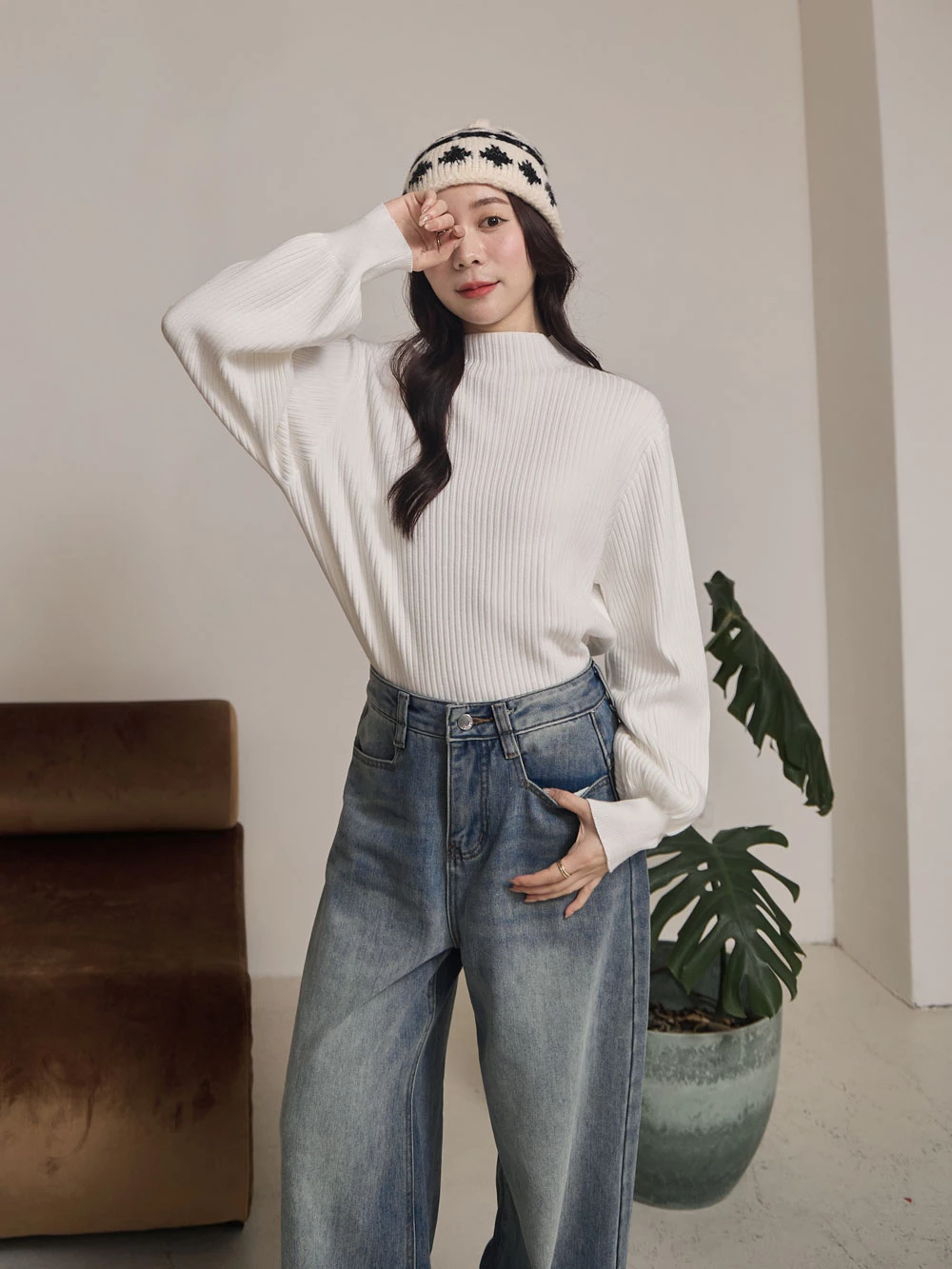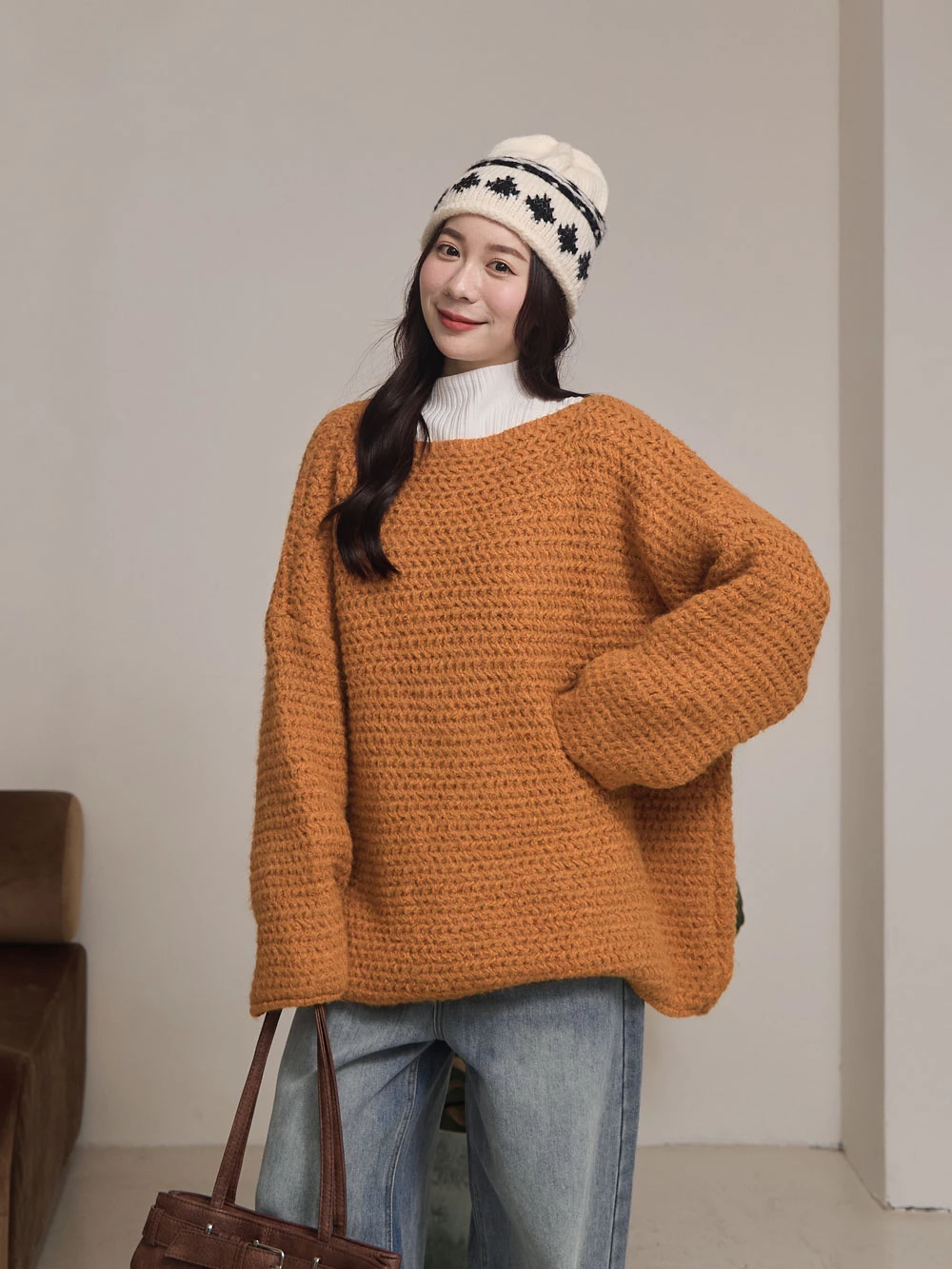 半高領澎袖針織上衣