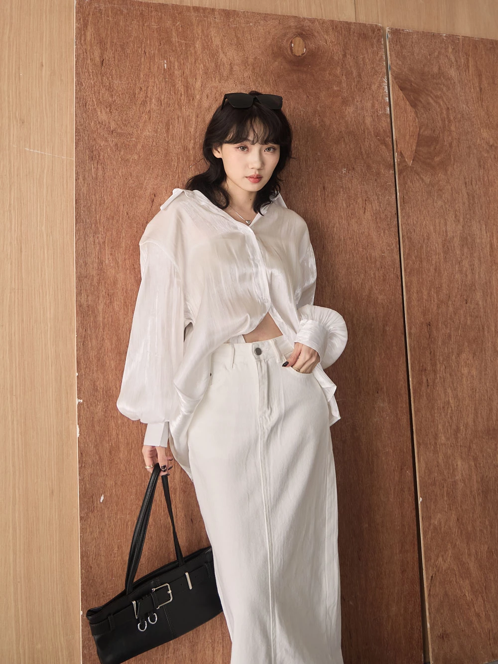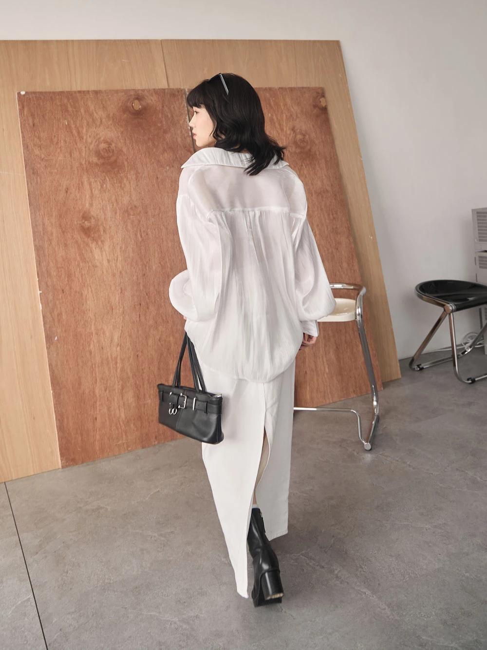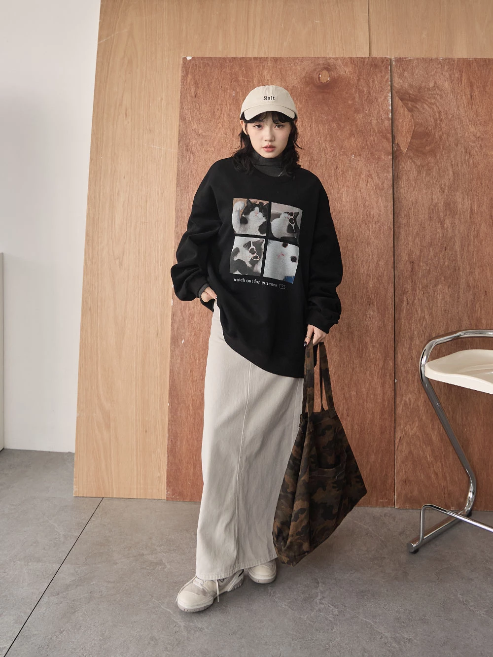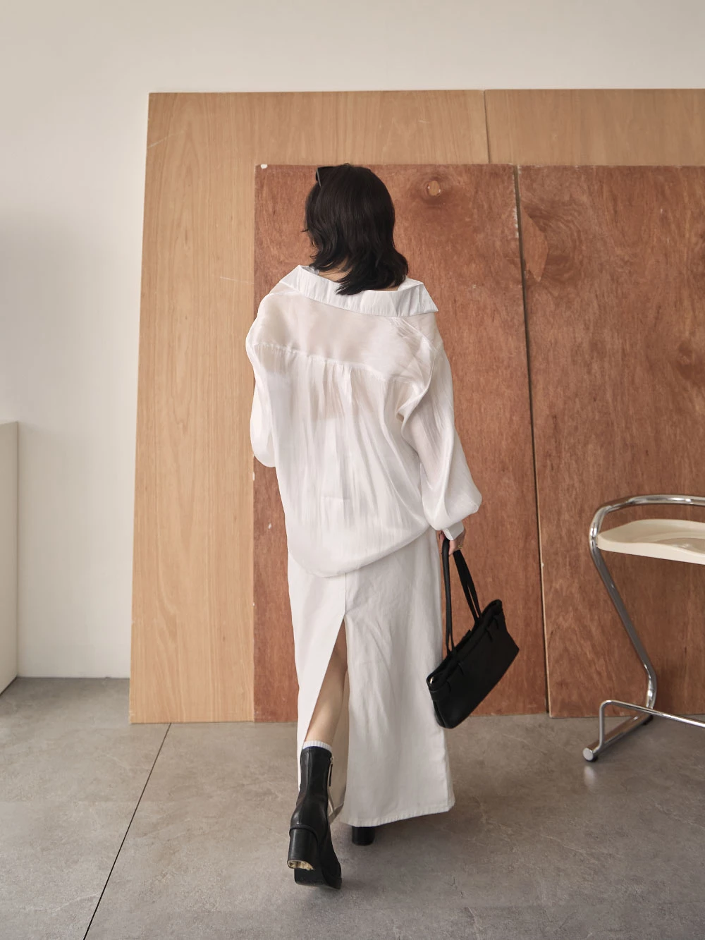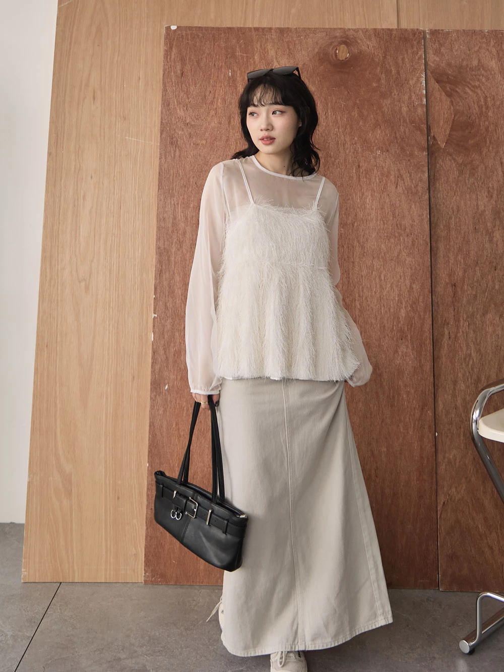 後開衩牛仔長裙