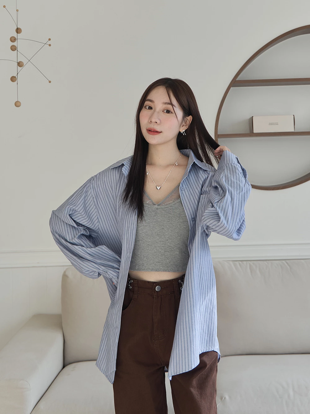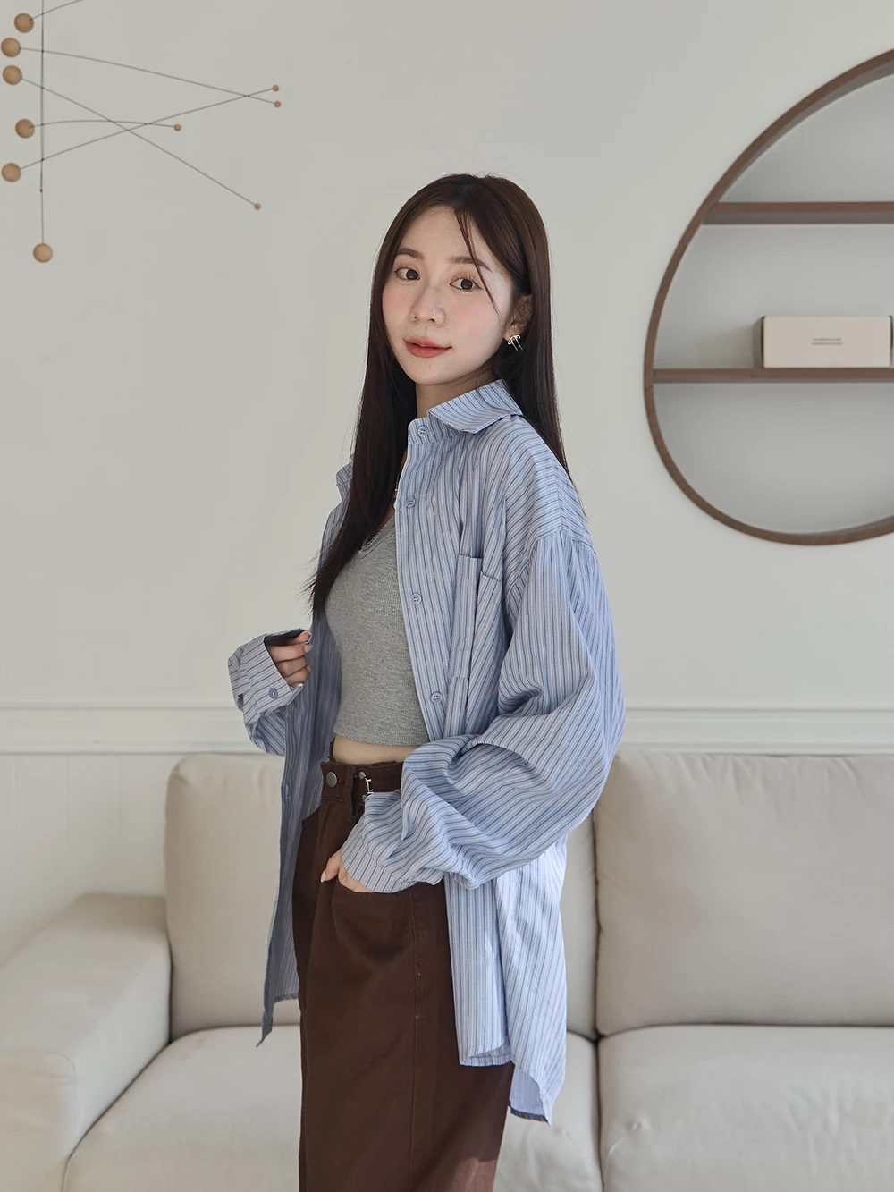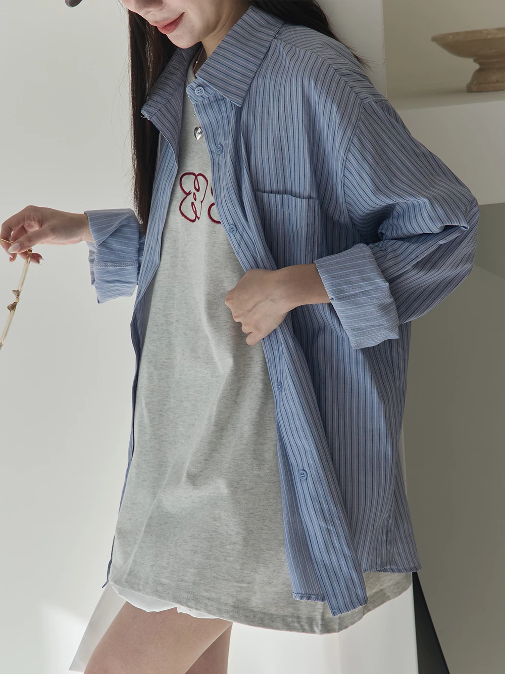 SPmade-條紋寬鬆長版襯衫 | Space Picnic