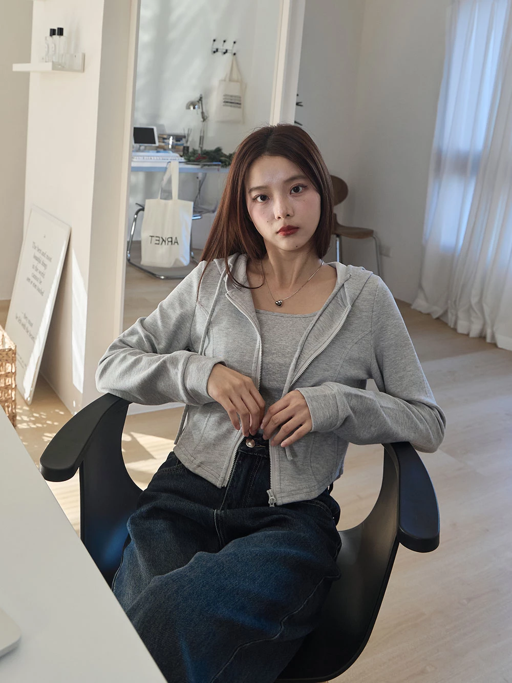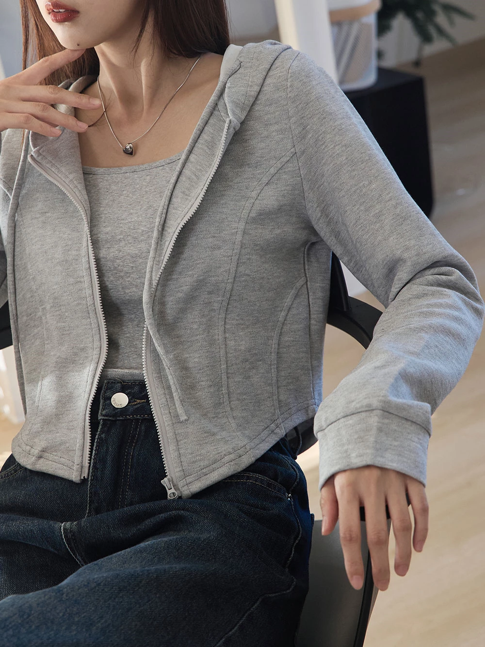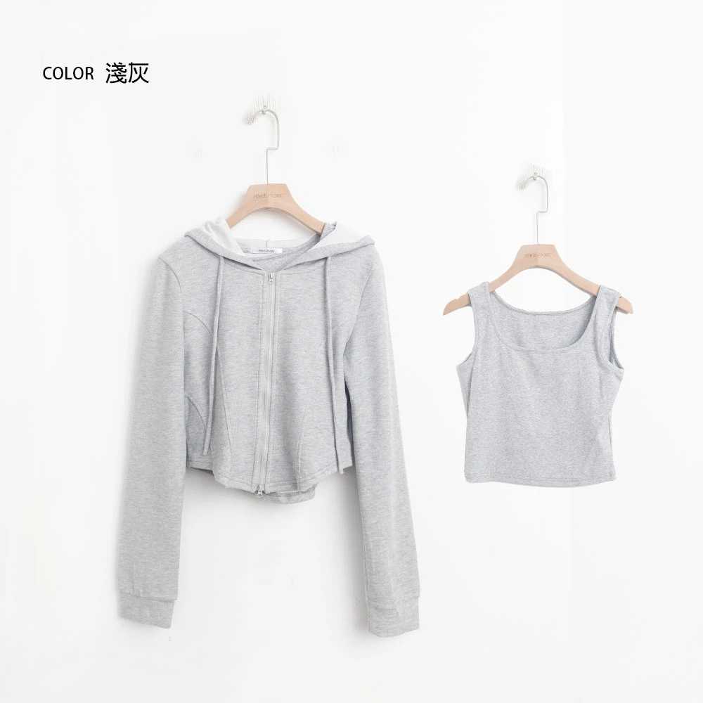 兩件式-短版背心+雙拉鍊連帽外套