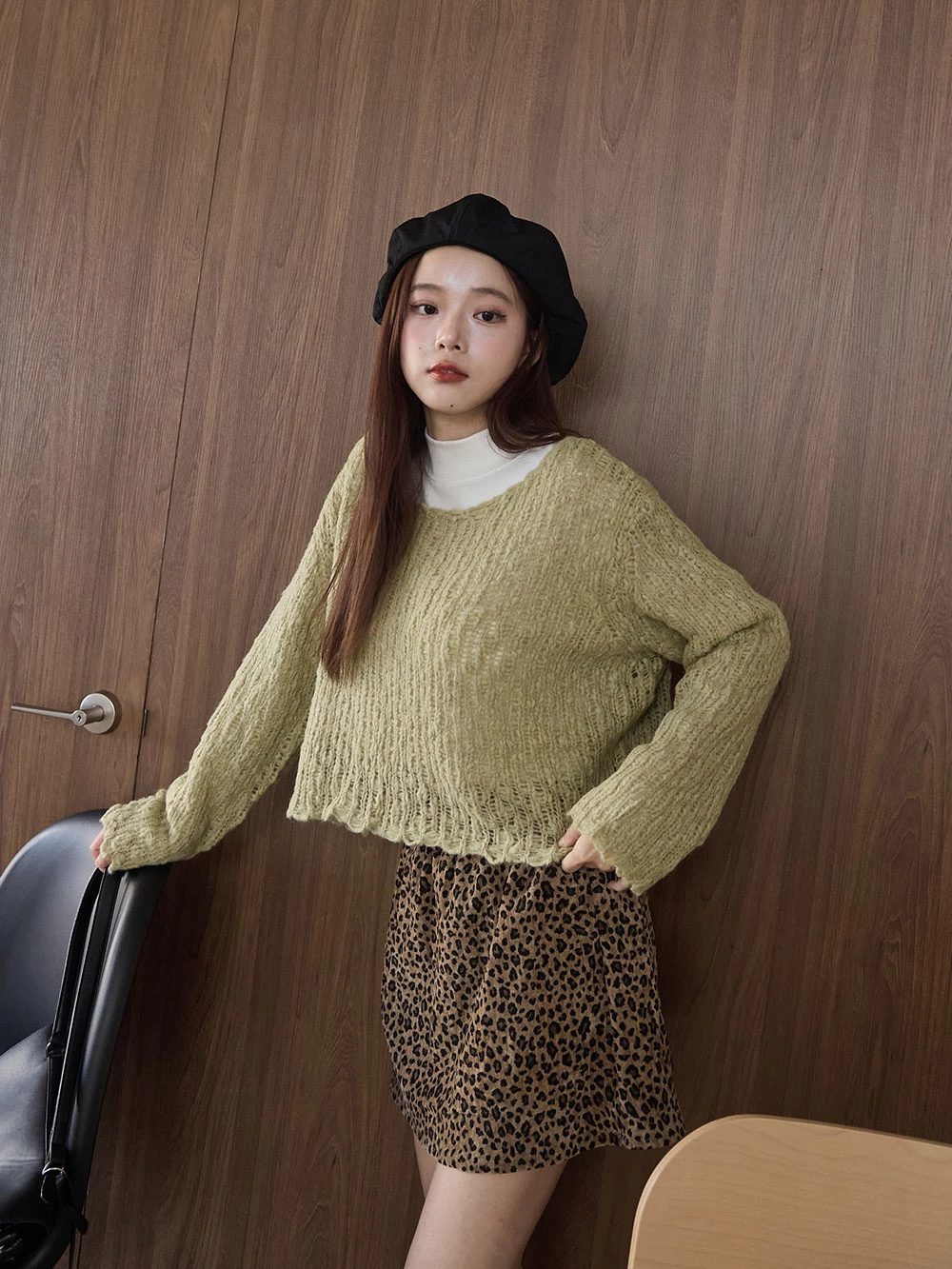 鏤空圓領織紋上衣