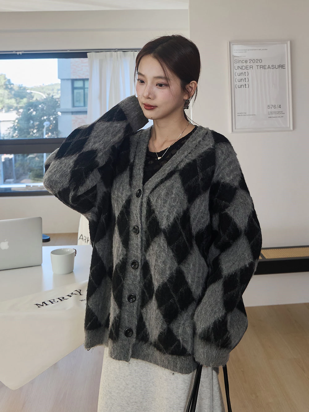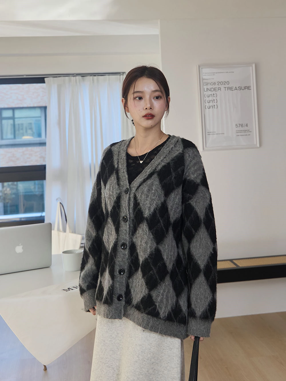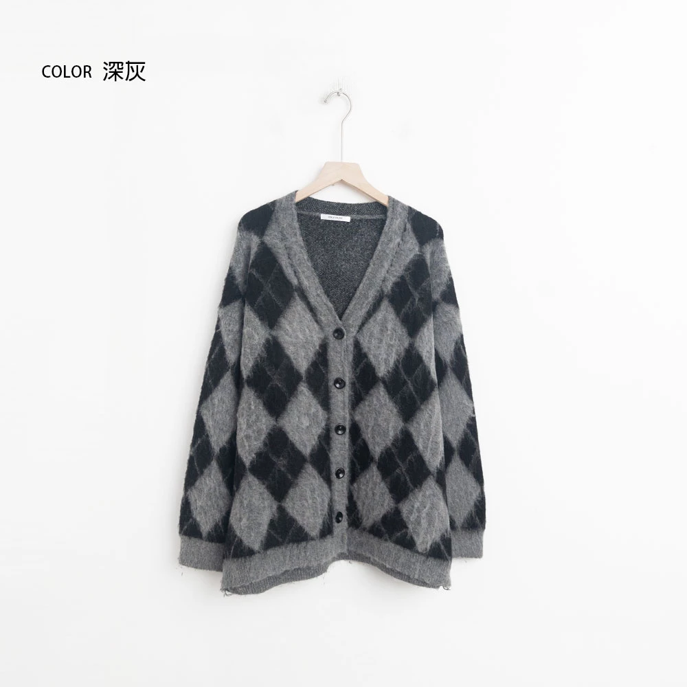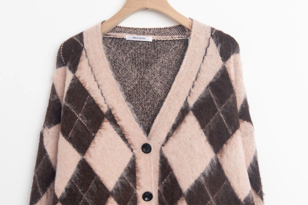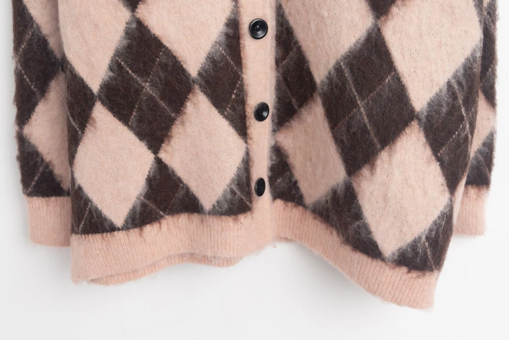拼色菱格水貂毛針織外套 | Space Picnic