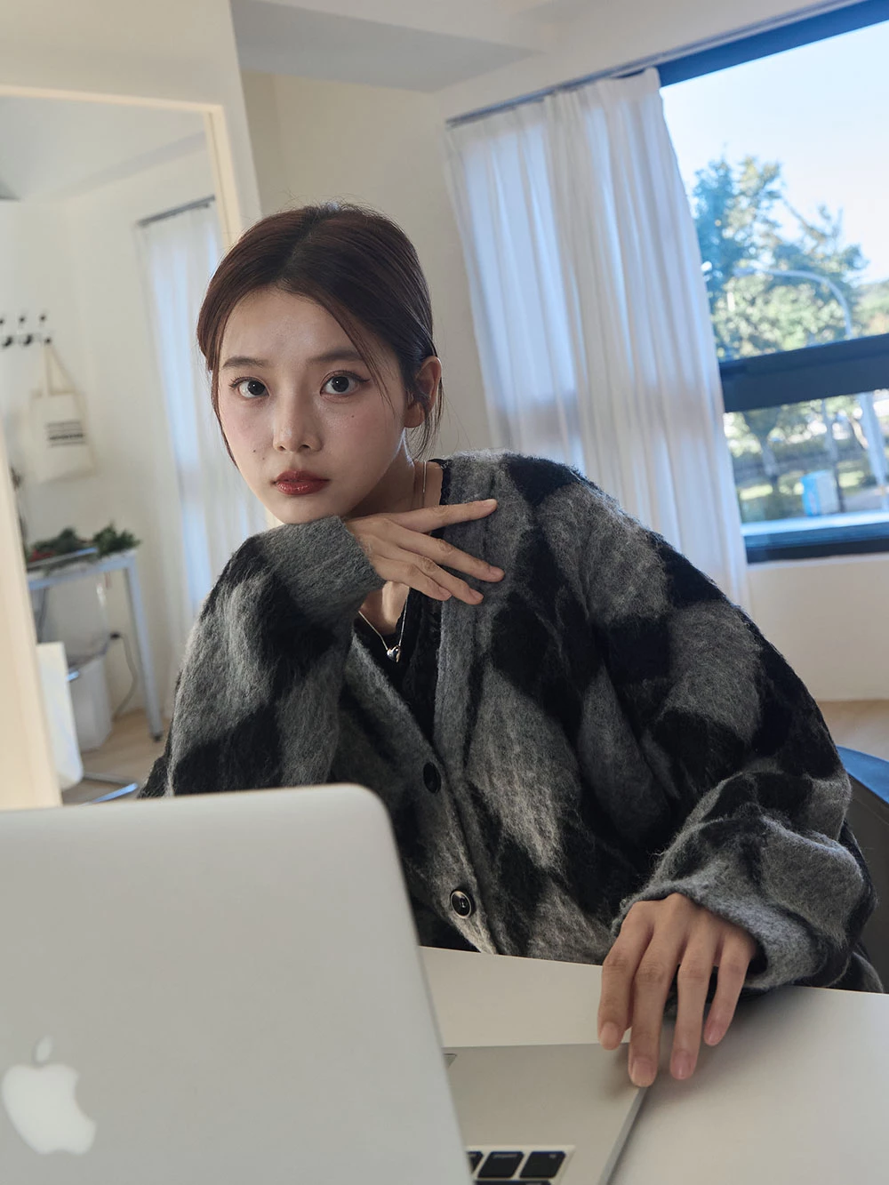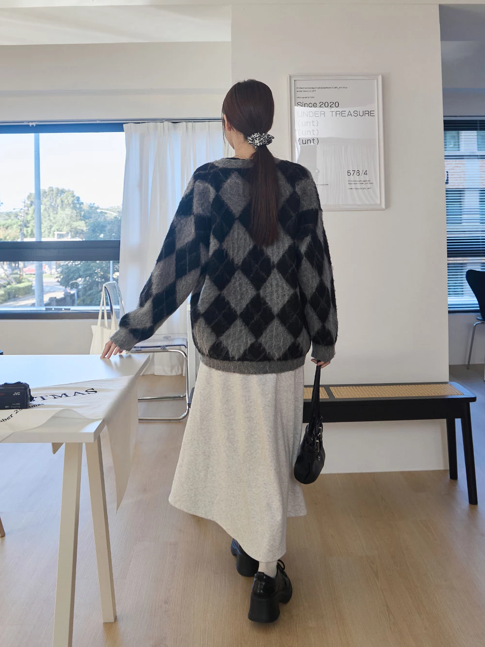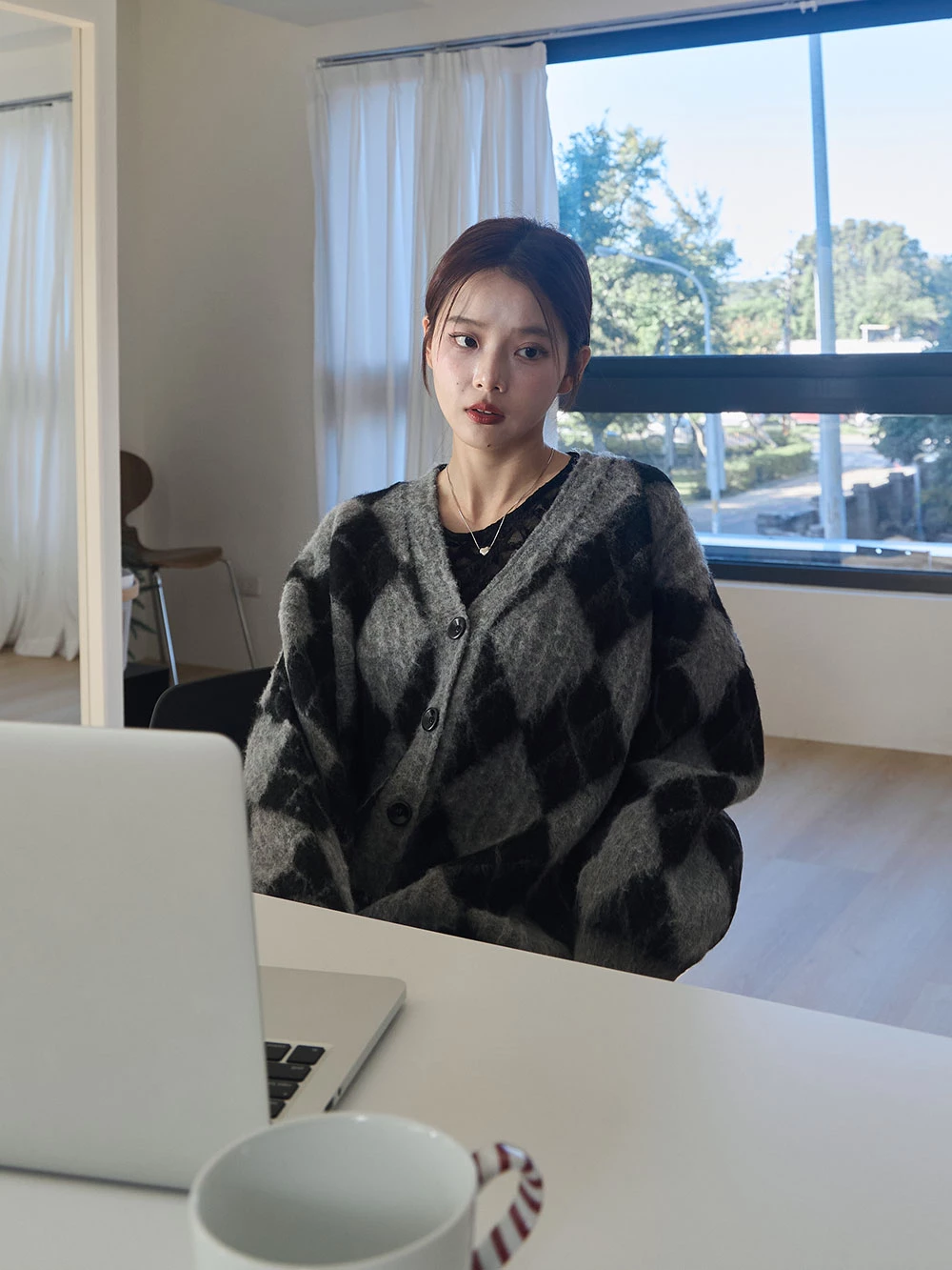 拼色菱格水貂毛針織外套 | Space Picnic