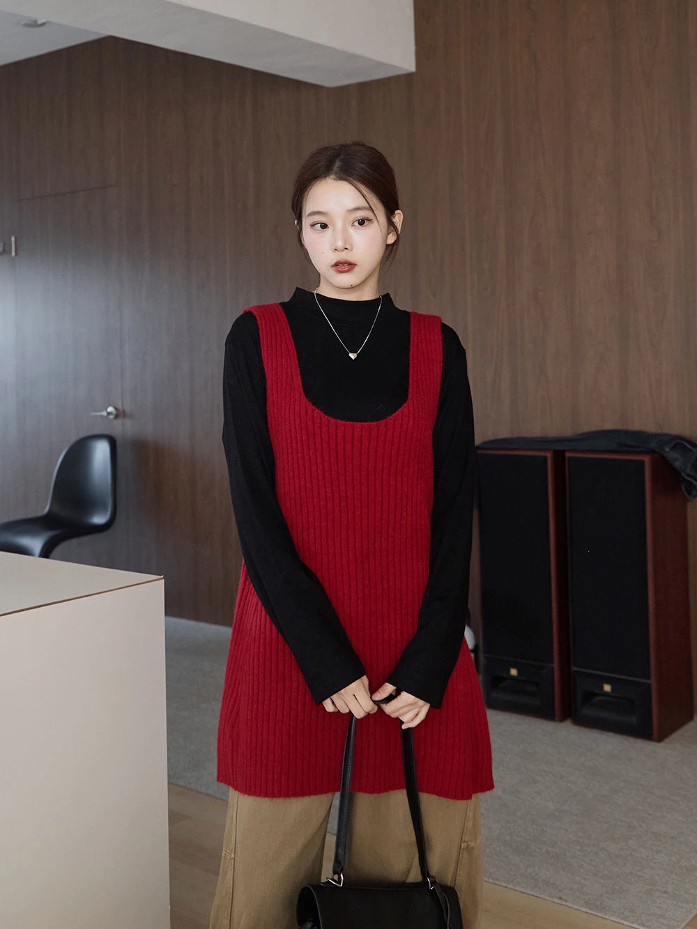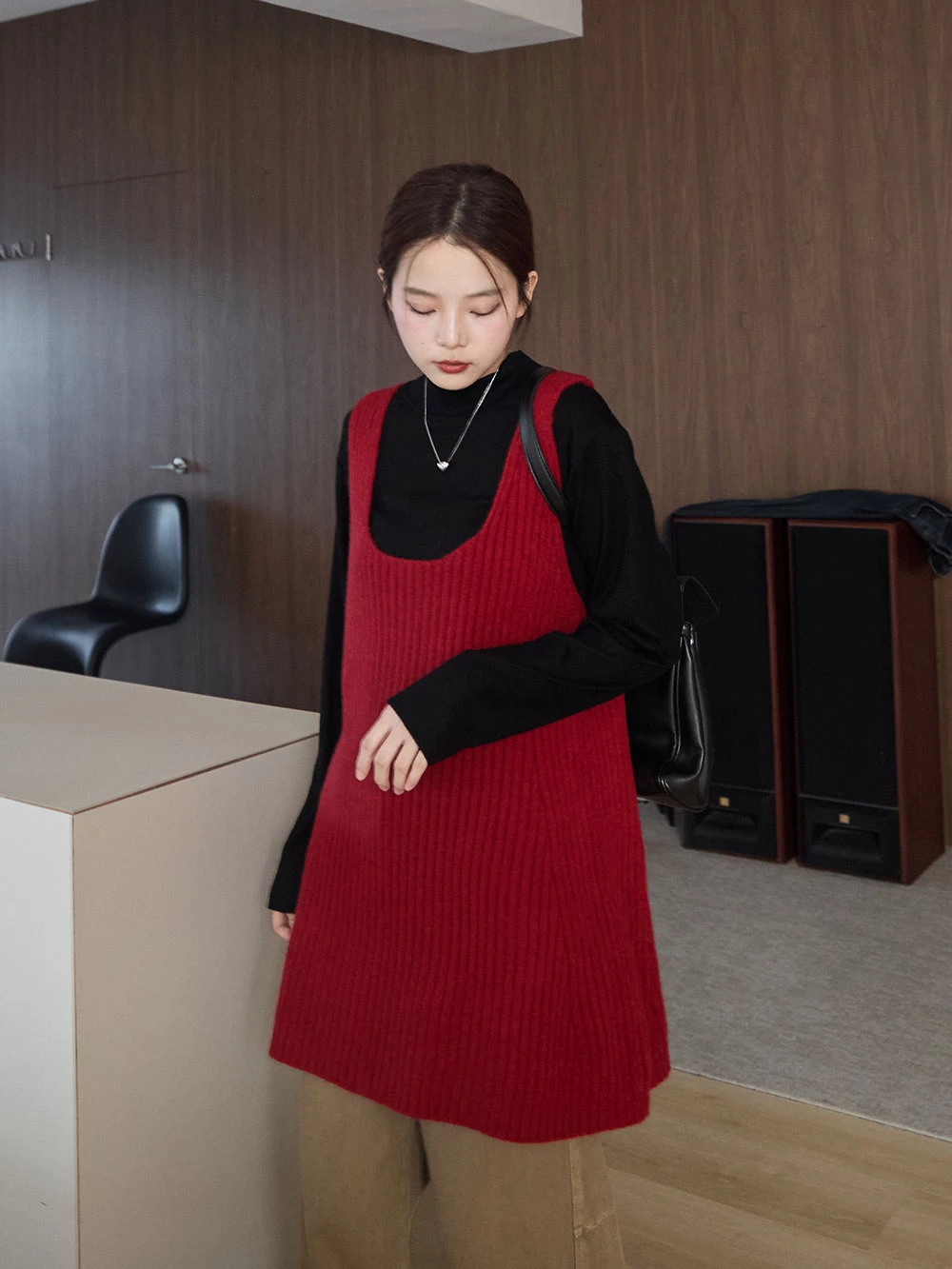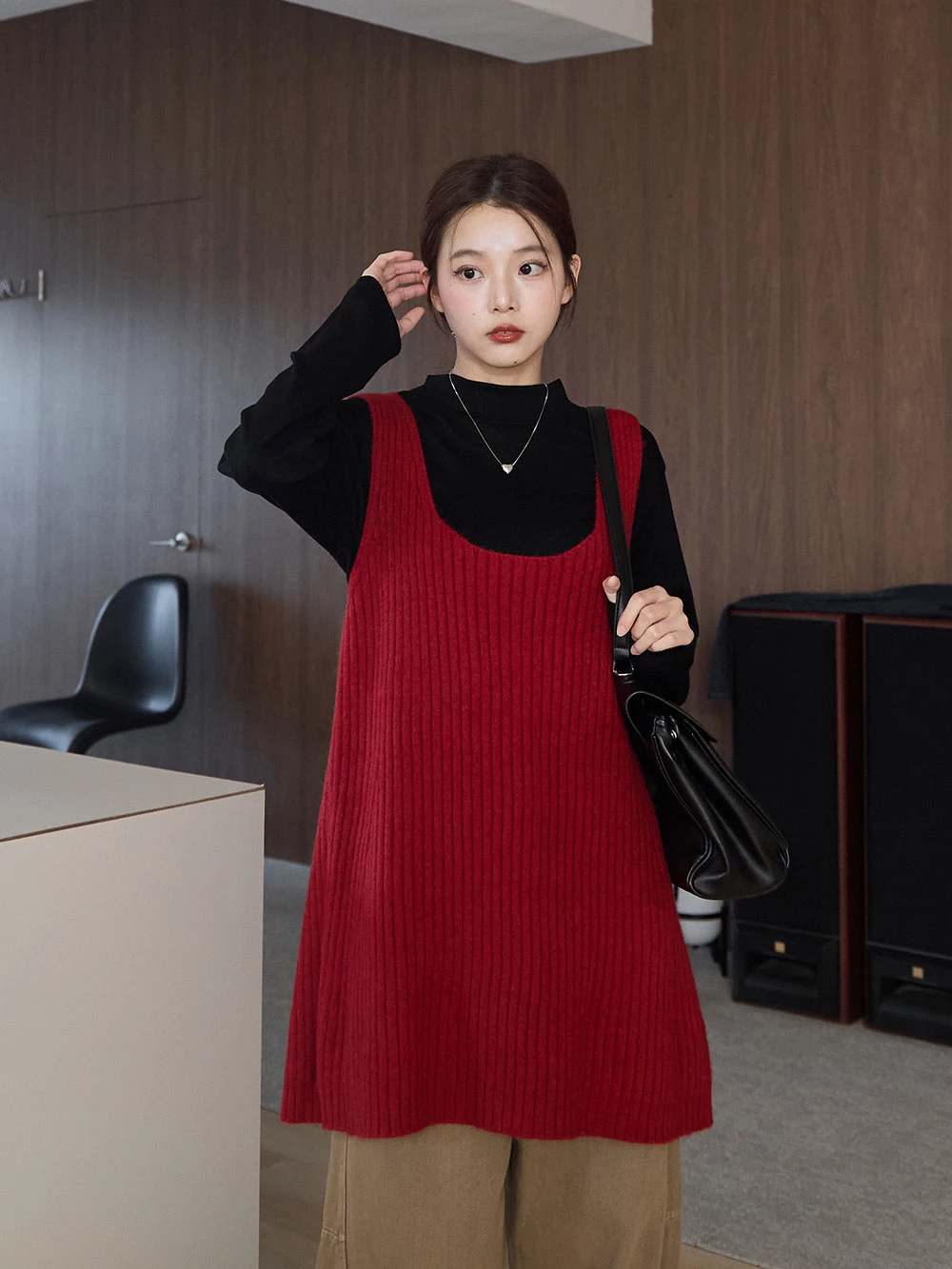大U領針織背心洋裝